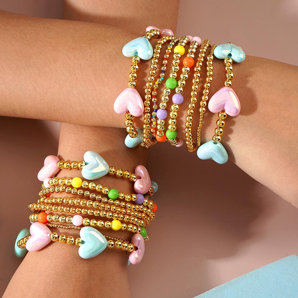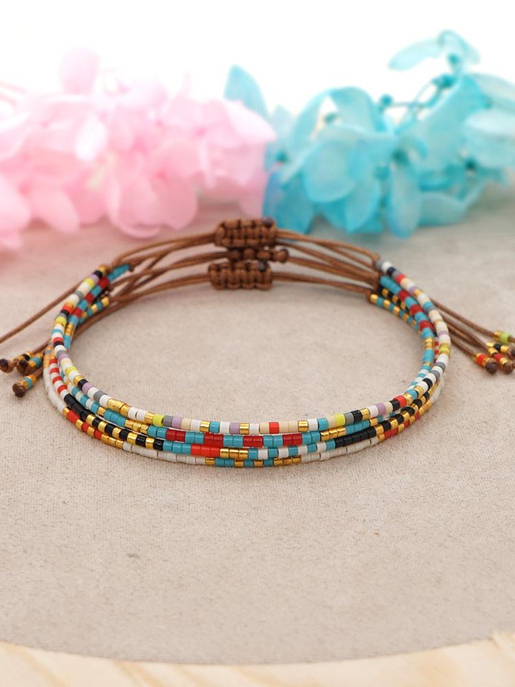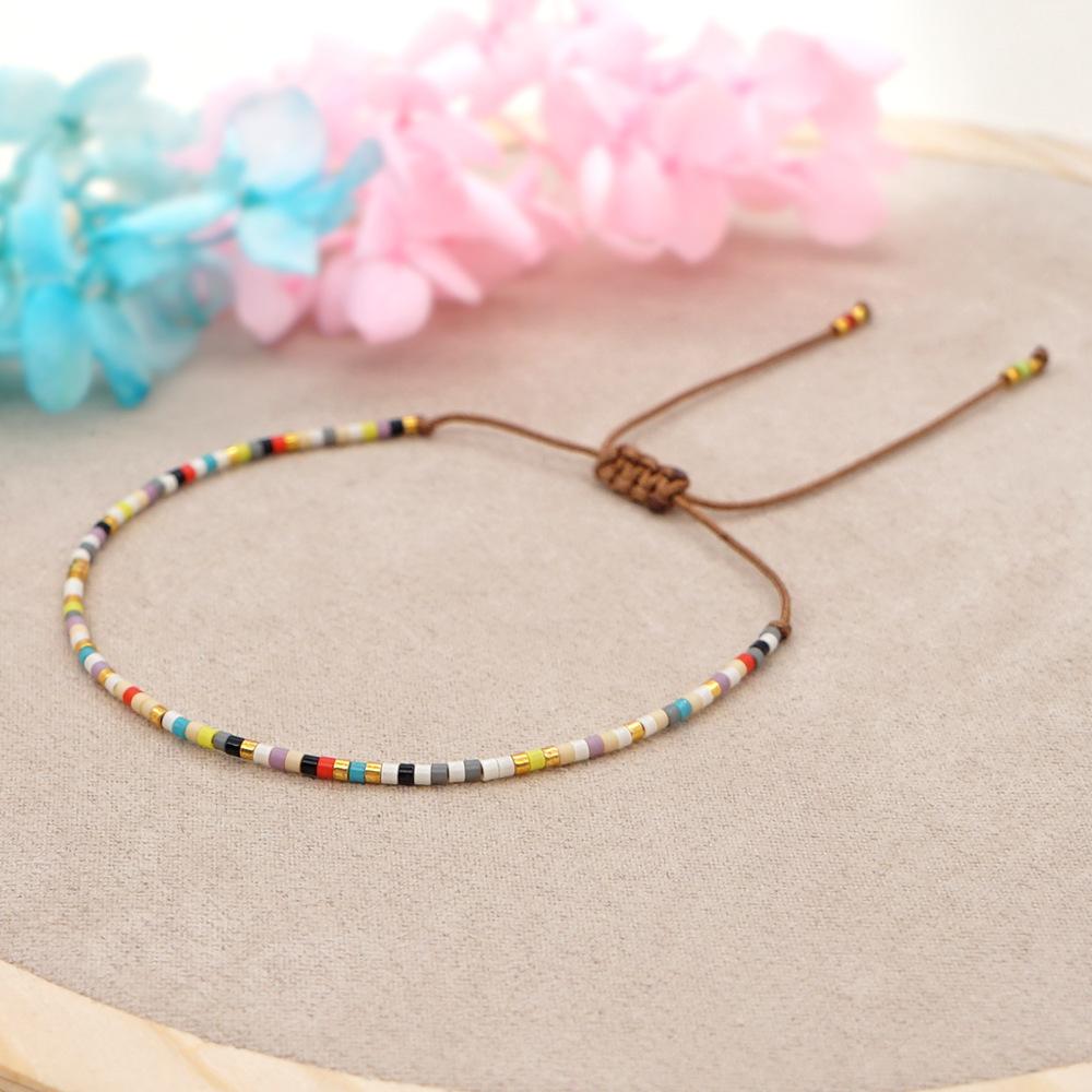 Pulsera bohemia de cuentas de mijo transfronteriza para mujer, cuerda de cuentas tejida a mano, multicapa multicolor arcoíris, pulsera de la amistad