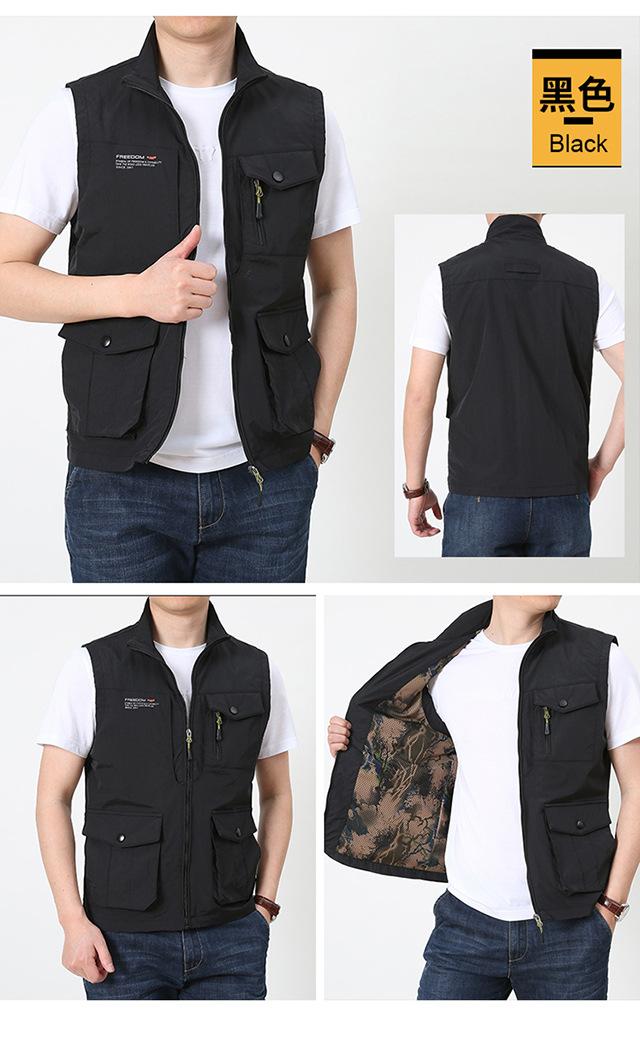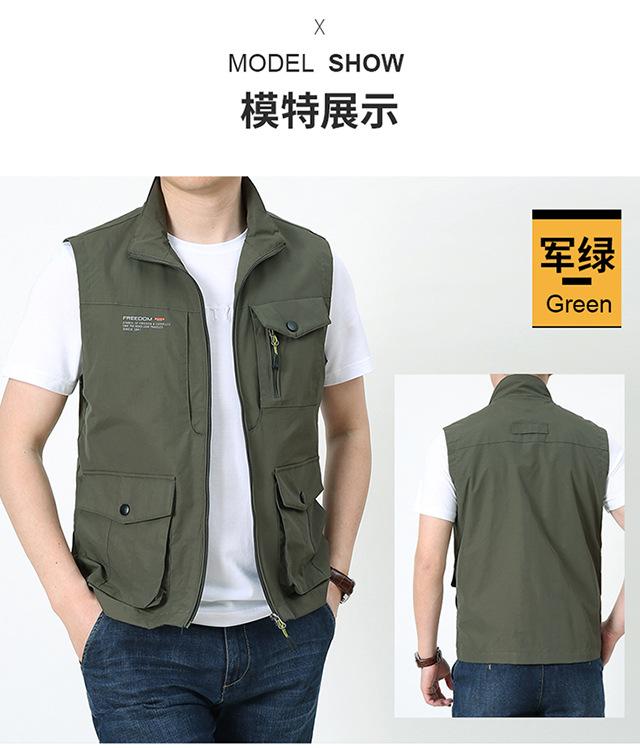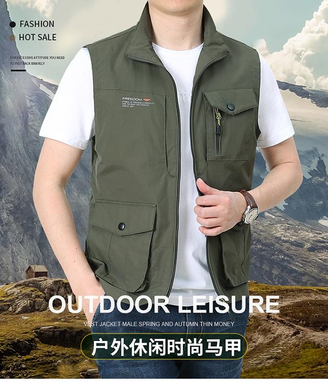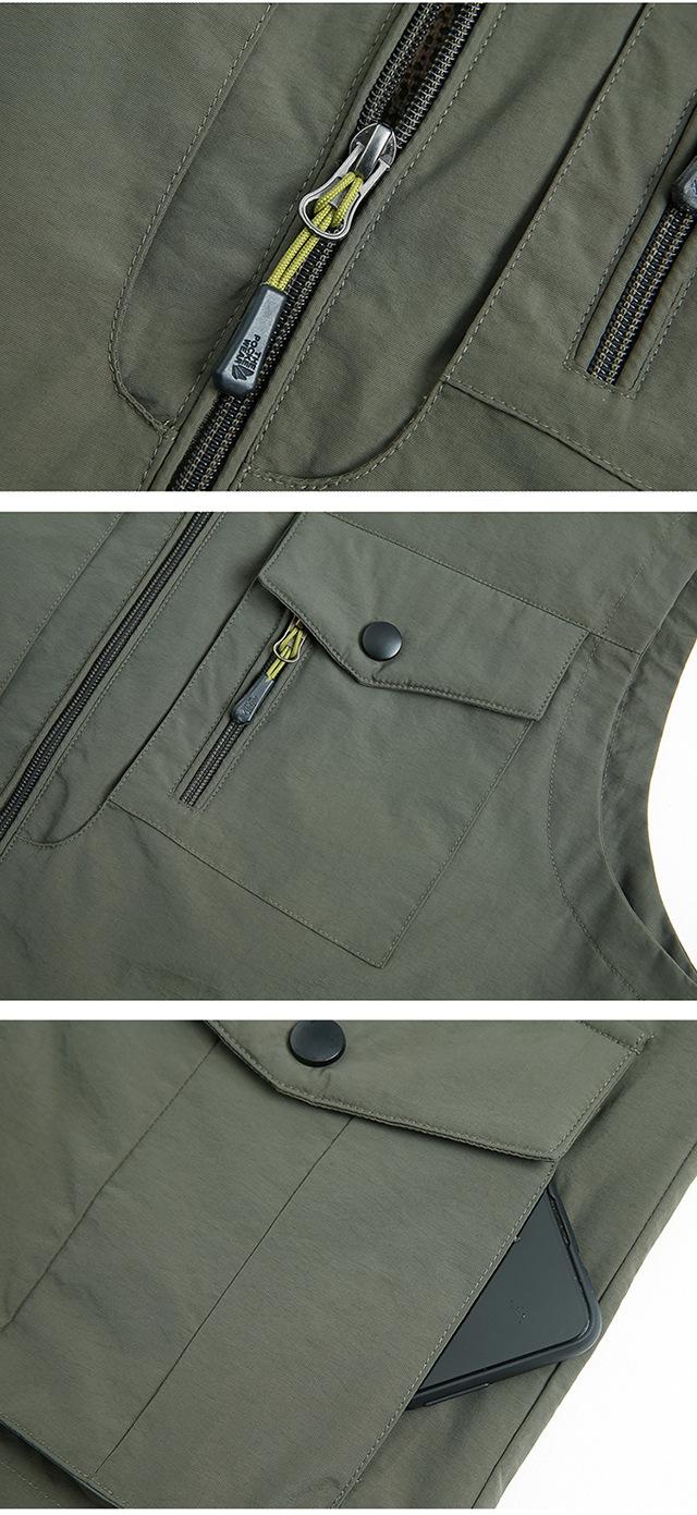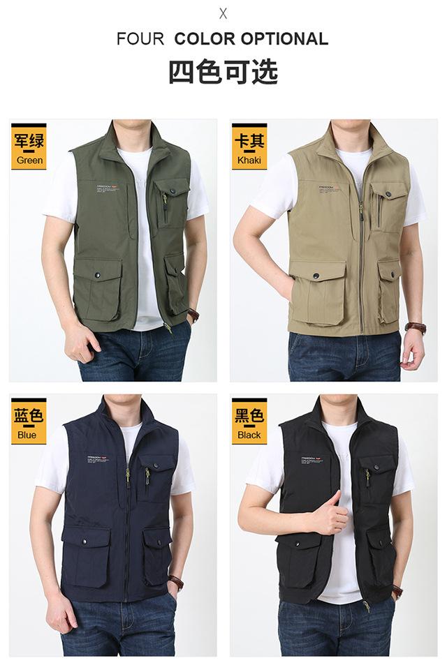 Nuevo chaleco para hombre de secado rápido primavera y otoño para exteriores chaleco de trabajo con múltiples bolsillos sin mangas con cuello alto abrigo