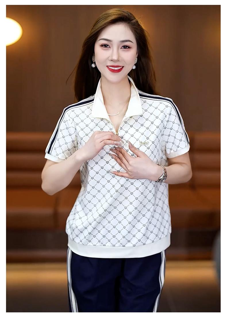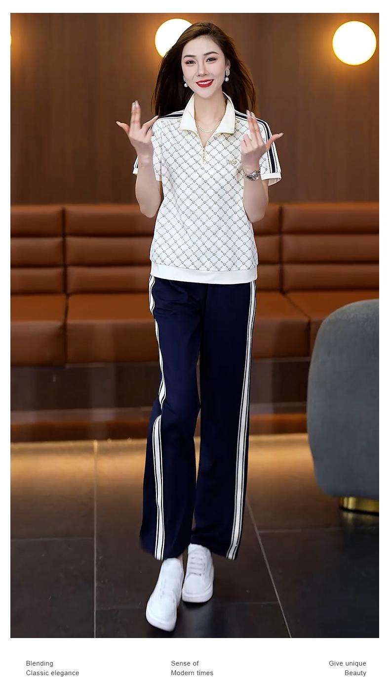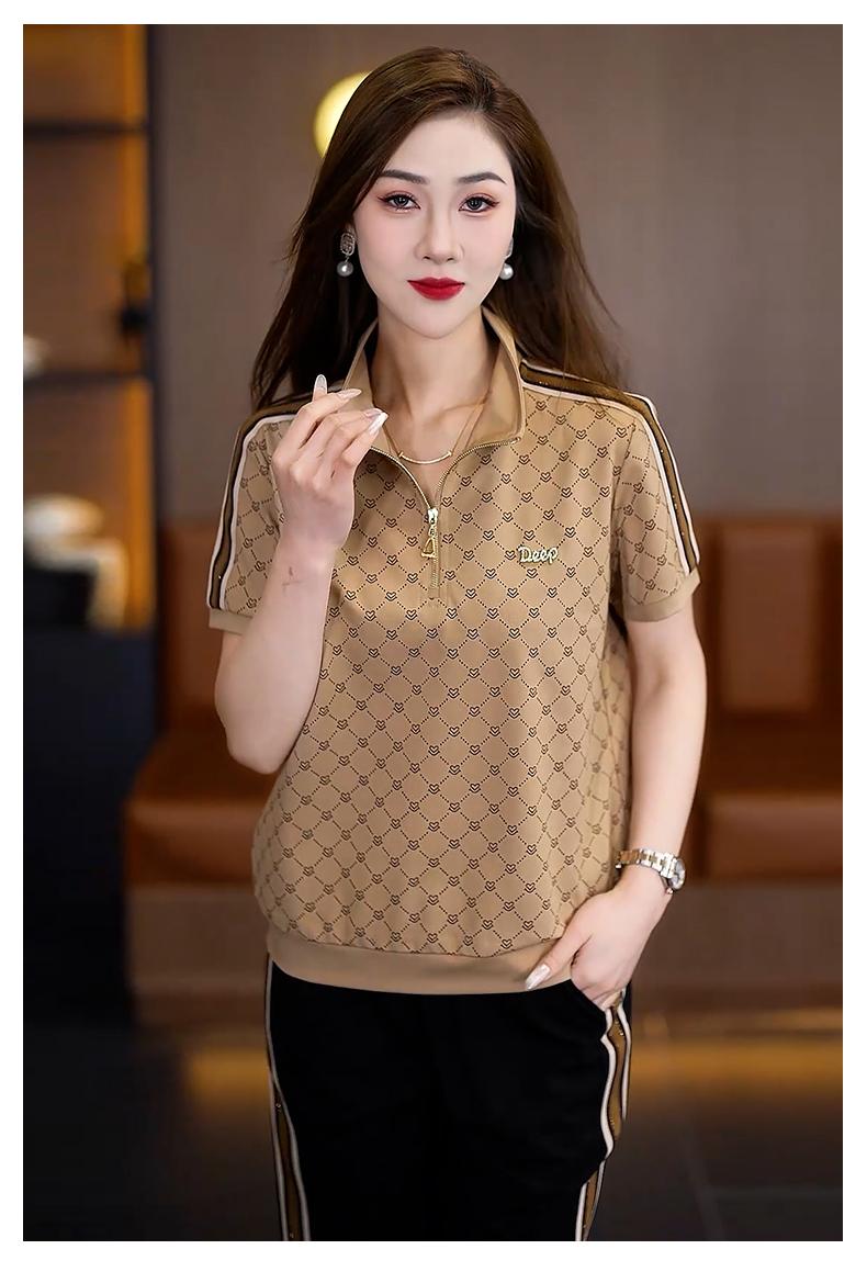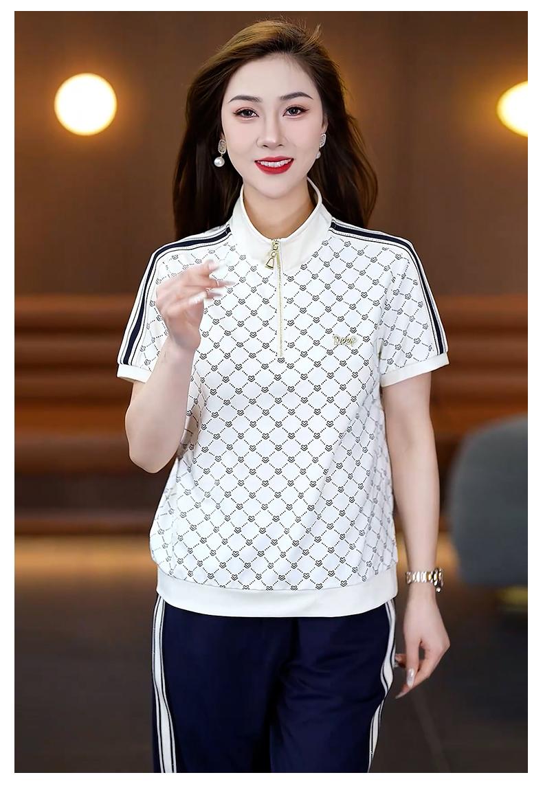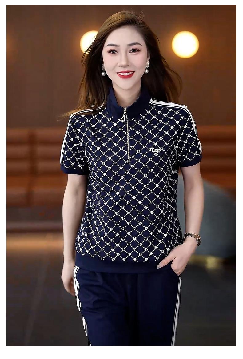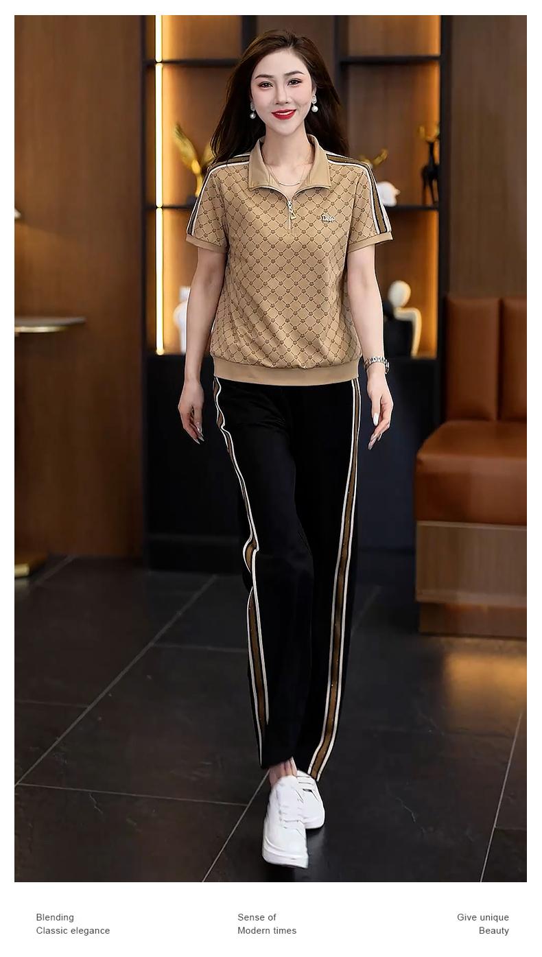 Traje deportivo holgado de marca de alta gama para mujer 2025 Nuevo Reductor de edad Adelgazante Verano Manga corta Casual Conjunto de ropa delgada para mujer