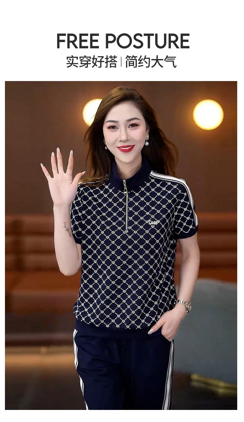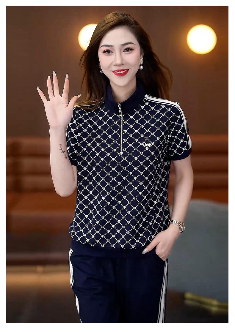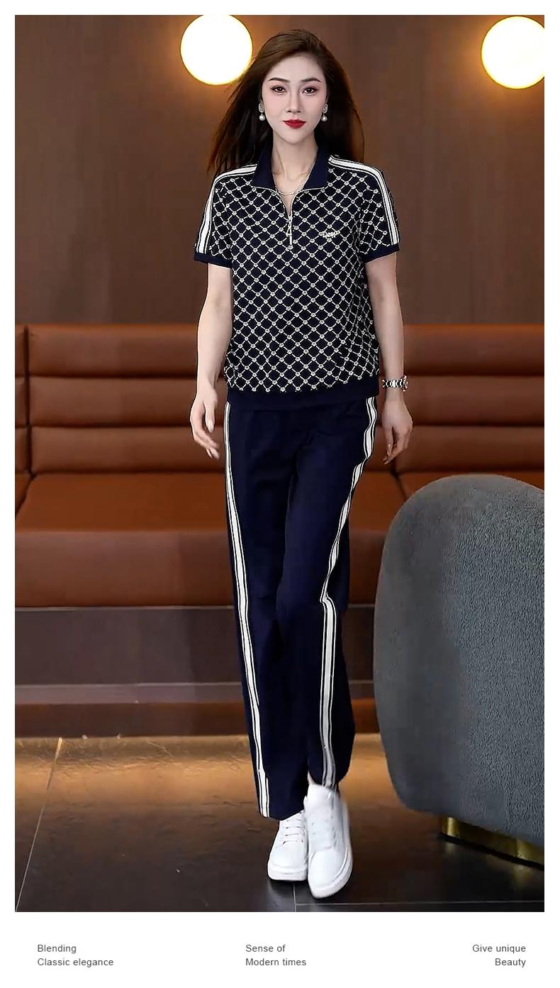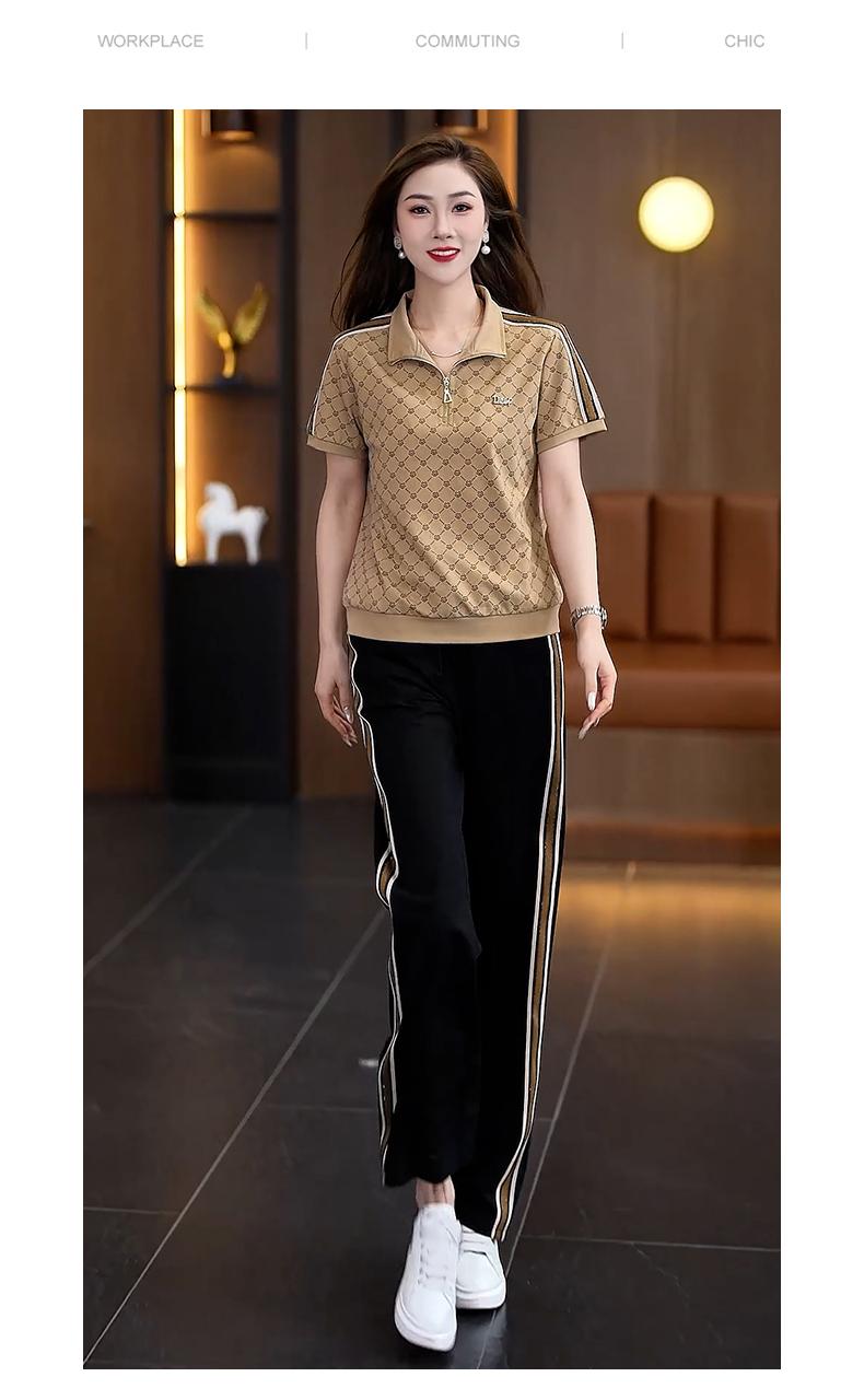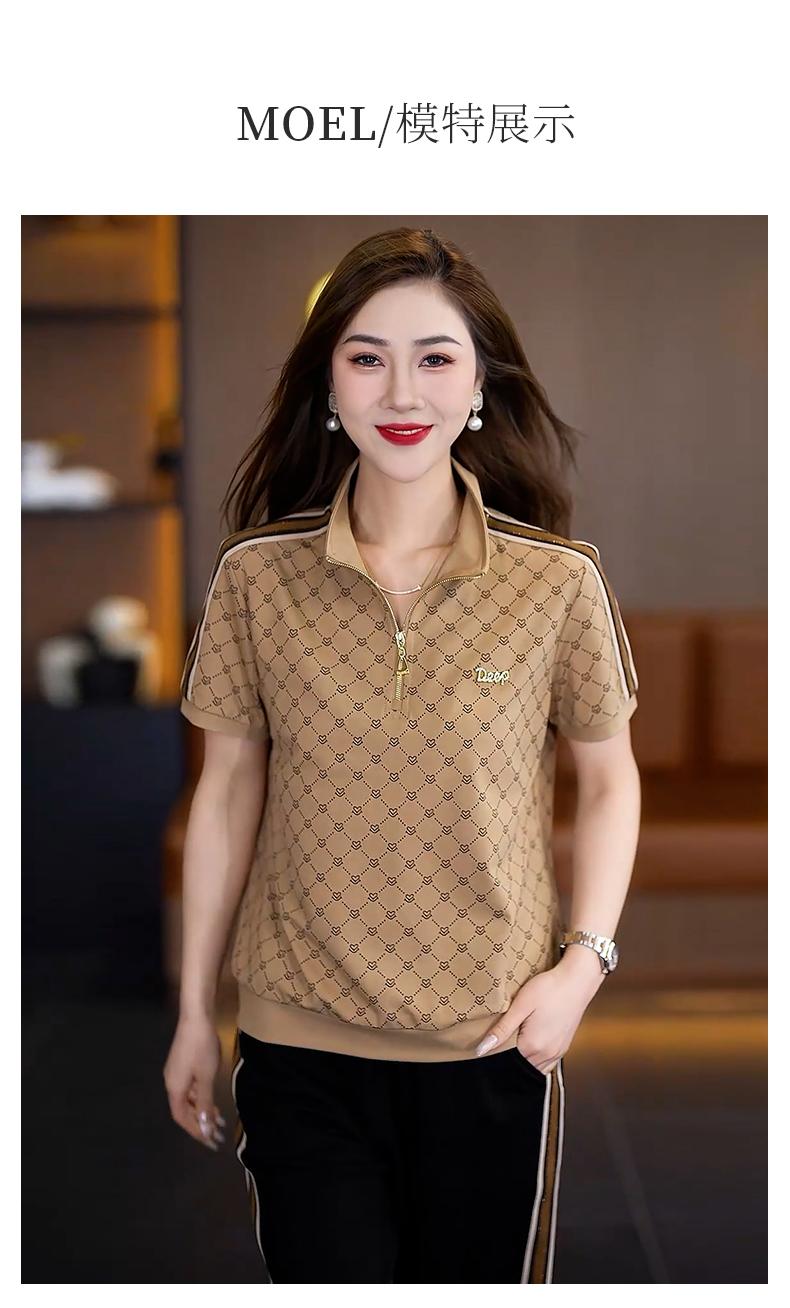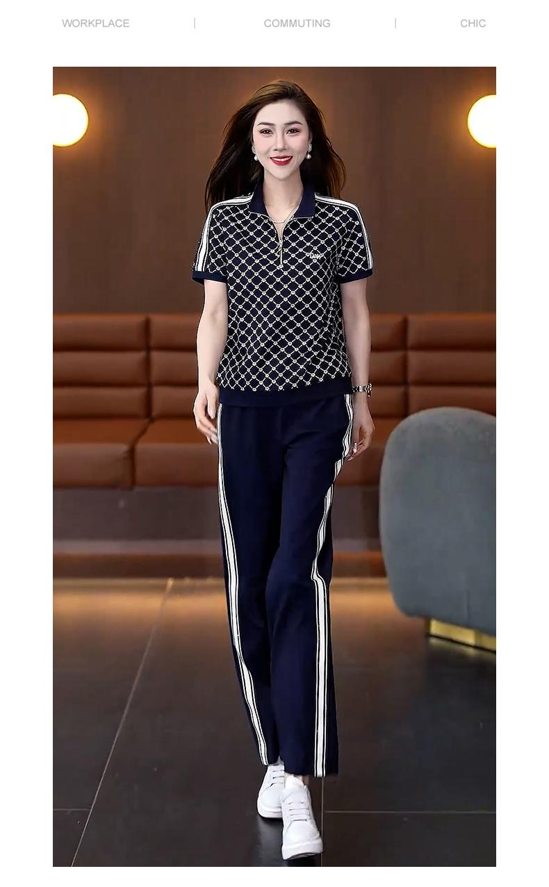 Traje deportivo holgado de marca de alta gama para mujer 2025 Nuevo Reductor de edad Adelgazante Verano Manga corta Casual Conjunto de ropa delgada para mujer