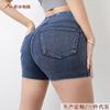 Shorts Casuales con Dobladillo de Color Contrastante Estilo Europeo y Americano para Mujer Verano Cintura Alta Yoga Fitness Elásticos Levanta Caderas Sexy Cubre Caderas Pantalones Cortos