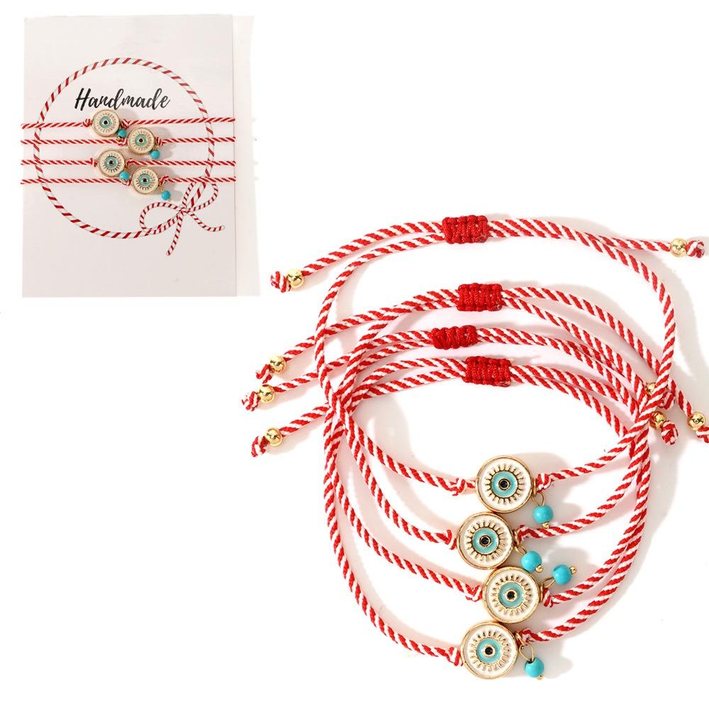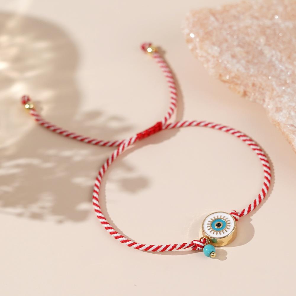 Pulsera Maltis minimalista de moda popular con ojos blancos, cuerda turquesa roja y blanca, pulsera de mujer