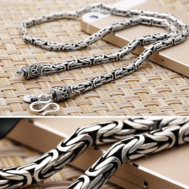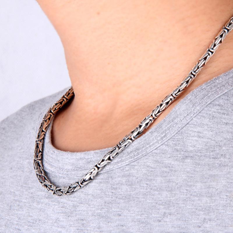 Collar para Hombre Collar para Hombre Patrón de Paz Retro Personalizado para Hombre Moderno para Hombre Grueso Largo Plata para Novio