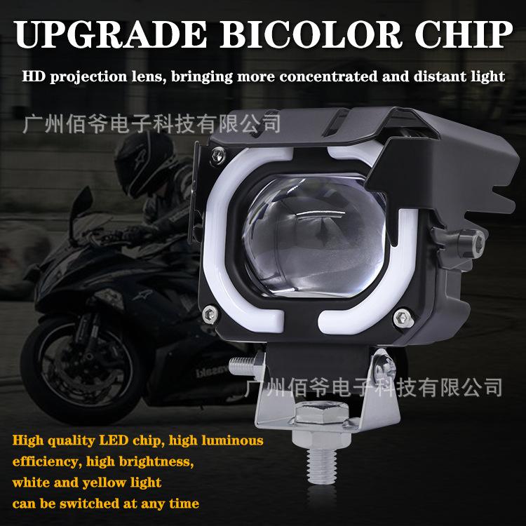 Nuevo Faro Modificado para Motocicleta/Vehículo Eléctrico de Venta Caliente Transfronteriza, Foco LED Bicolor Ojo de Pez Láser, Luz para Vehículo Todoterreno
