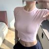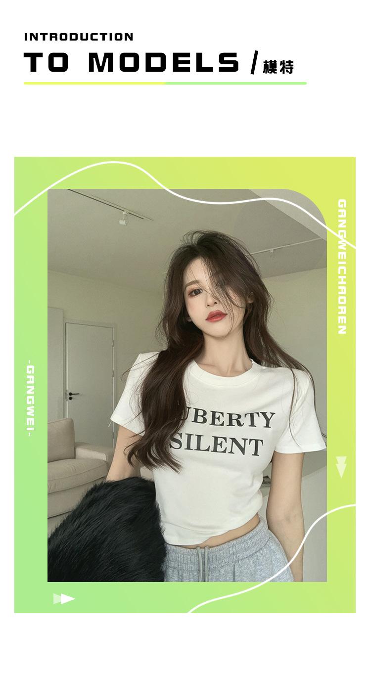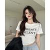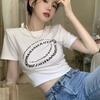Playera de Manga Corta para Mujer con Camiseta Corta de Fondo Primavera y Verano 2025 Slim Letra Blanca Top de Estudiante Europeo y Americano