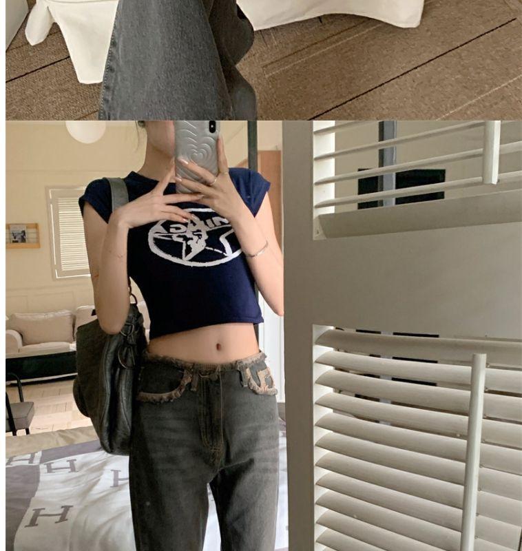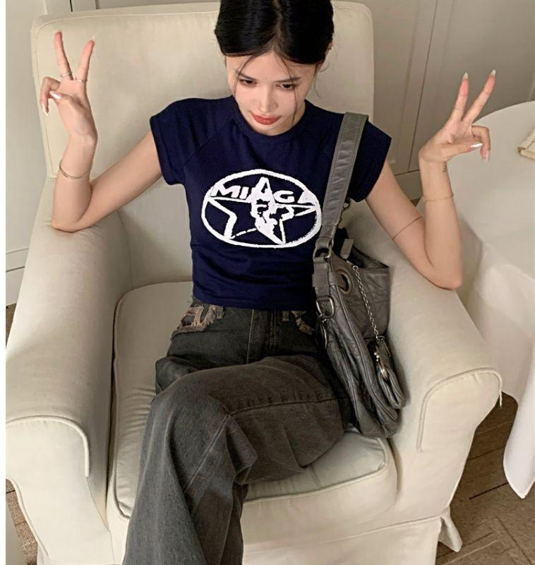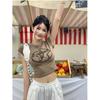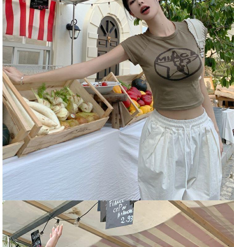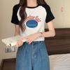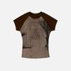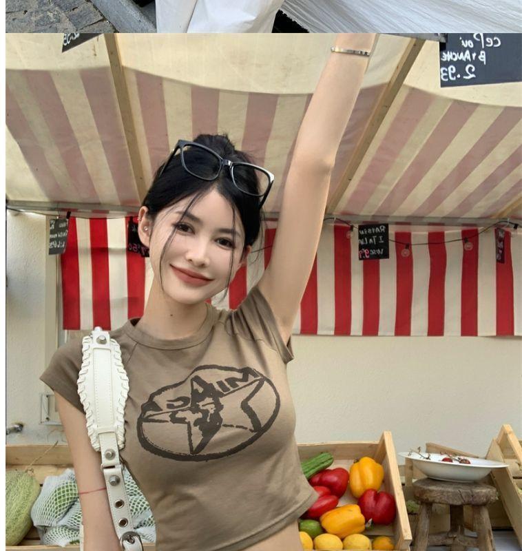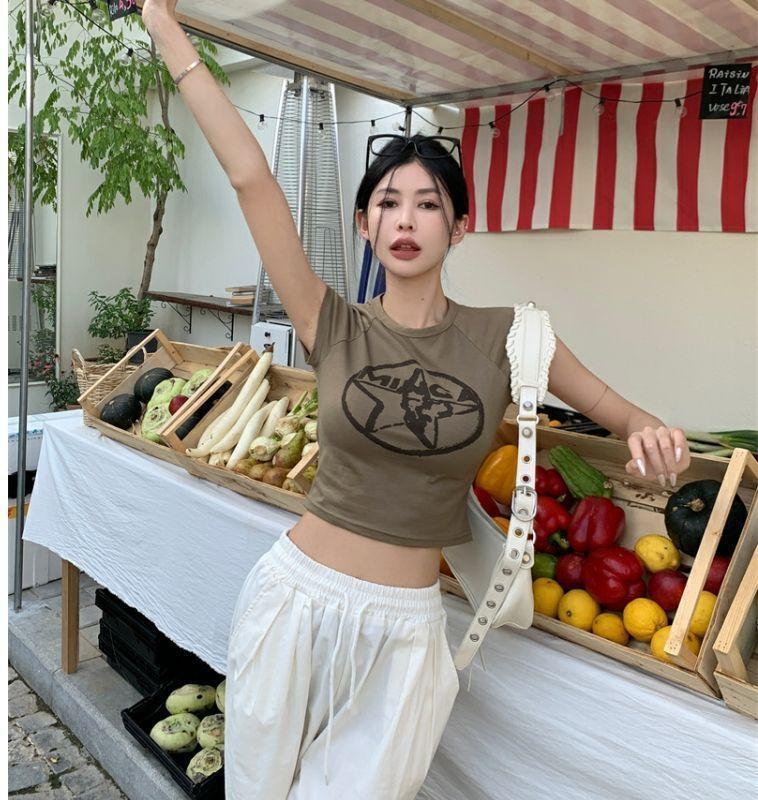 Camiseta de Manga Corta Estampada Retro Americana para Mujer Verano Chica Caliente Raglán Corta Top Ajustado Nuevo Estilo 2025 Ropa Interior