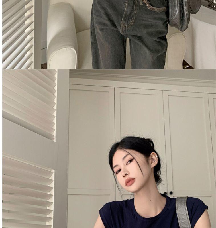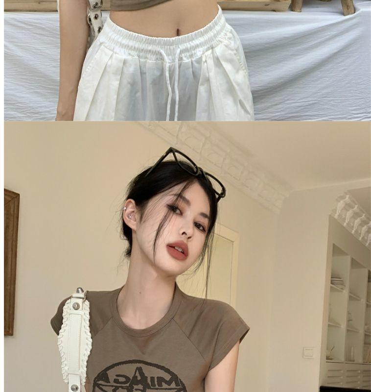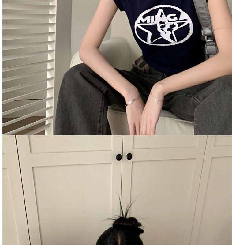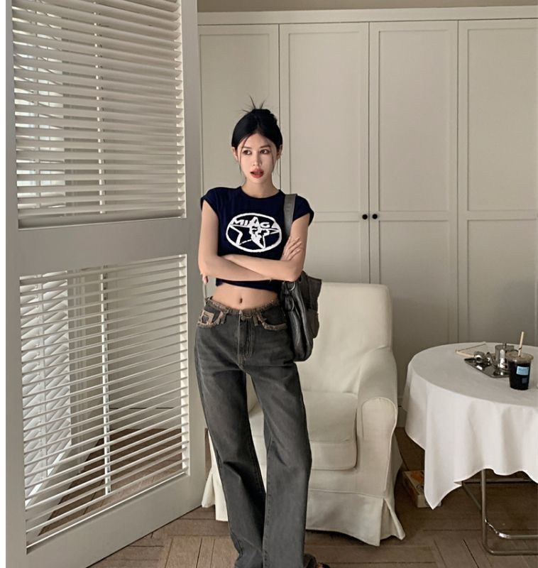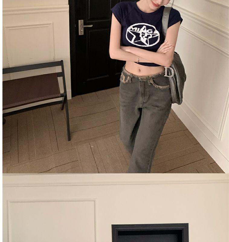 Camiseta de Manga Corta Estampada Retro Americana para Mujer Verano Chica Caliente Raglán Corta Top Ajustado Nuevo Estilo 2025 Ropa Interior