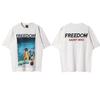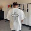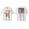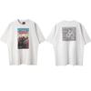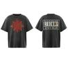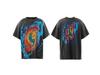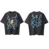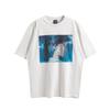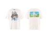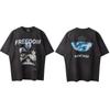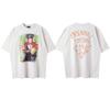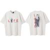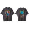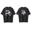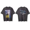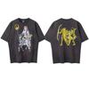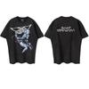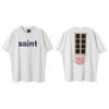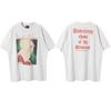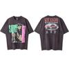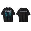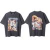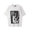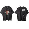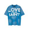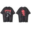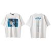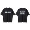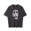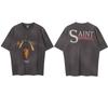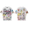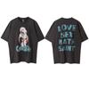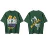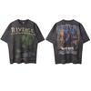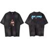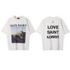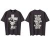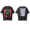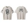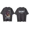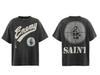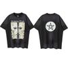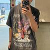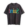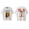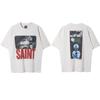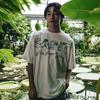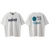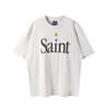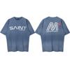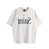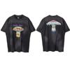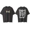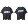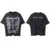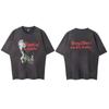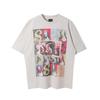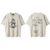 Marca de Moda Icono San Miguel Lavado Retro Estampado de Letras Graffiti Antiguo Suelto Manga Corta para Hombre y Mujer