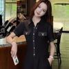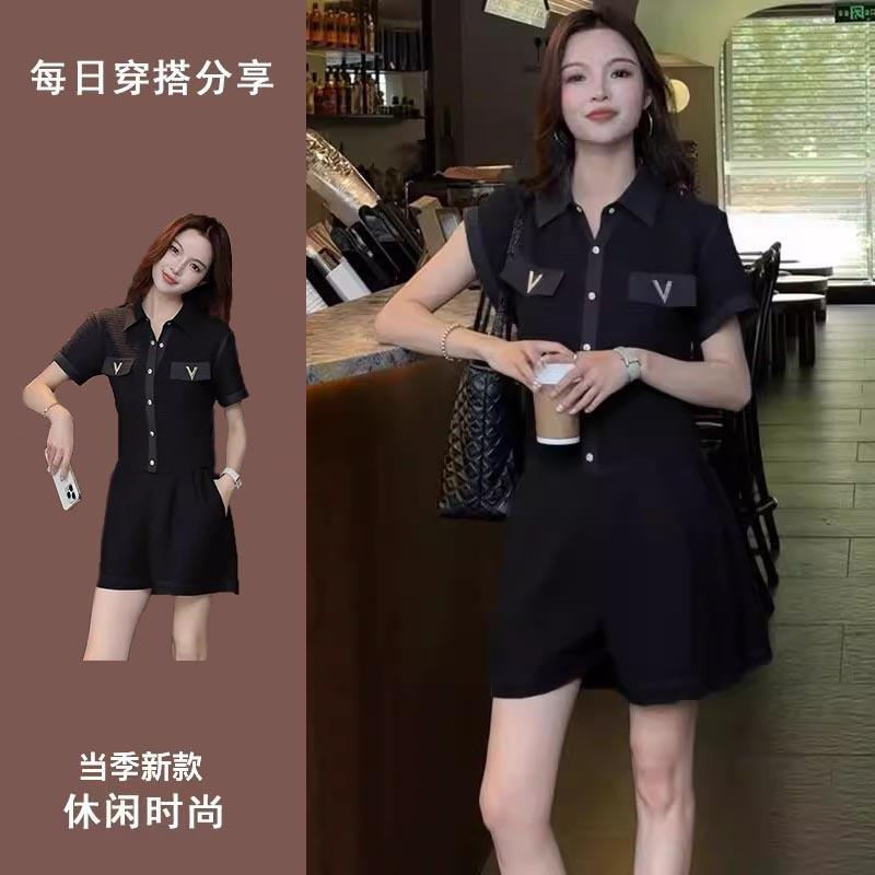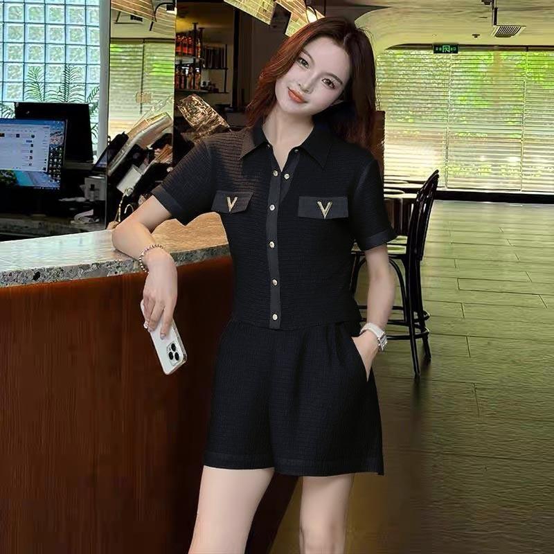 Conjunto de Moda Negro 2025 para Mujer Verano Nuevo Diseño Sentido Camisa Manga Corta Shorts Outfit Conjunto Completo