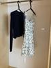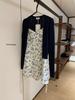 WGWE6721#Conjunto de Moda de Principios de Otoño Dulce Vestido Camisola Floral + Cárdigan de Punto Conjunto de Dos Piezas Mujer