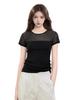 Compra Camiseta de Punto de Seda de Hielo Negro de Hombro con Manga Corta para Mujer con Diseño de Verano Ajustada Camiseta Básica Interior Top Corto para Verano al por mayor en Joom.pro