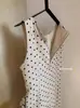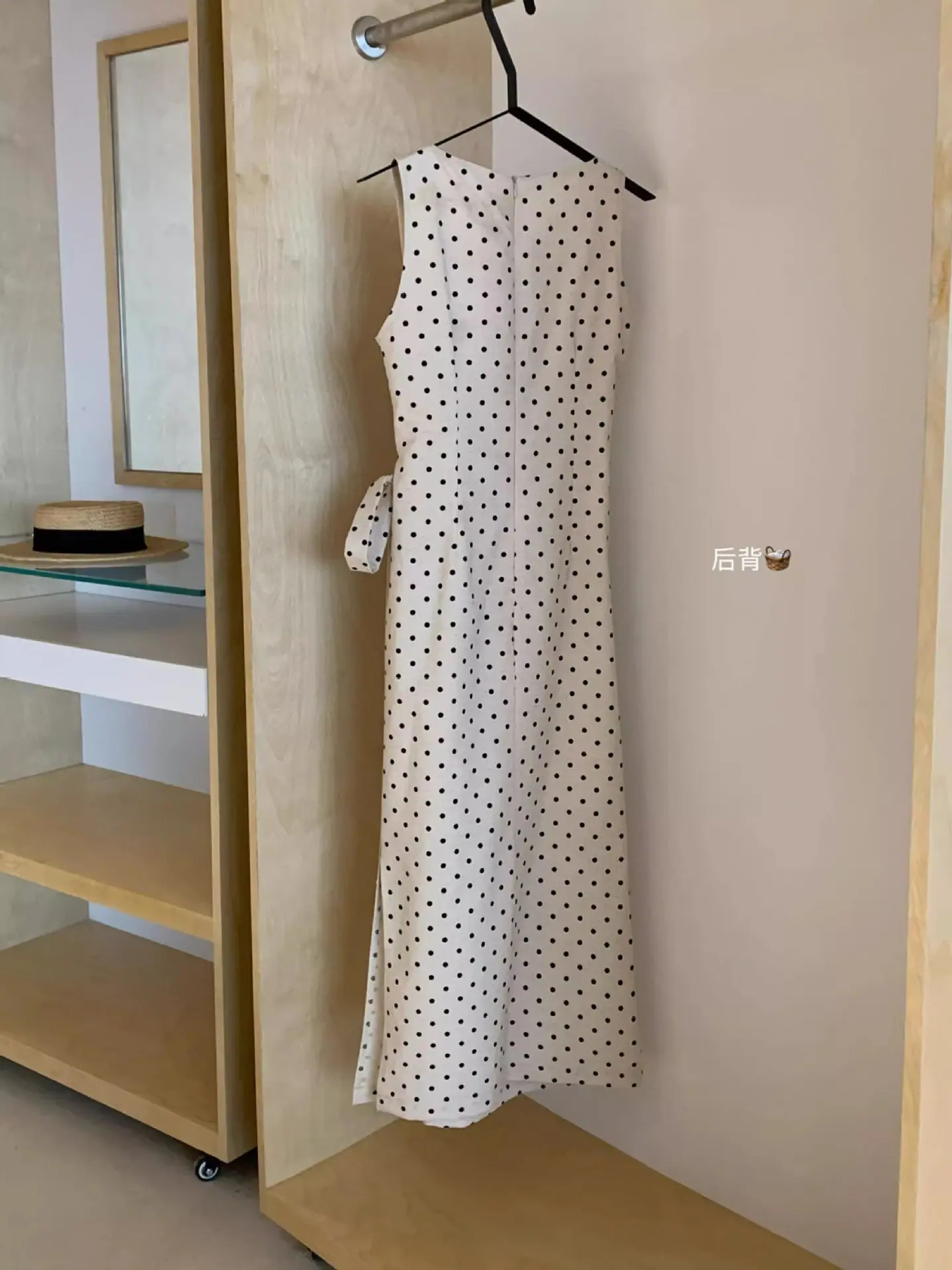 Compra Liquidación, Sin Devoluciones ni Cambios, Vestido Largo de Lino-Algodón de Alta Gama Estilo Francés Pino Luna Elegante Lunares Cintura Entallada W6687 al por mayor en Joom.pro
