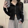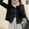 Playera de Manga Larga para Mujer Nueva Tendencia Nicho Nuevo Sentido Primavera y Otoño Nueva Slim Cintura Alta Cárdigan Corto Top de Doble Cierre