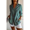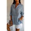 2025 Nueva Camisa de Solapa Plisada de Pecho Sencillo Independiente Stand Popular para Mujer Color Sólido Europeo y Americano Manga Remangable