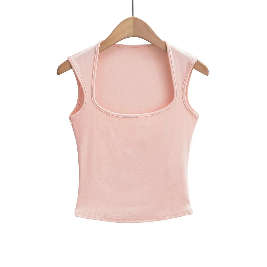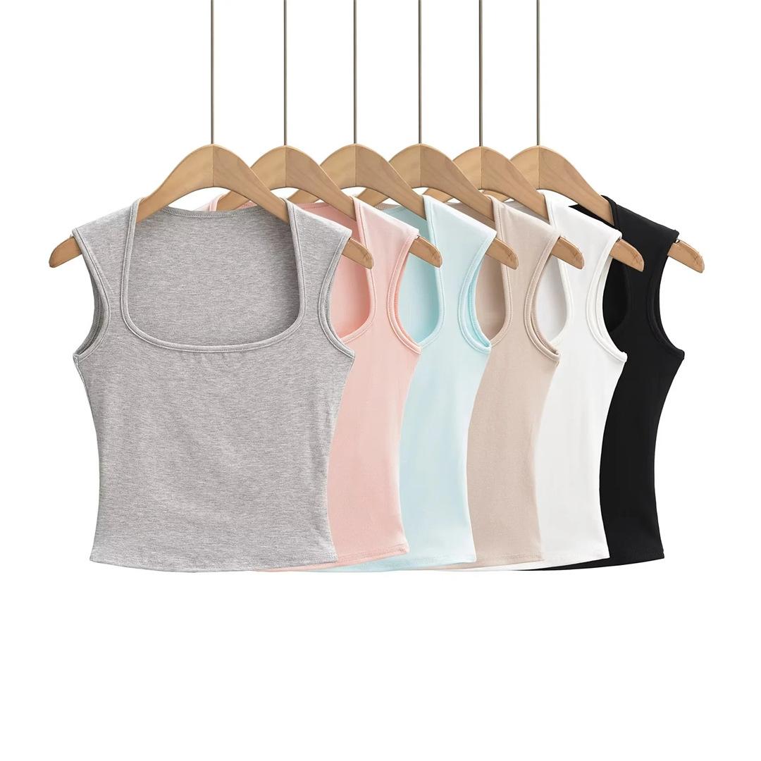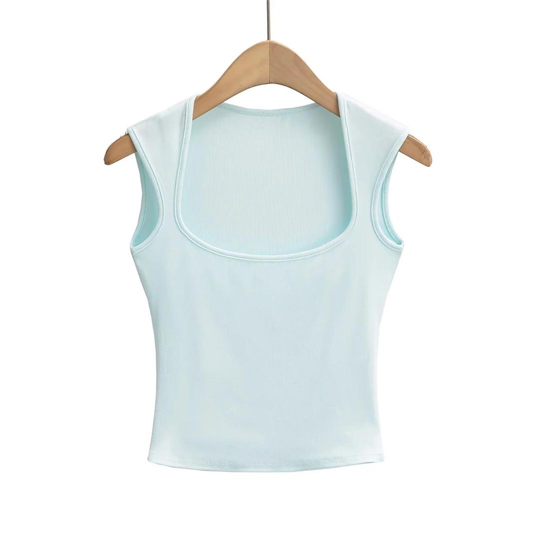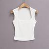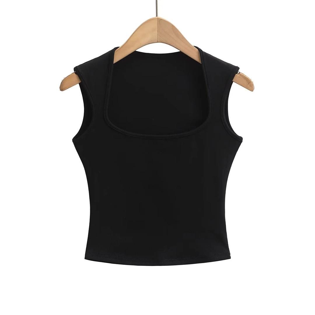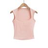 Chaleco sin mangas de cuello cuadrado para mujer, básico, sencillo, ajustado, de cintura alta, corto, con ombligo descubierto, base, casual, deportivo