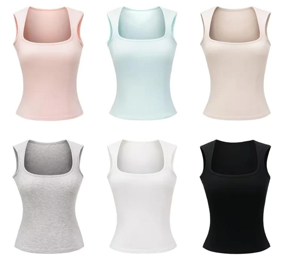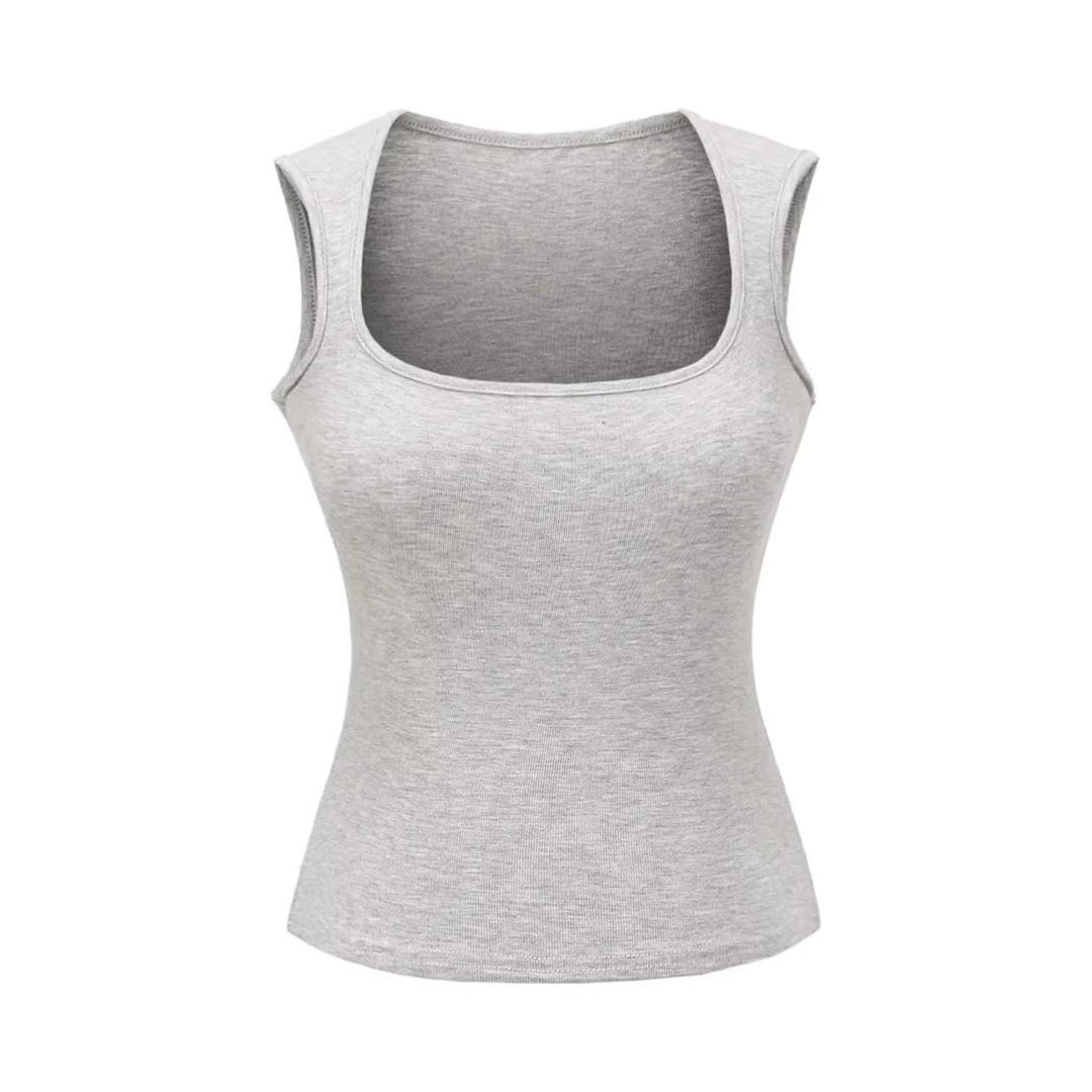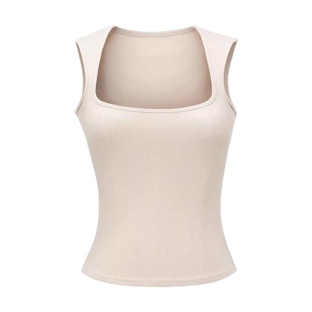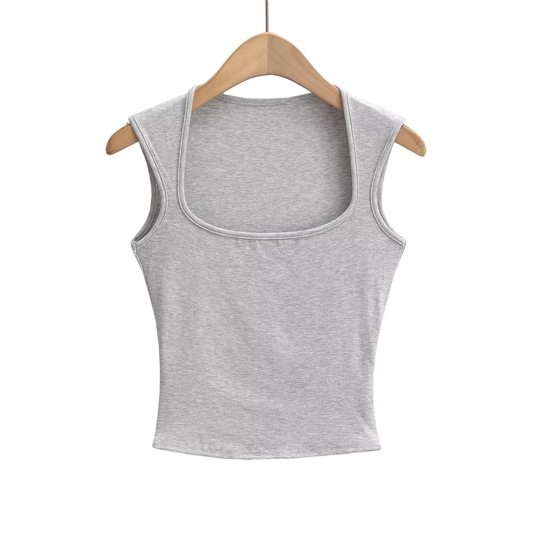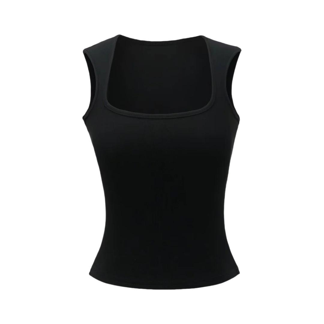 Chaleco sin mangas de cuello cuadrado para mujer, básico, sencillo, ajustado, de cintura alta, corto, con ombligo descubierto, base, casual, deportivo