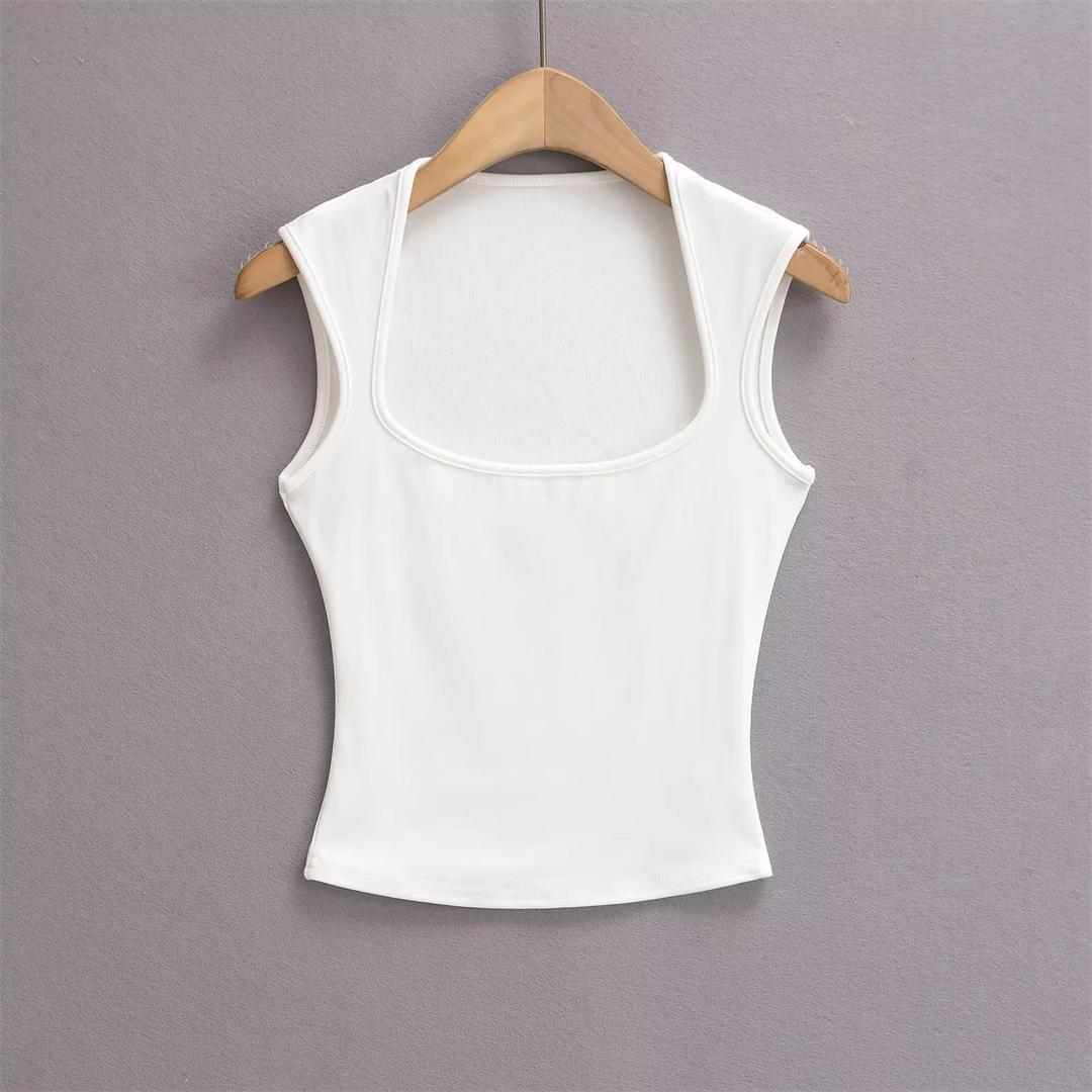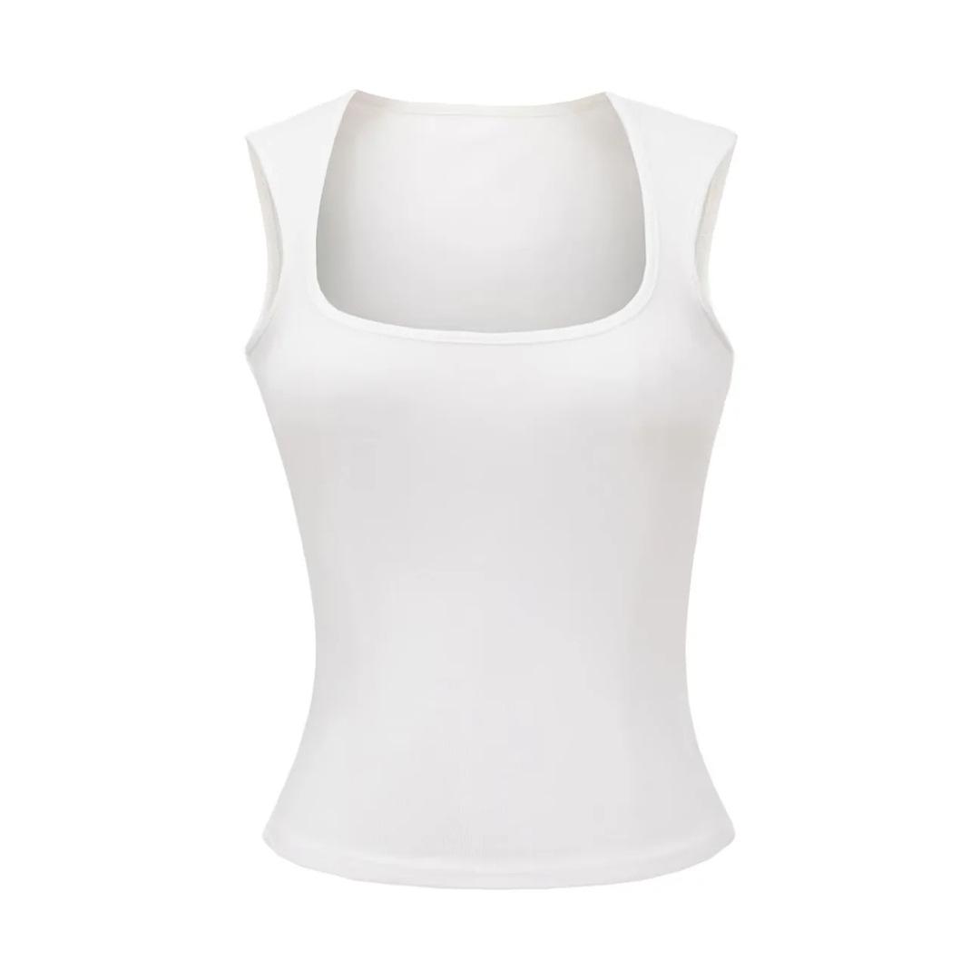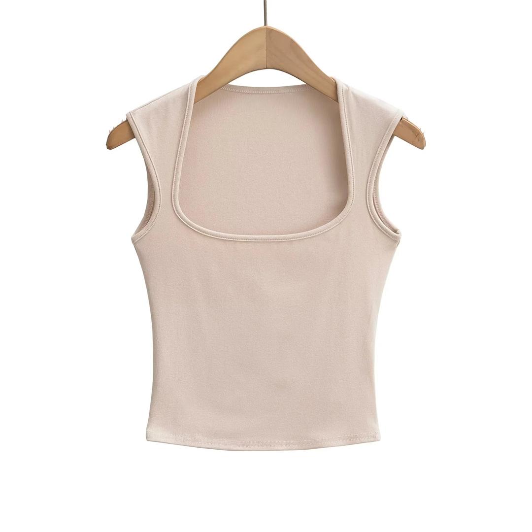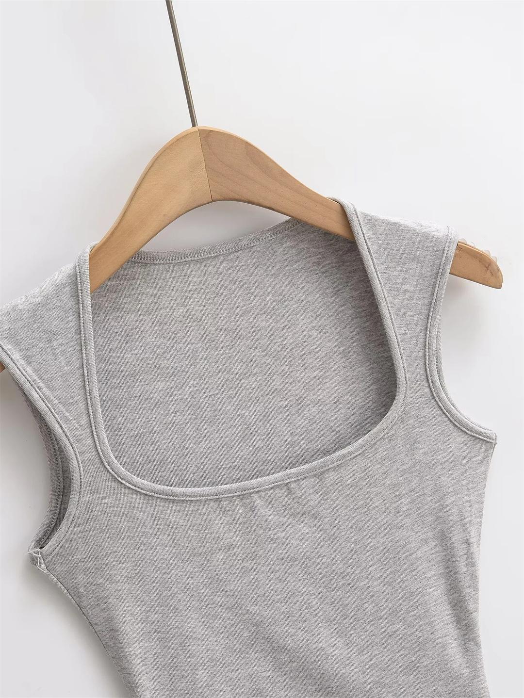 Chaleco sin mangas de cuello cuadrado para mujer, básico, sencillo, ajustado, de cintura alta, corto, con ombligo descubierto, base, casual, deportivo