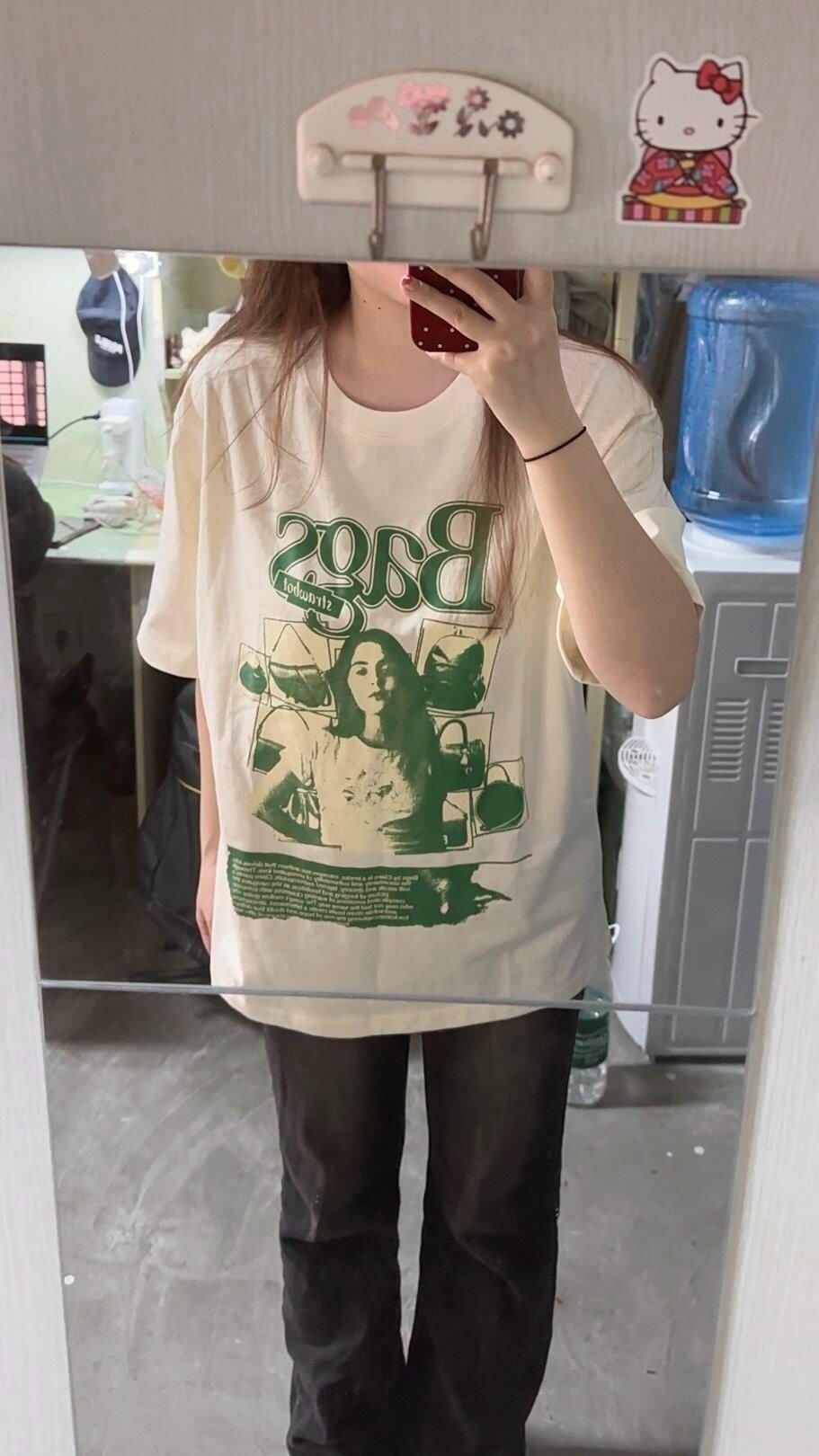 Compra Popular Camiseta de Algodón de Manga Corta para Mujer Estilo Coreano Original Casual Estampada de Media Manga Ropa de Verano Harajuku Trendy al por mayor en Joom.pro