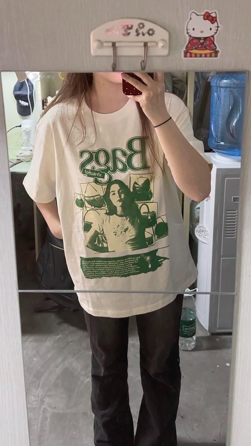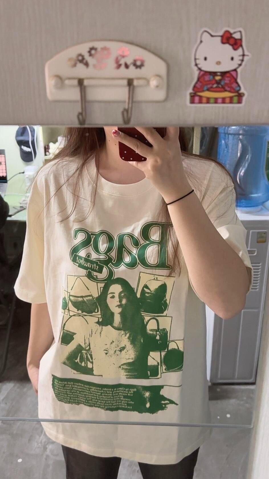 Popular Camiseta de Algodón de Manga Corta para Mujer Estilo Coreano Original Casual Estampada de Media Manga Ropa de Verano Harajuku Trendy