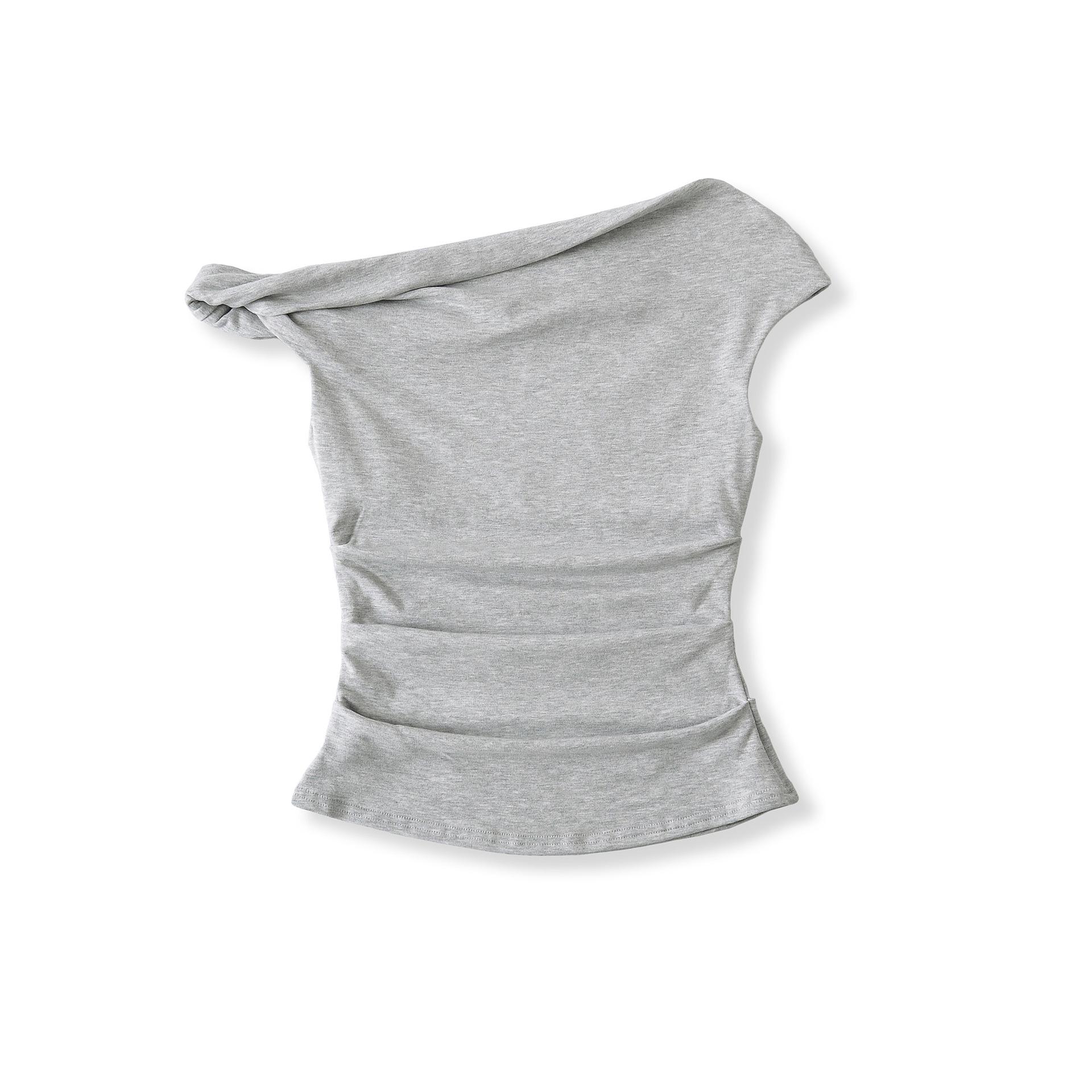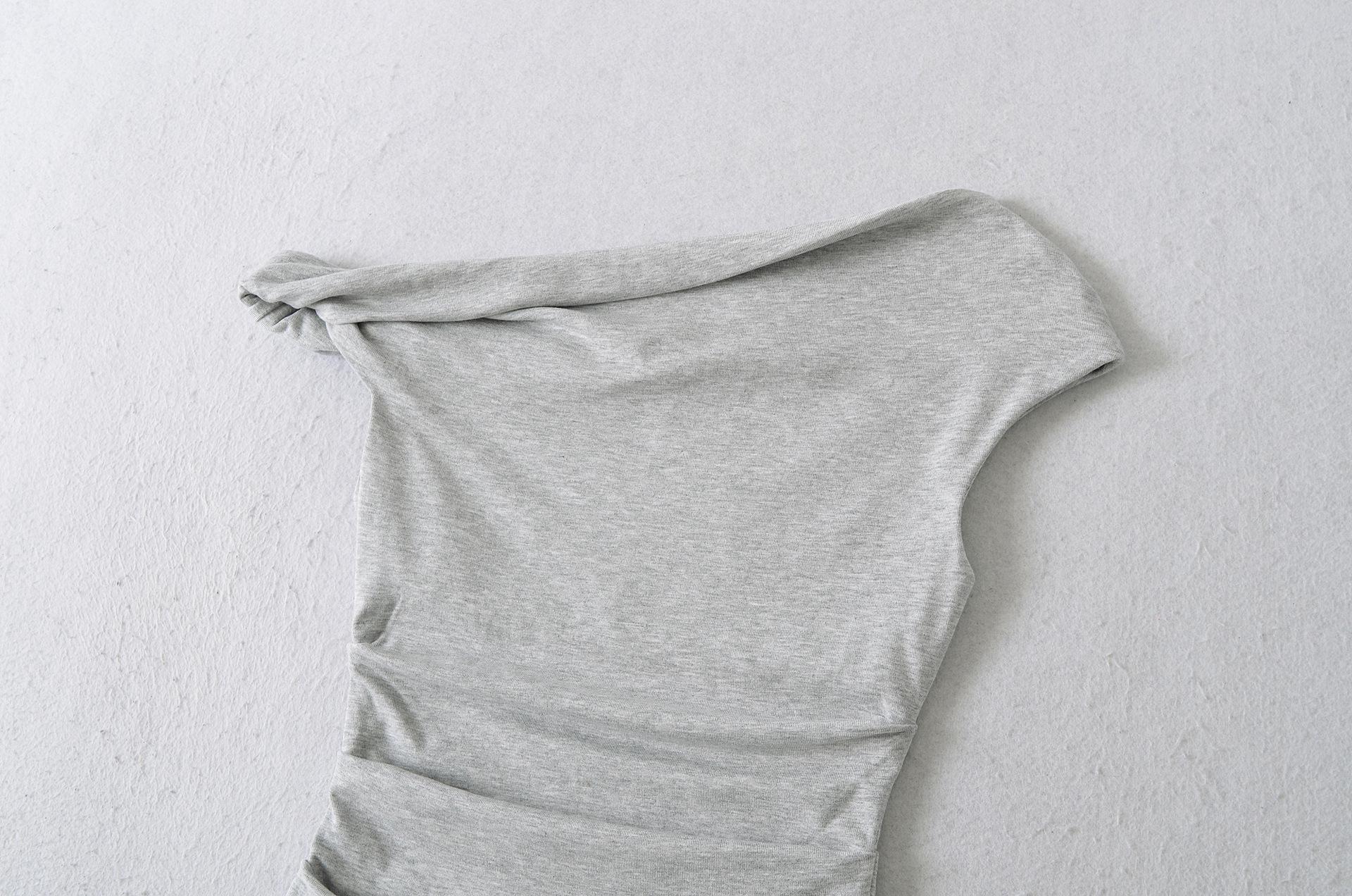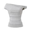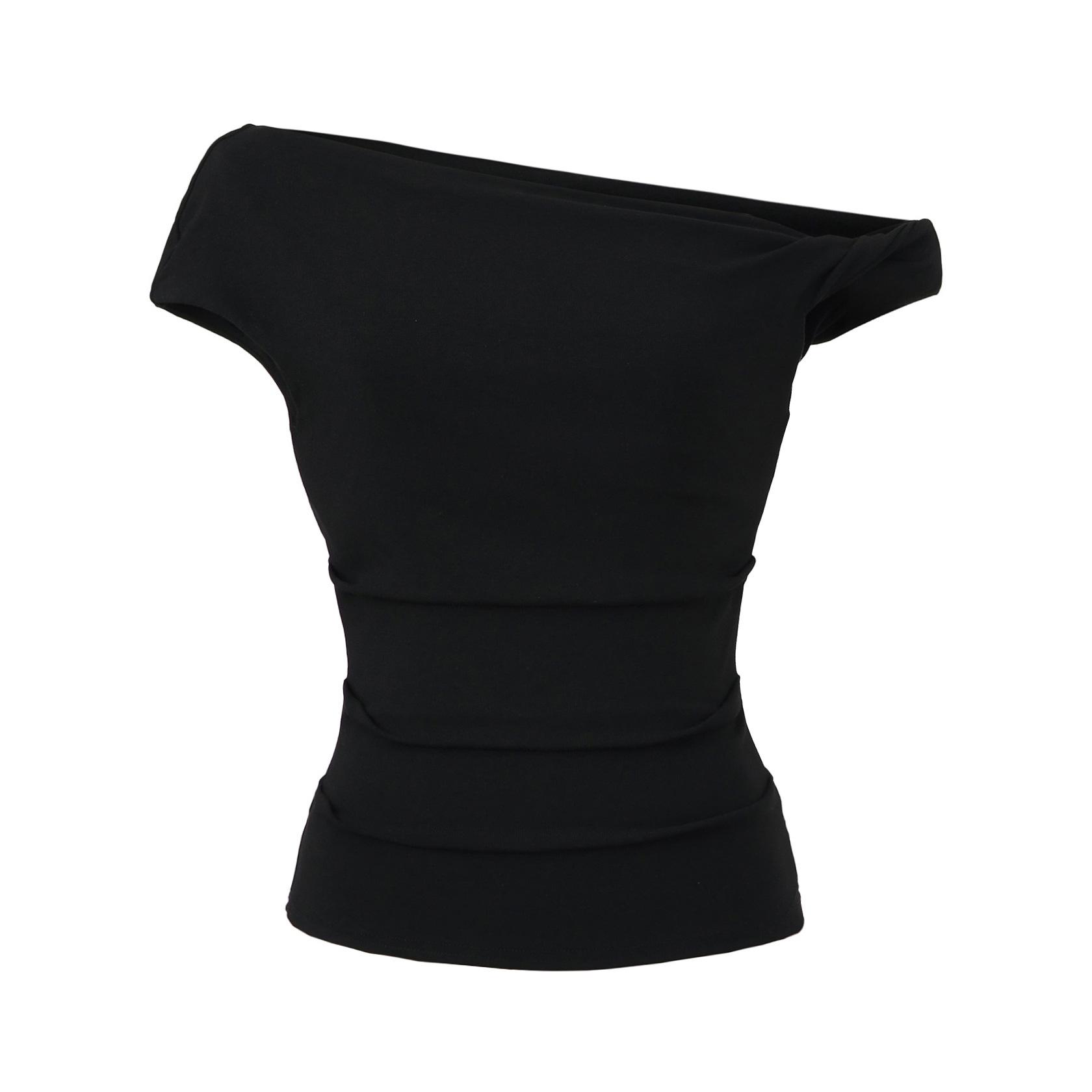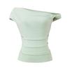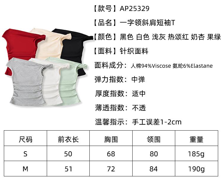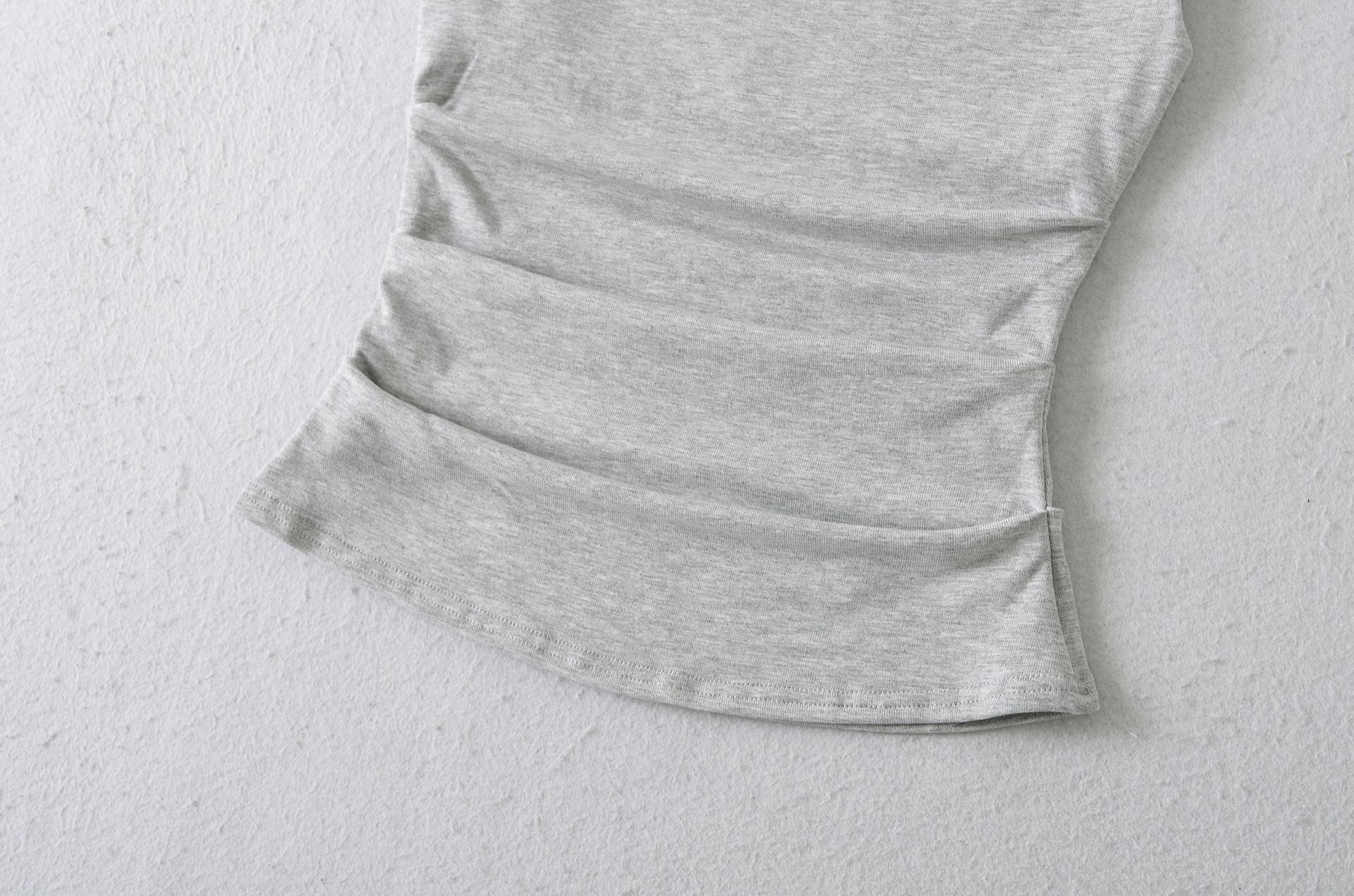 Playera de Verano para Chica Sexy de Un Hombro Manga Corta 2025 Hombro Inclinado Espalda Descubierta Cintura Plisada Adelgazante Ajustada Camiseta Interior Top