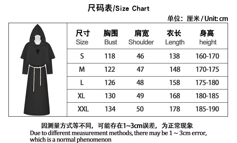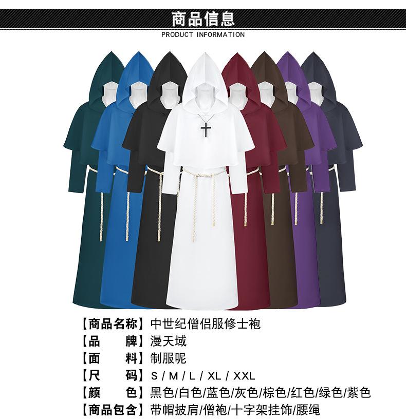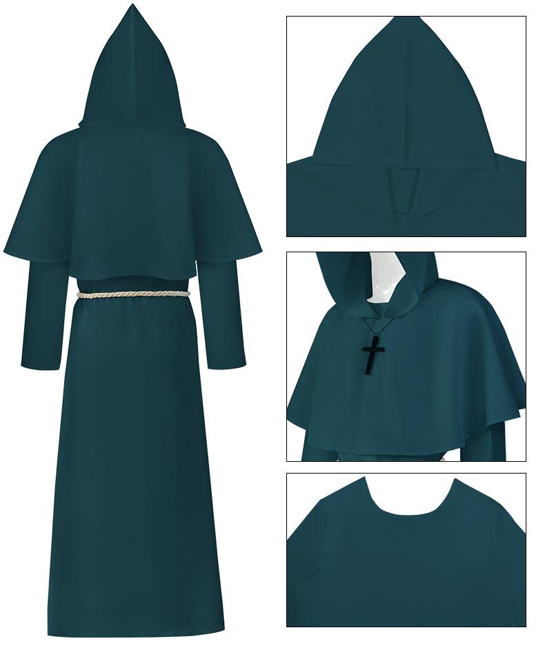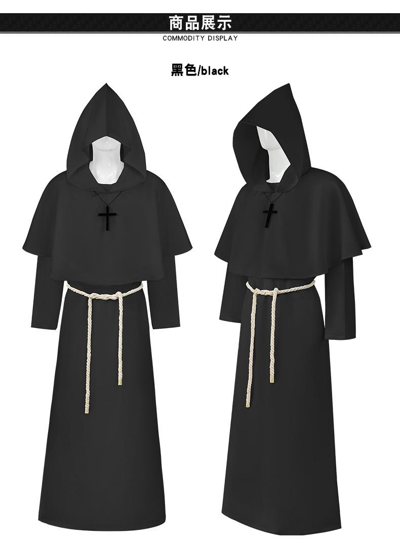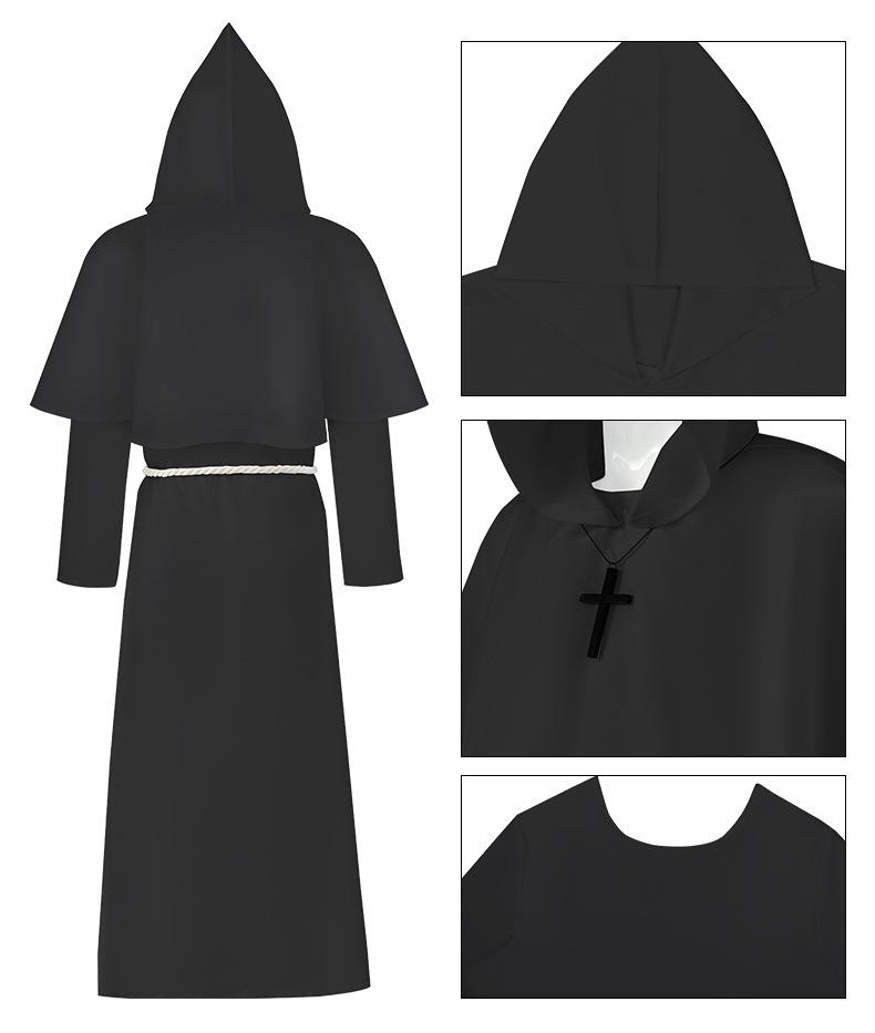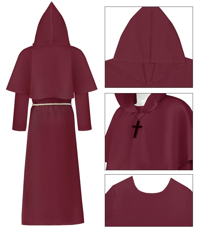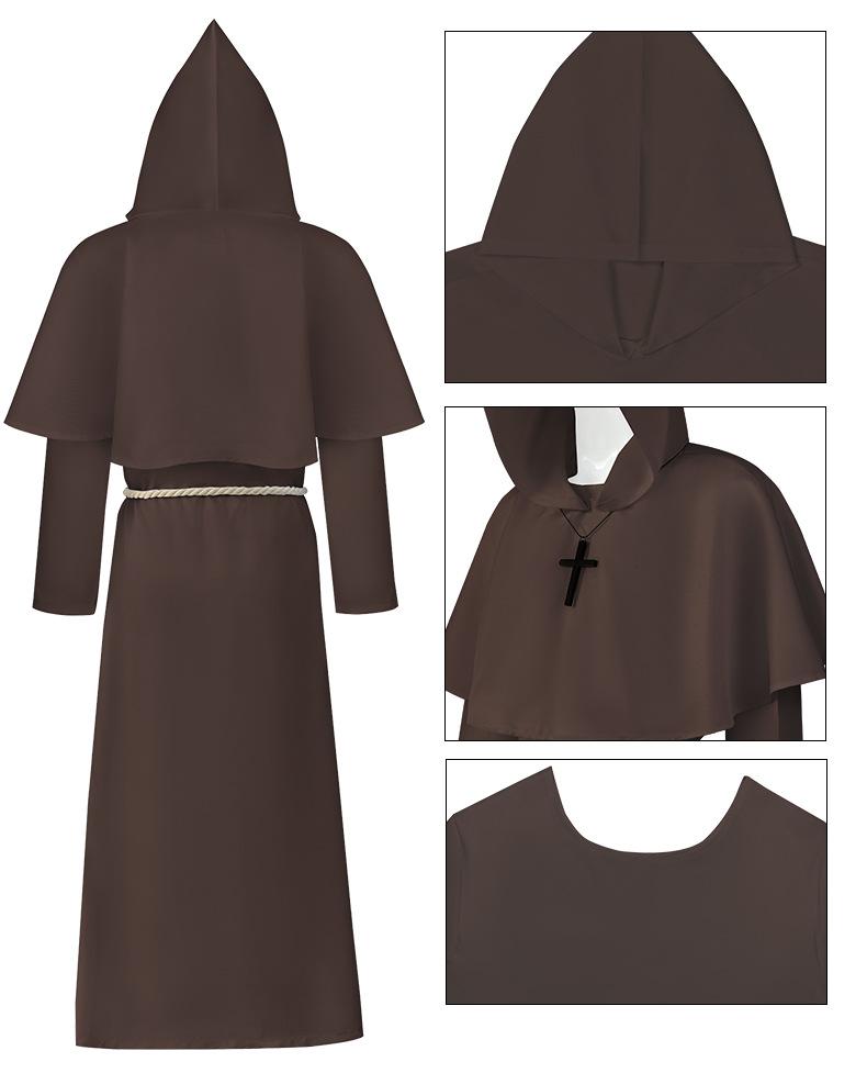 Disfraz de Halloween Mantian Túnica de Monje Medieval Disfraz de Monje Disfraz de Mago Disfraz de Cosplay de Sacerdote
