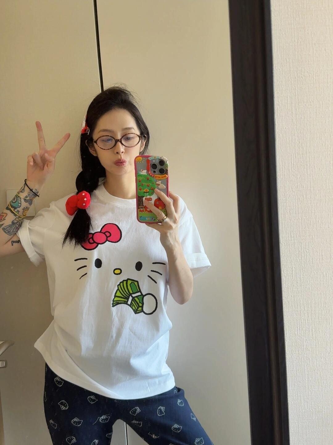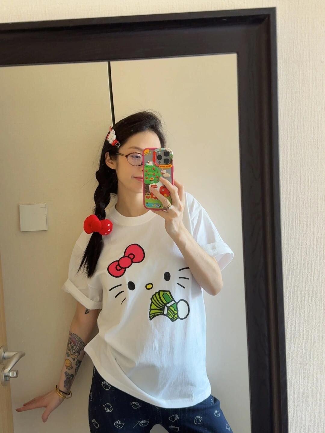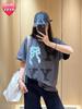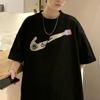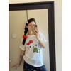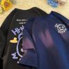 Playera Pulóver con Sentido del Diseño Estampada Manga Media Algodón Manga Corta para Mujer Estilo Hong Kong Chico Artístico Hombre