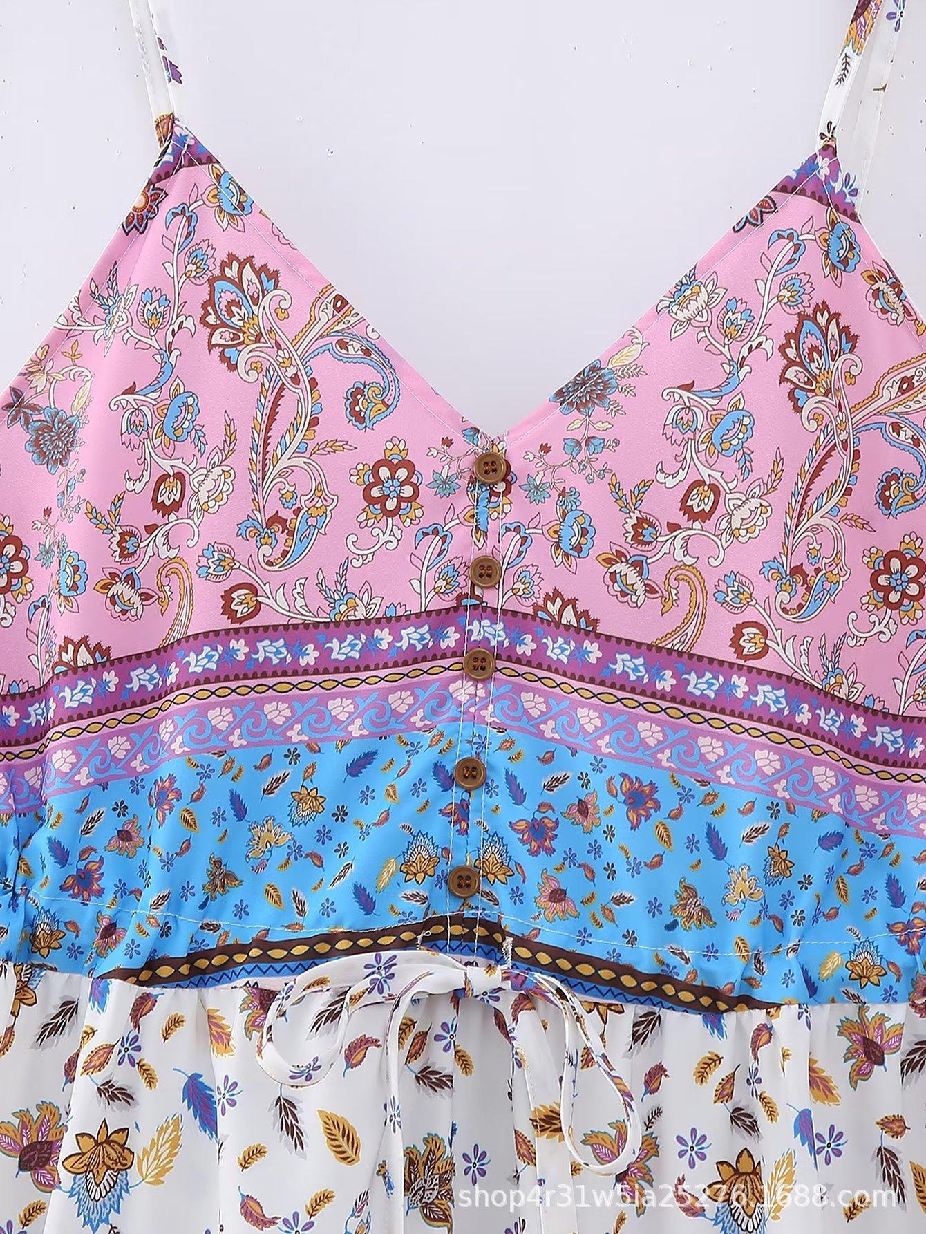 Estilo europeo y americano 2023 primavera nuevo vestido de tirantes con estampado floral retro francés para mujer-venta al por mayor