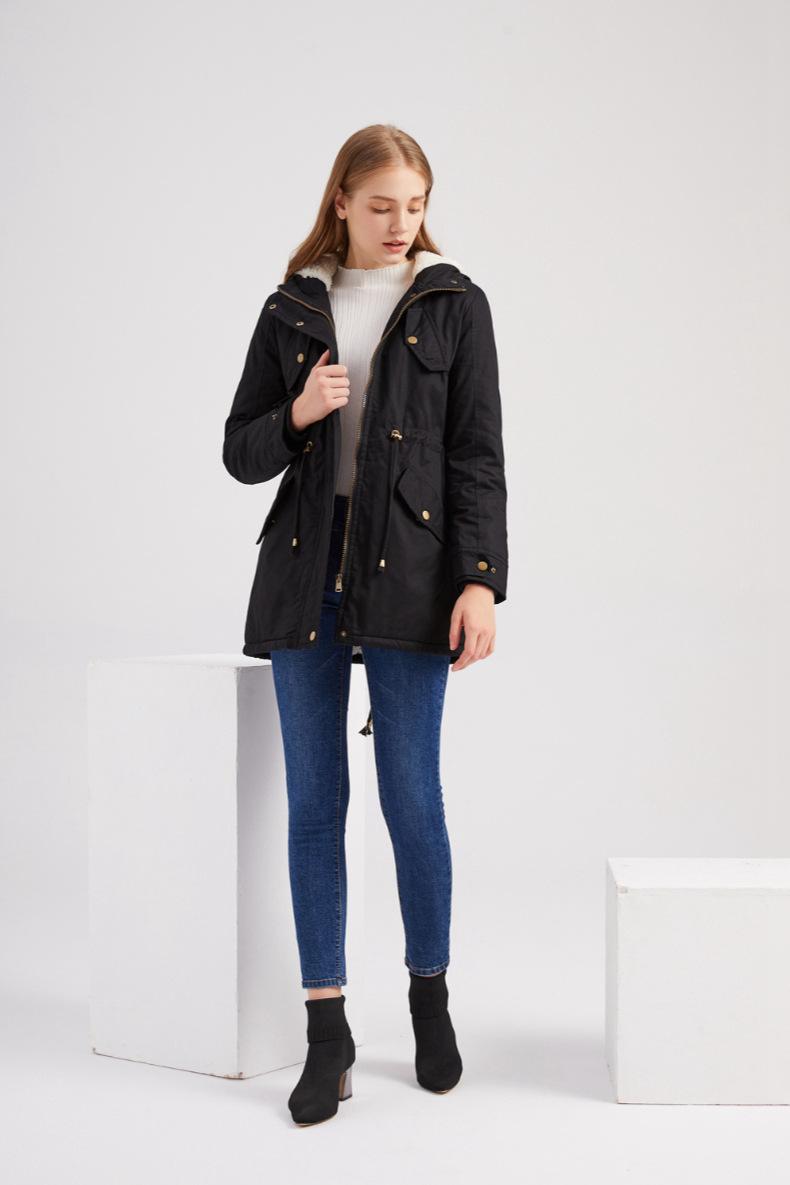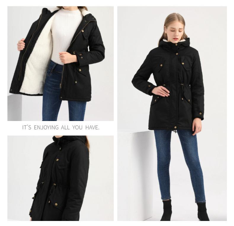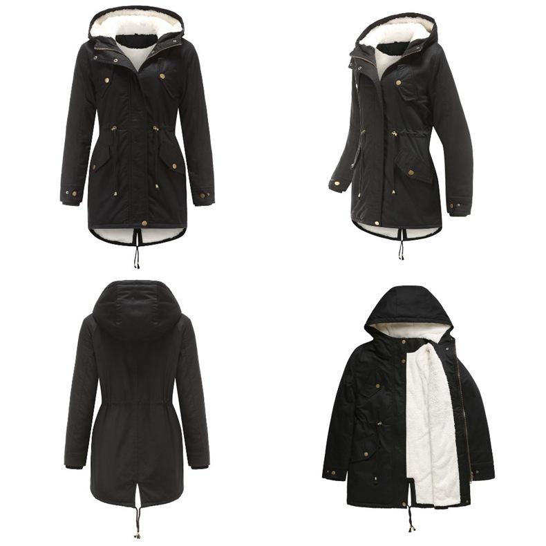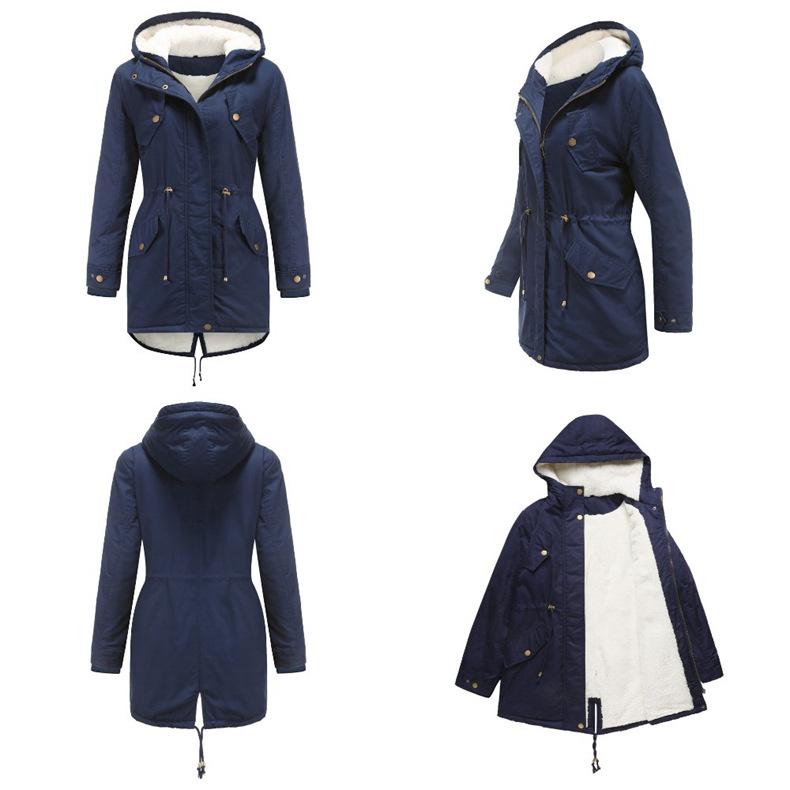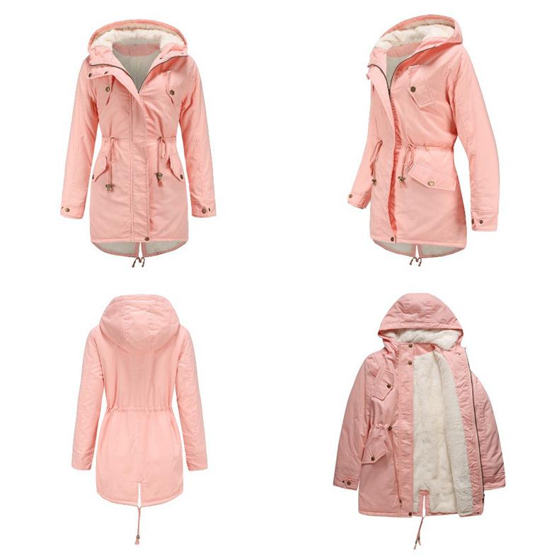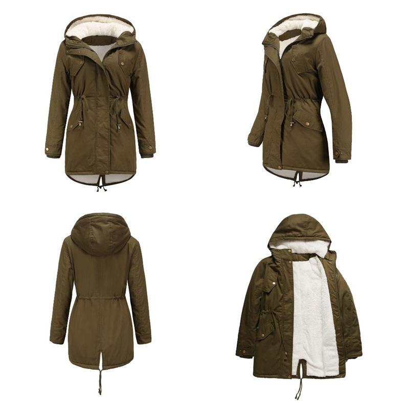 2024 talla europea otoño e invierno nuevo abrigo parka con capucha para mujer de comercio exterior acolchado de algodón para mujer color sólido chaqueta acolchada de algodón gruesa con forro polar