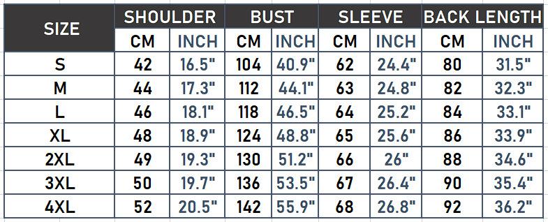 S, M, L, XL, XXL, XXXL, XXXXL, 5XL
