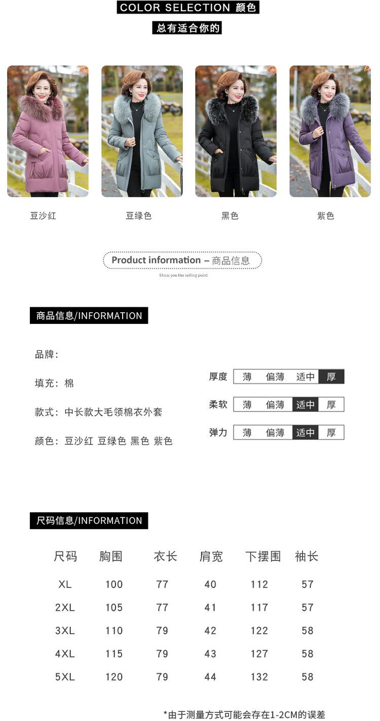 Abrigo Corto de Algodón Acolchado de Plumón para Otoño e Invierno de Mamá Abrigo Grande con Cuello de Lana para Mujeres de Mediana Edad Abrigo Acolchado de Algodón de Talla Grande para Moda de Mediana Edad y Ancianos Abrigo
