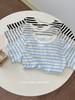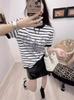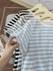 Verano Nuevo Estilo Camiseta Rayada Holgada Casual Moderna Cuello Redondo Top para Mujer de Alta Gama Sencilla Combinable Ajustada Base