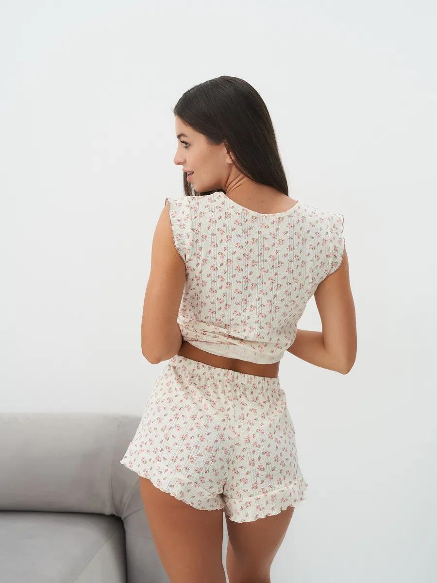 Moda de Verano Transfronteriza Europea y Americana Top sin Mangas con Estampado Floral Shorts Ropa para el Hogar Nuevo Diseño Traje con Dobladillo de Oreja