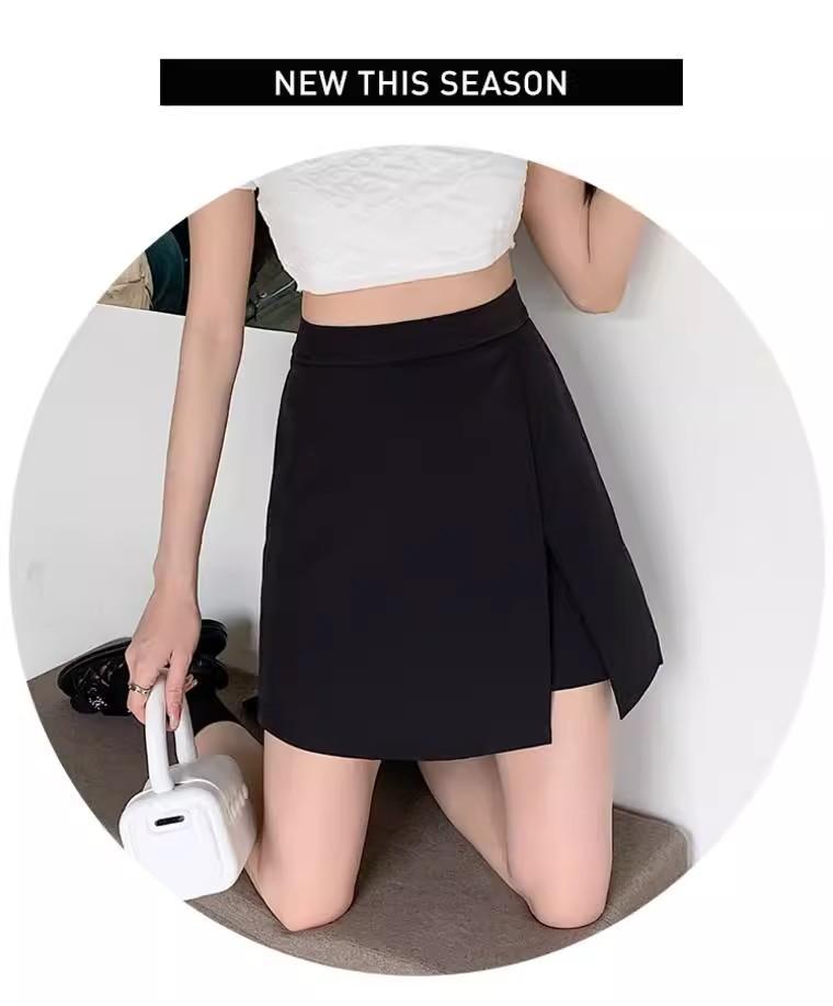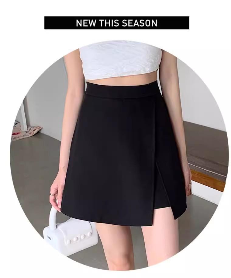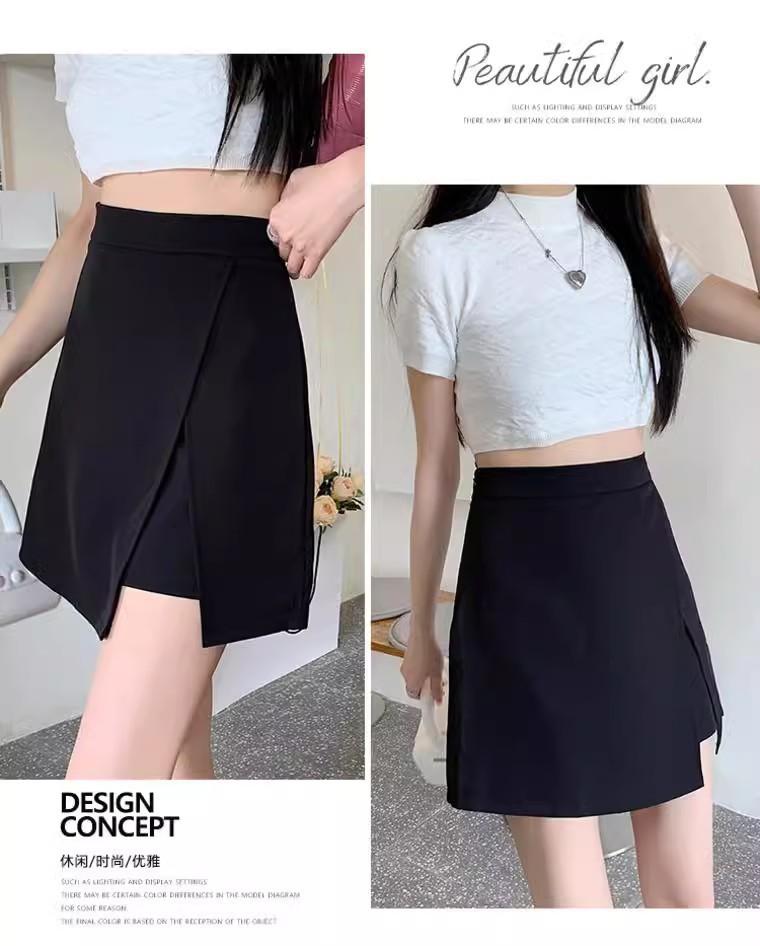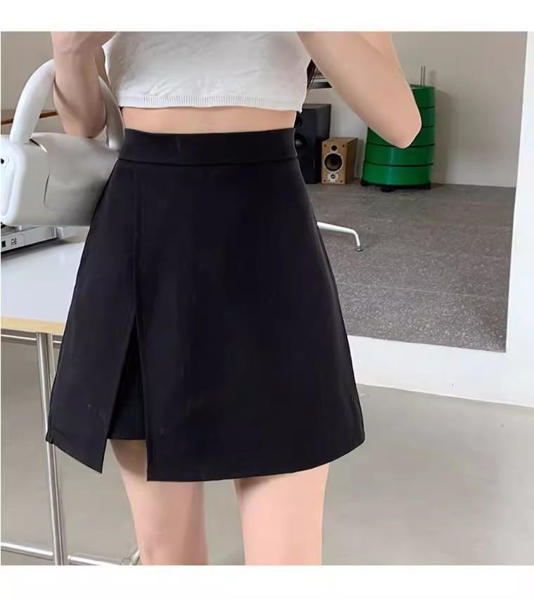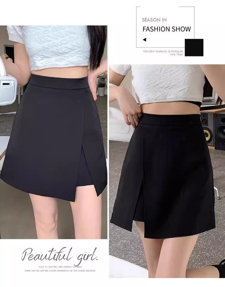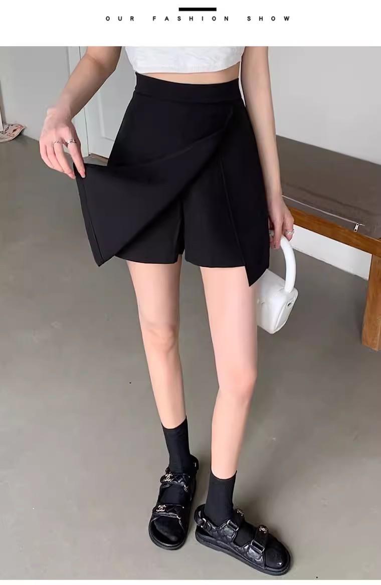 Compra Traje Negro con Abertura Falda Corta para Mujer Verano 2025 Nuevo Estilo Pantalón Corto de Cintura Alta Falda de Corte A Casual con Efecto Adelgazante al por mayor en Joom.pro