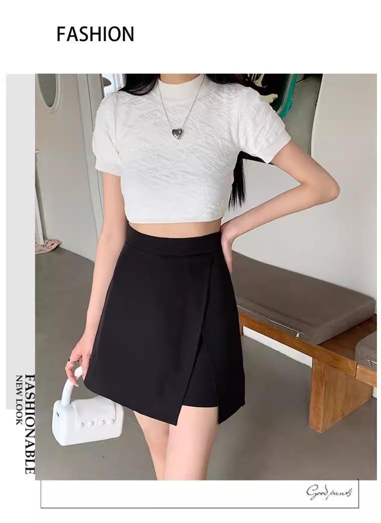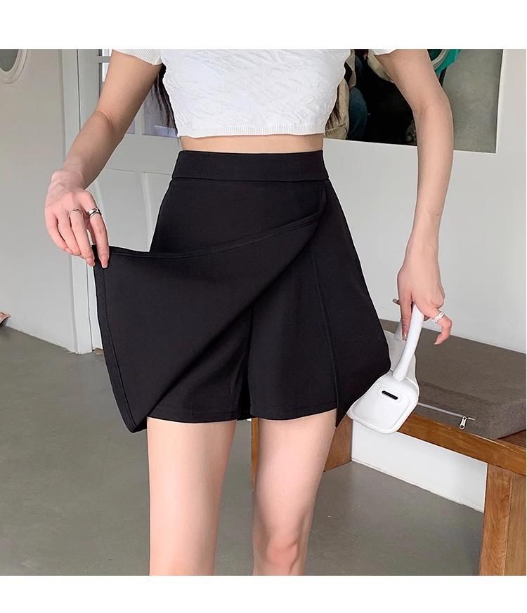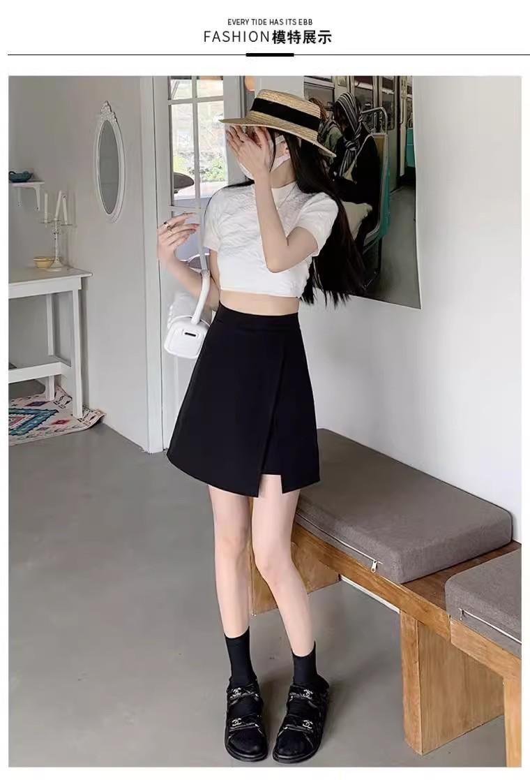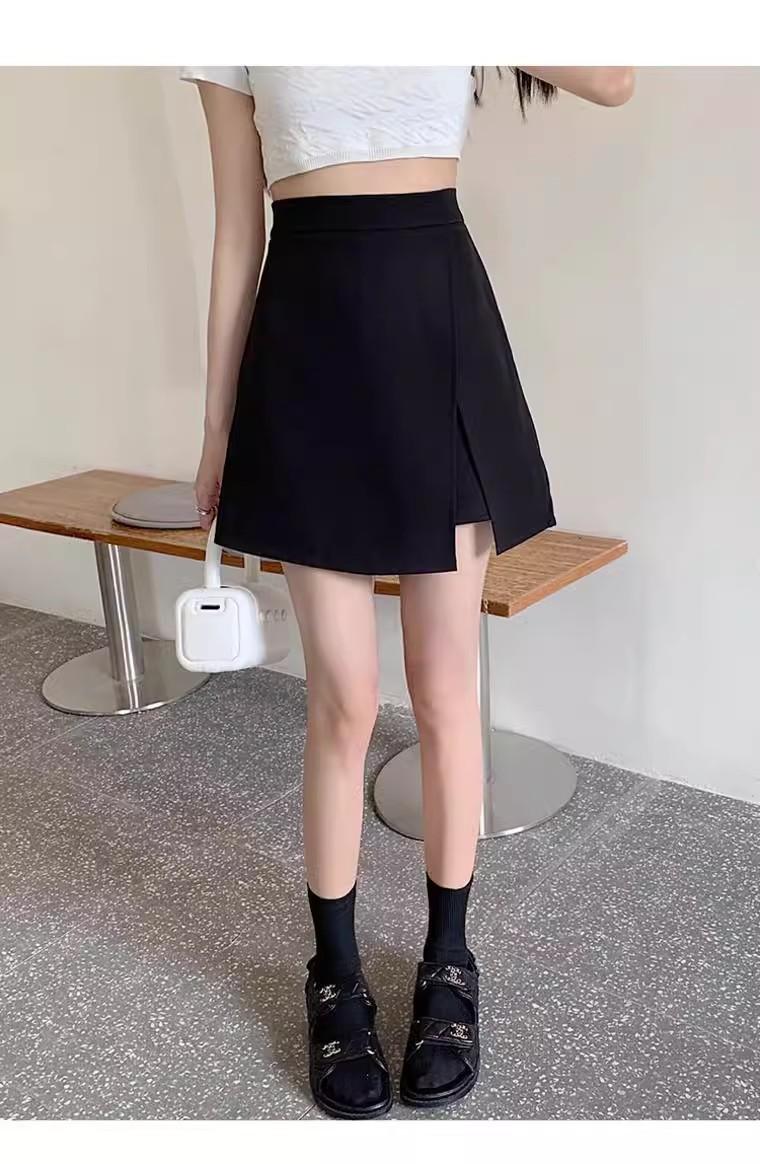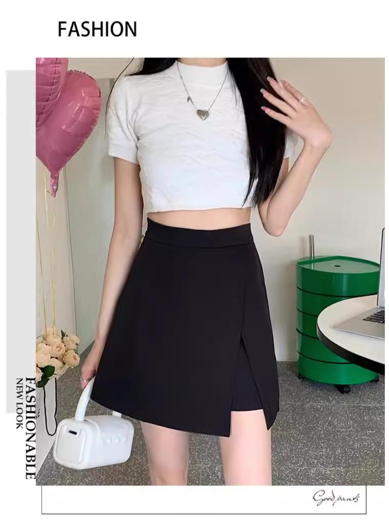 Compra Traje Negro con Abertura Falda Corta para Mujer Verano 2025 Nuevo Estilo Pantalón Corto de Cintura Alta Falda de Corte A Casual con Efecto Adelgazante al por mayor en Joom.pro