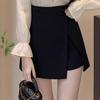 Traje Negro con Abertura Falda Corta para Mujer Verano 2025 Nuevo Estilo Pantalón Corto de Cintura Alta Falda de Corte A Casual con Efecto Adelgazante