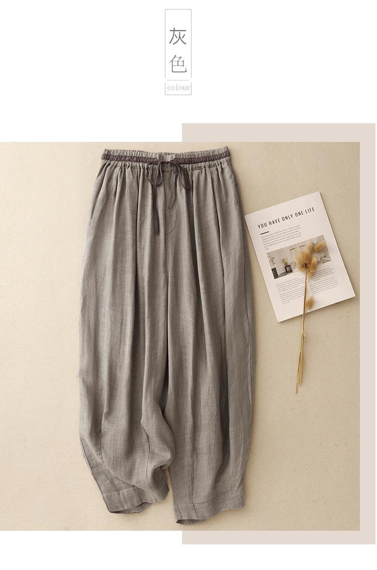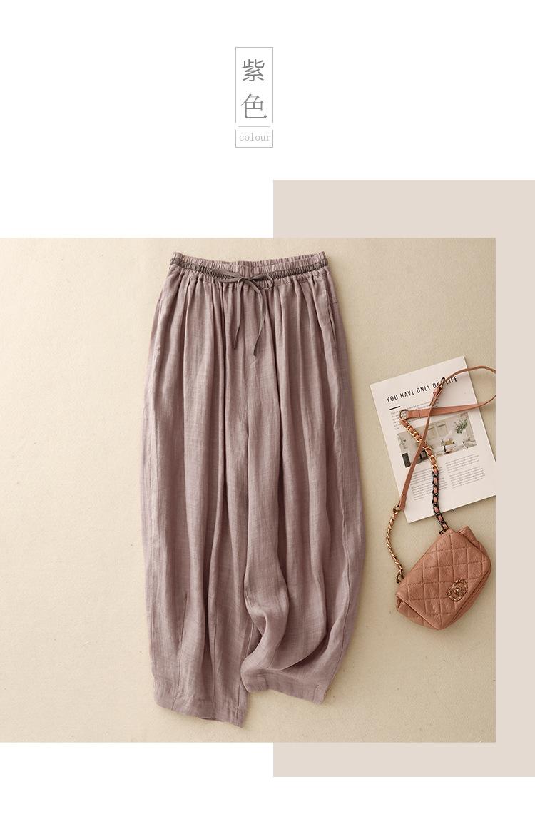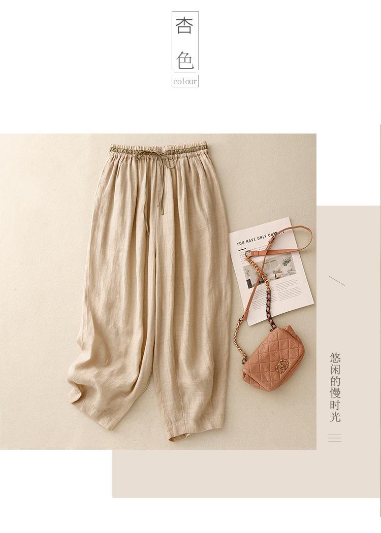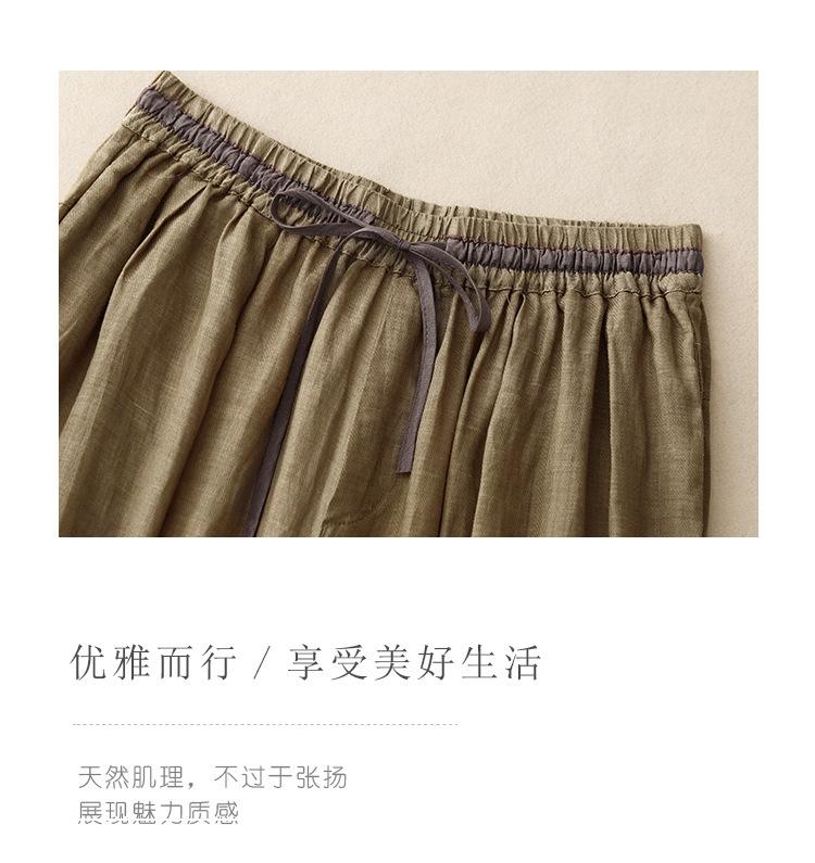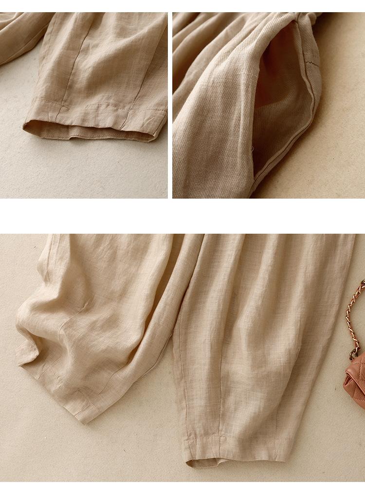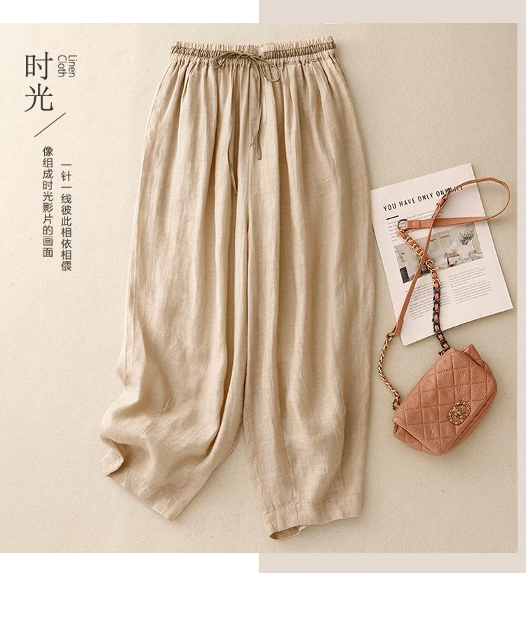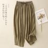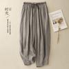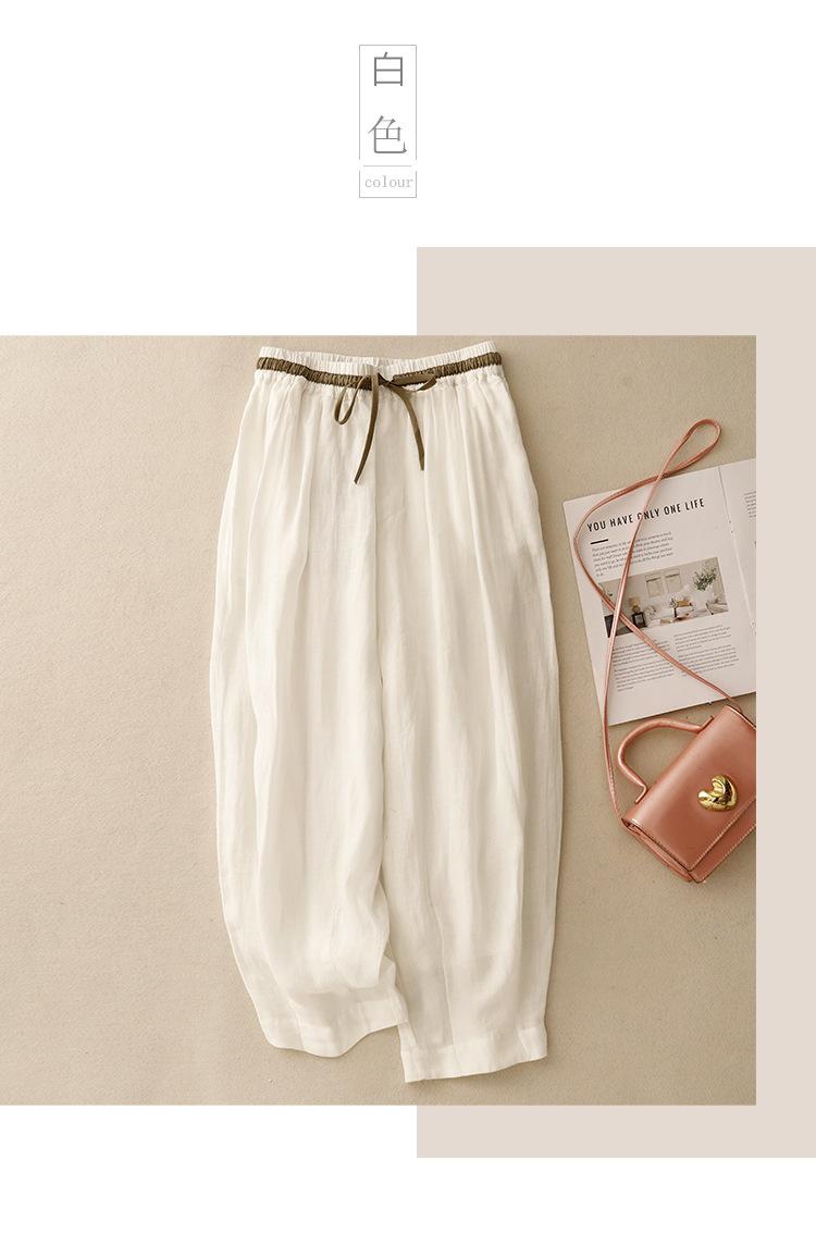 Pantalones Harem de Lino con Bloque de Color Literario de Verano 2025 para Mujer Sueltos Versátiles Delgados Algodón Lino Pantalones Nueve Puntos Pantalones Linterna Doble Capa