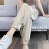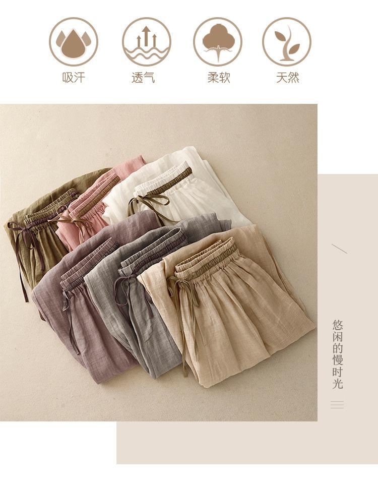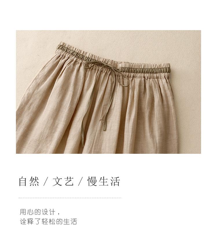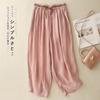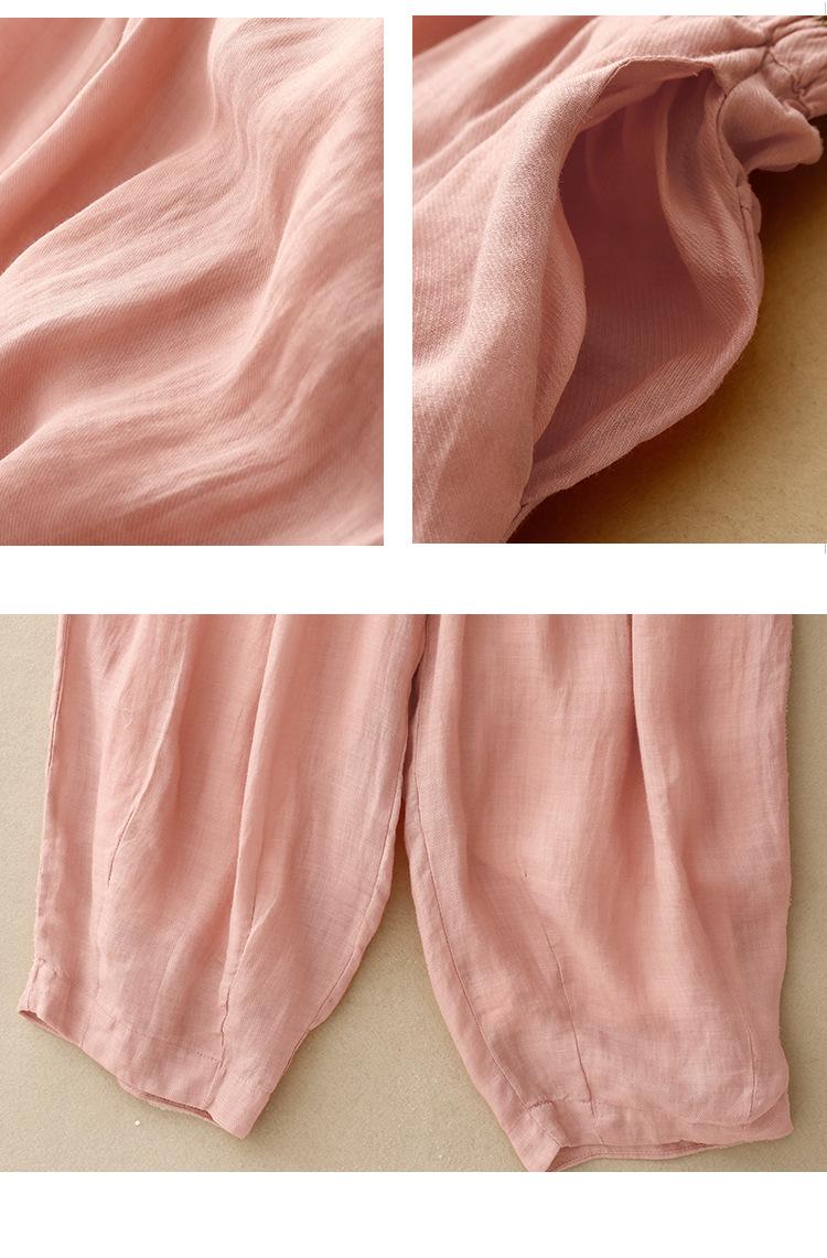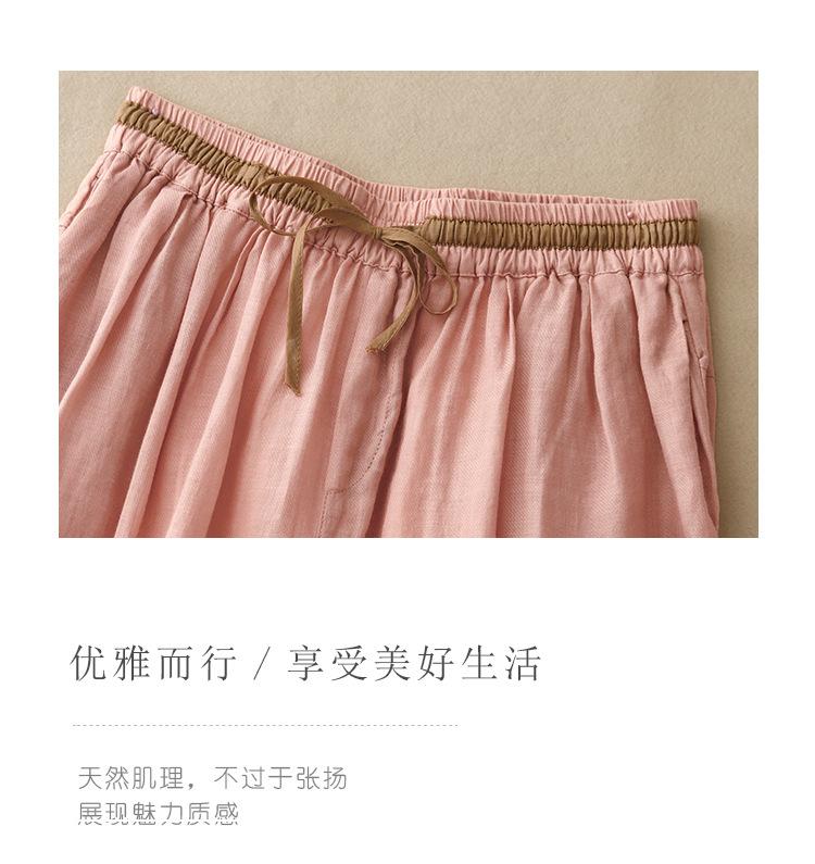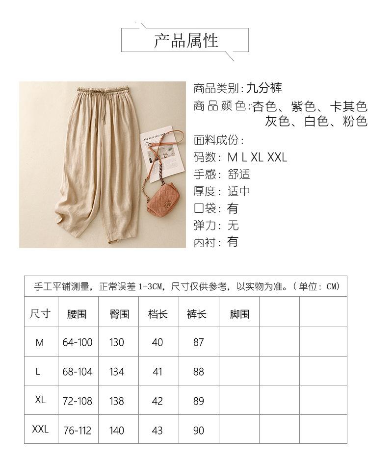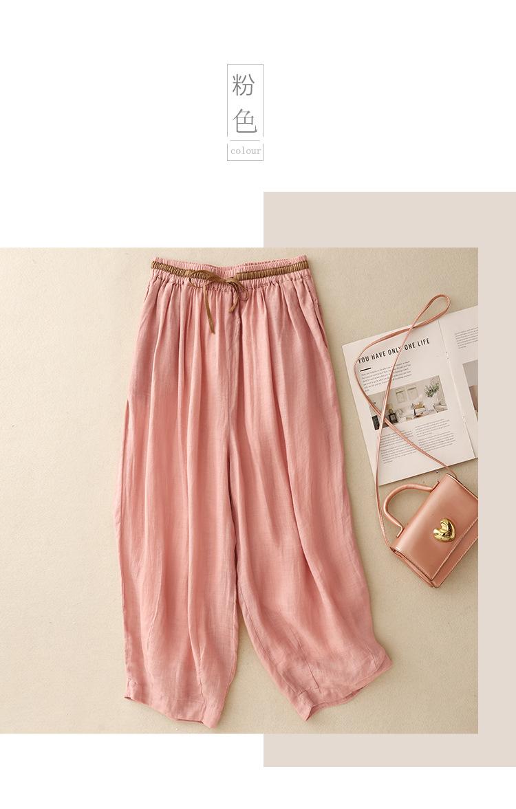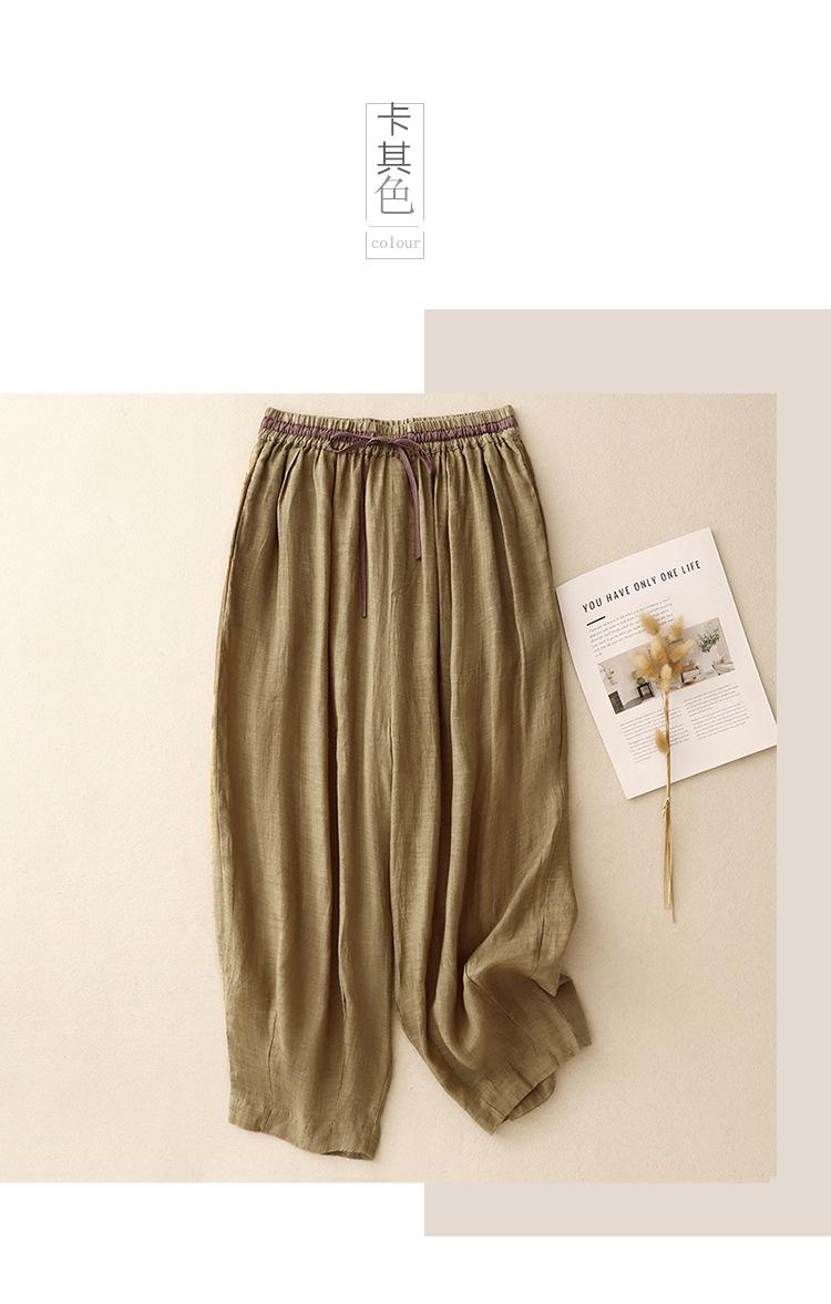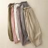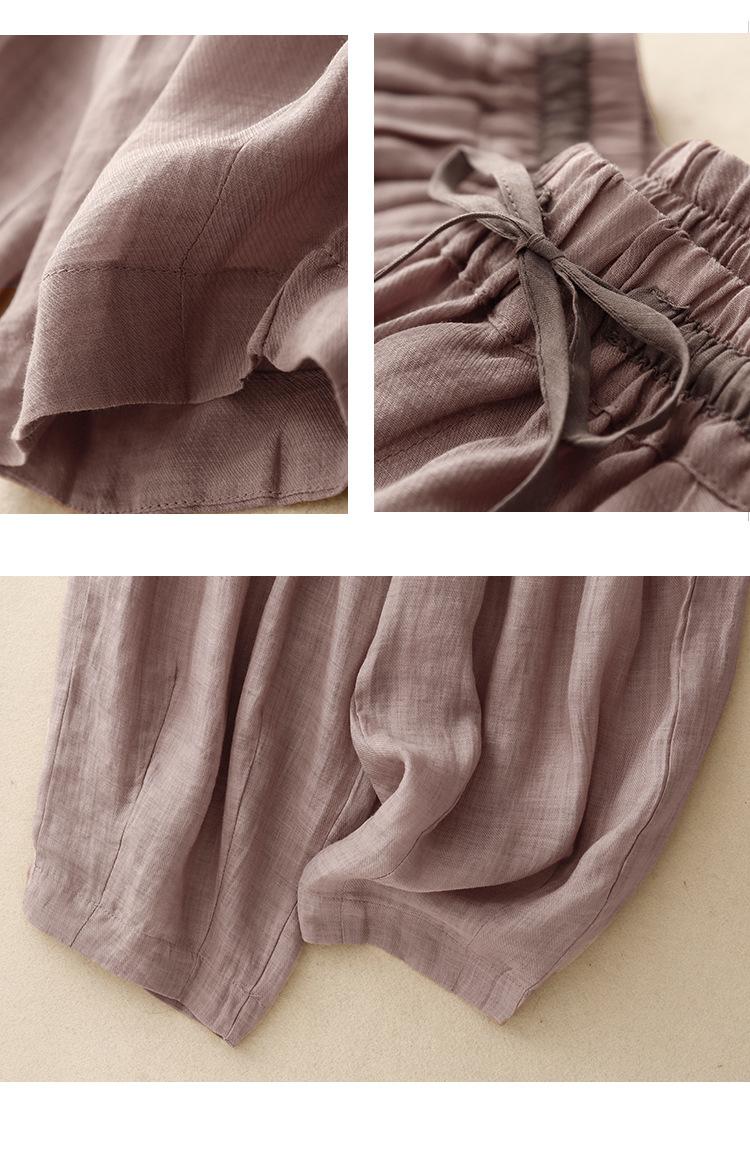 Pantalones Harem de Lino con Bloque de Color Literario de Verano 2025 para Mujer Sueltos Versátiles Delgados Algodón Lino Pantalones Nueve Puntos Pantalones Linterna Doble Capa