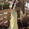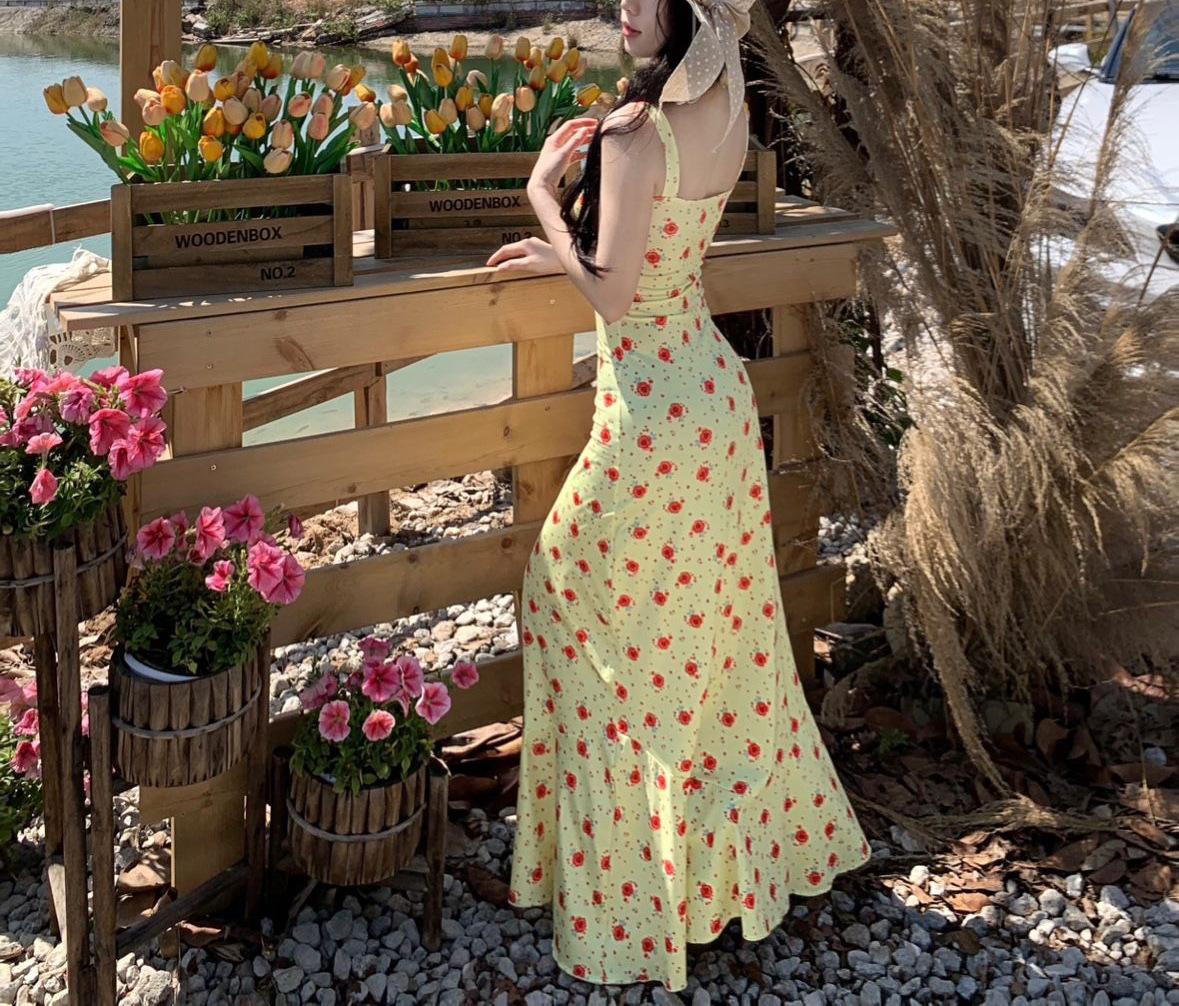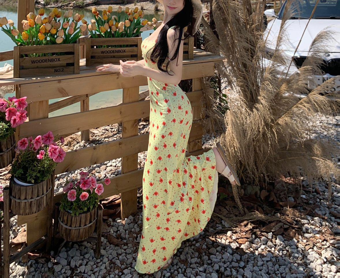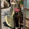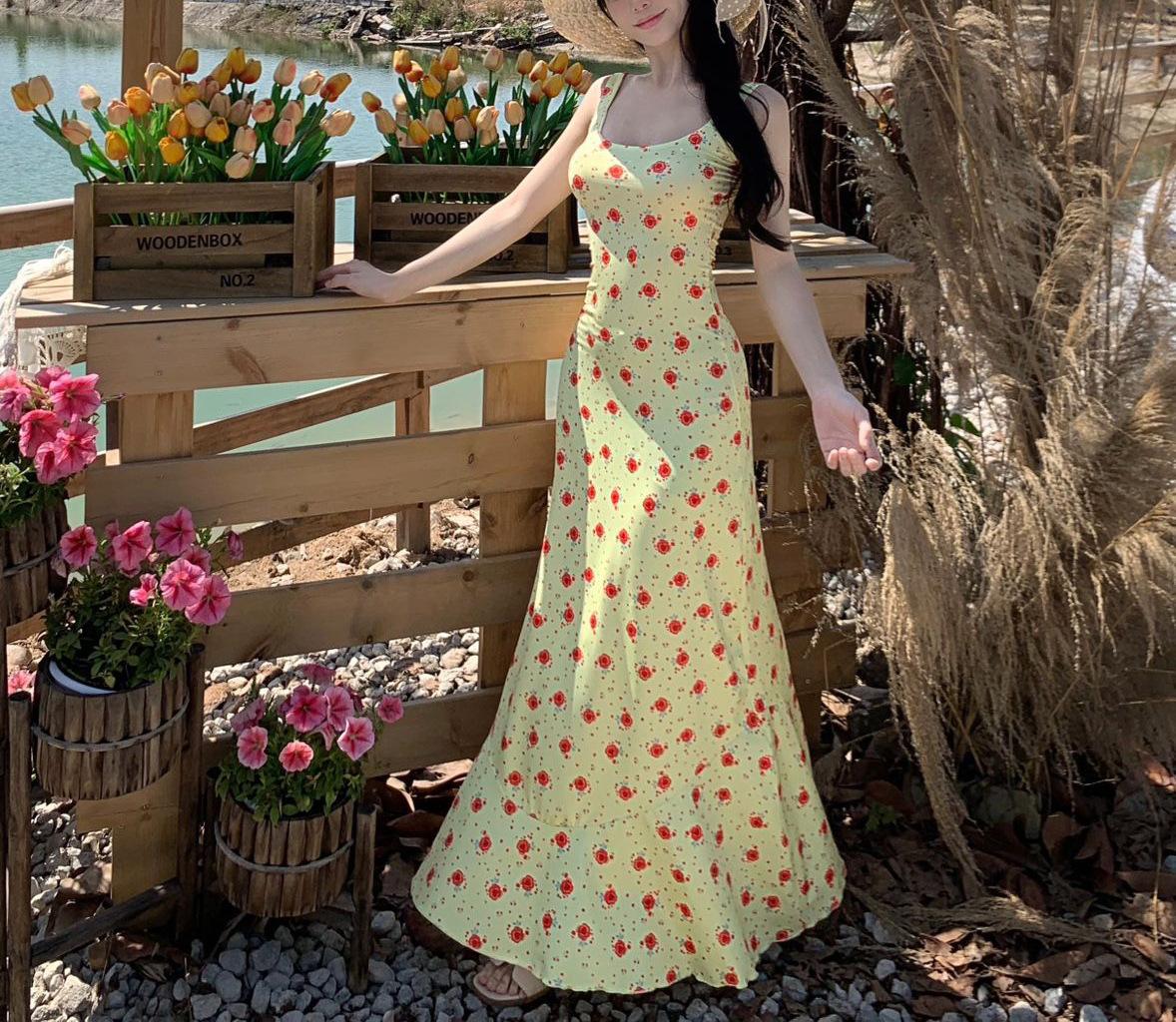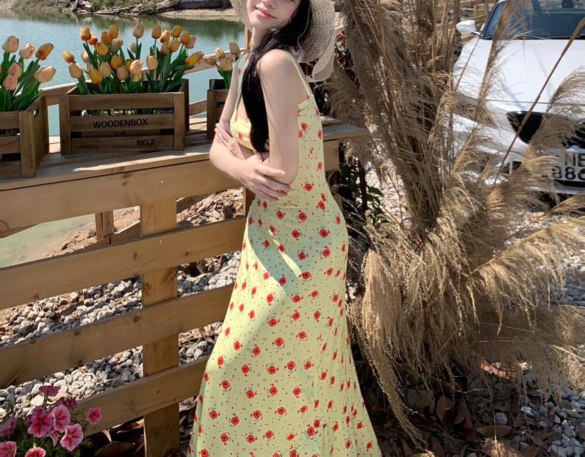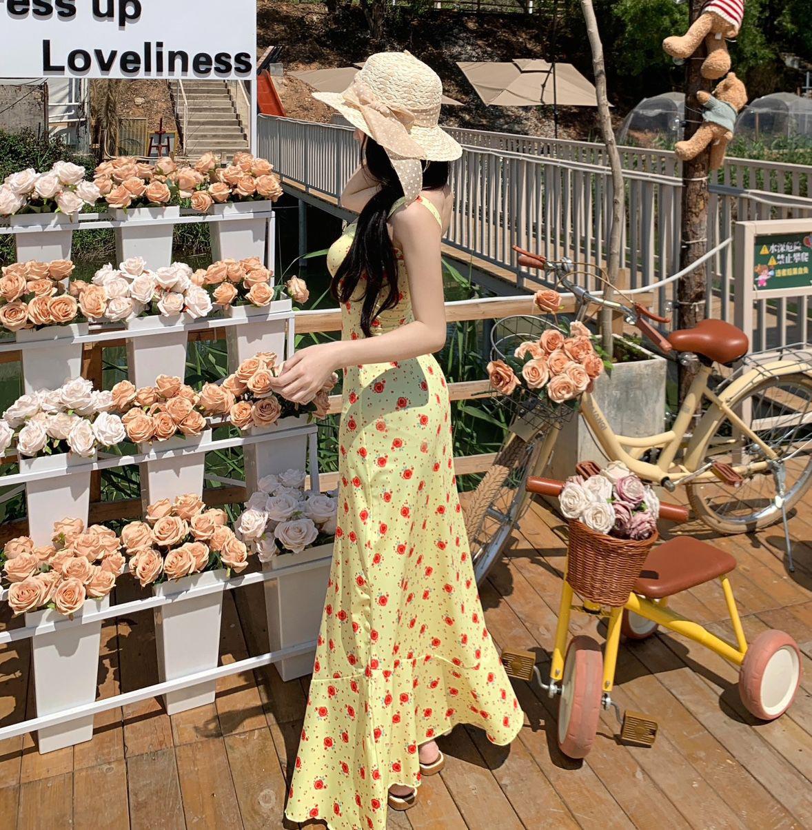 Reducción de cintura, Adelgazamiento, Vacaciones de chica caliente de pura lujuria, Falda larga con tirantes, Vestido floral de temperamento nuevo de alta gama
