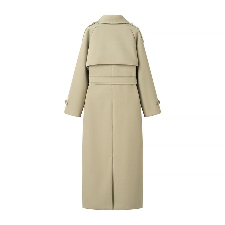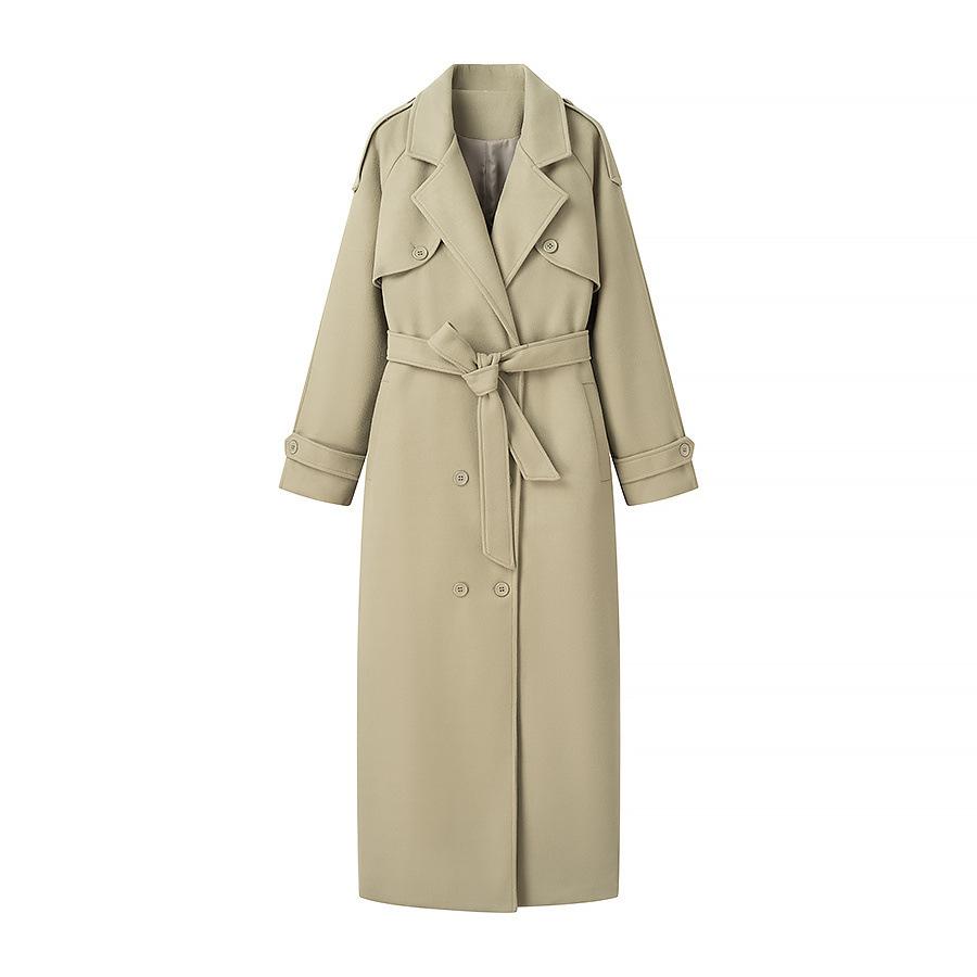 Venta al por mayor de comercio exterior transfronterizo estilo europeo y americano nuevo temperamento para mujer solapa grande botonadura sencilla cintura abrigo de lana abrigo trench