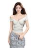 Compra Camiseta Blanca de Estilo Americano con Hombros Descubiertos y Manga Corta para Mujer, Diseño de Verano, Corte Ajustado, Top Trendy con Tirantes Volantes y Hombros Descubiertos al por mayor en Joom.pro