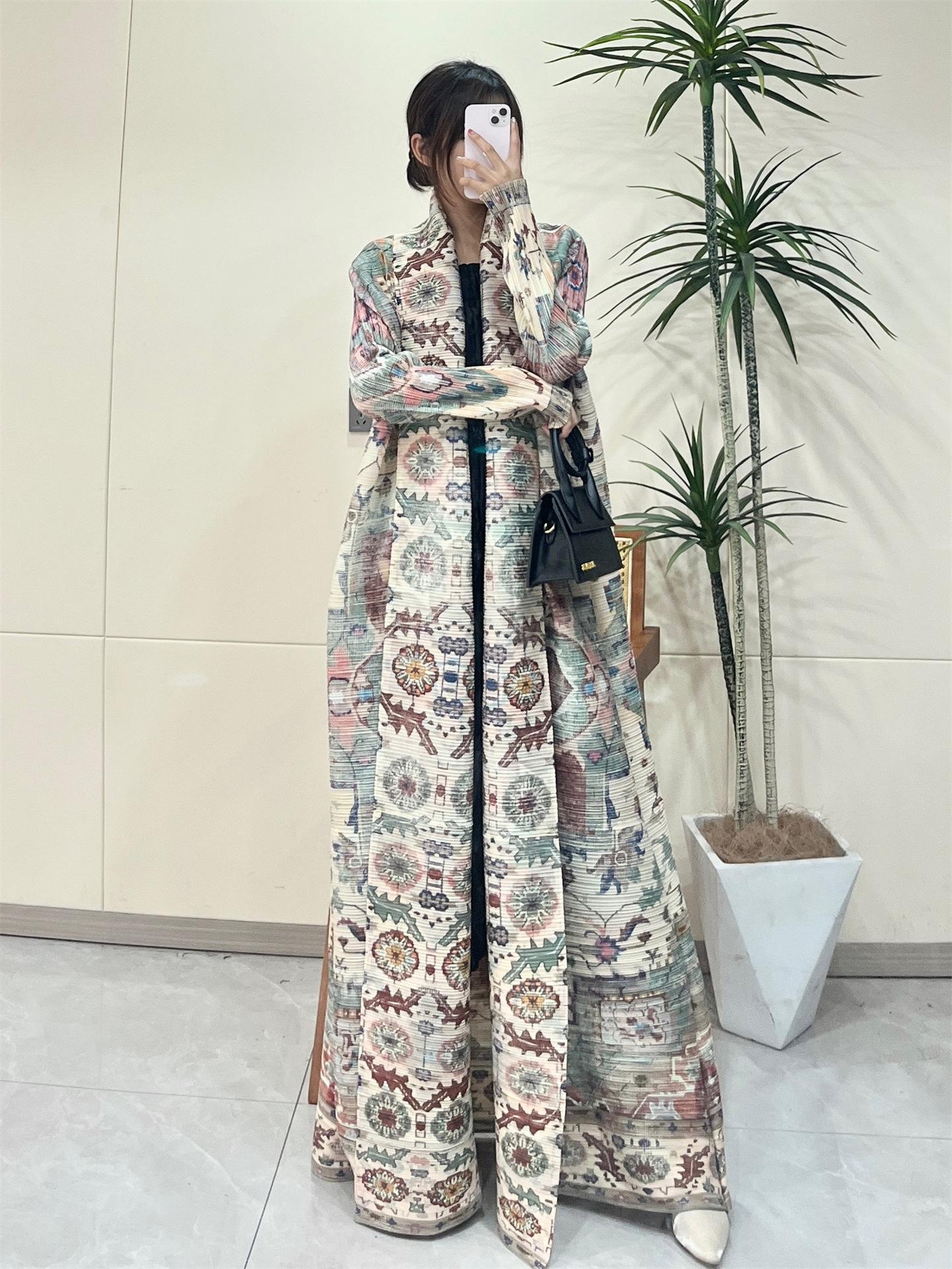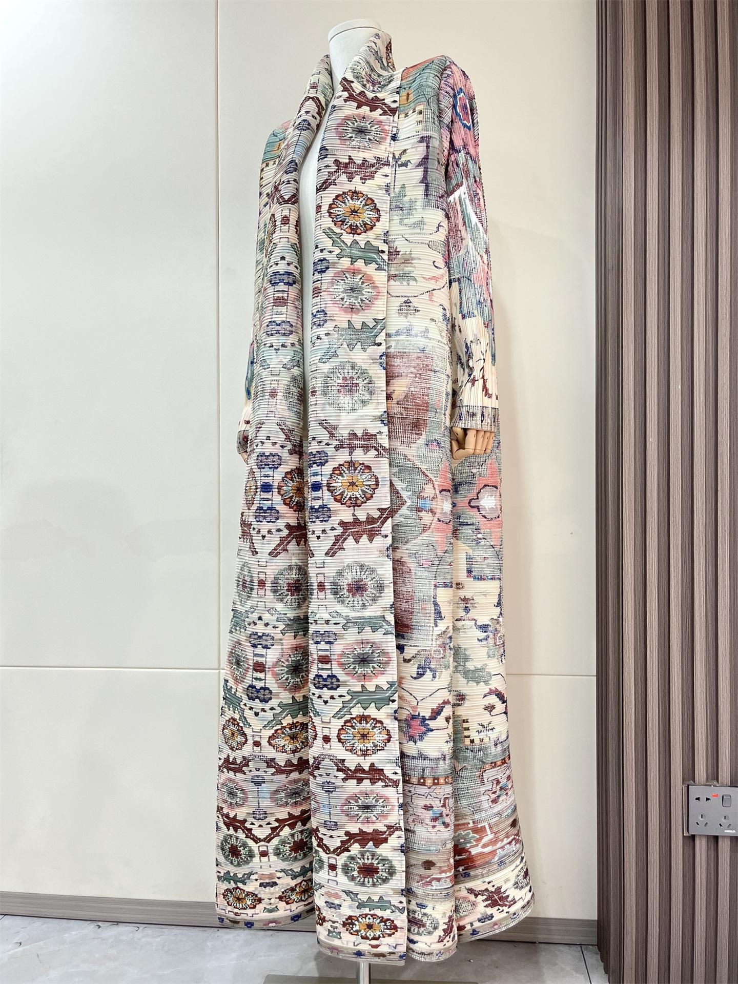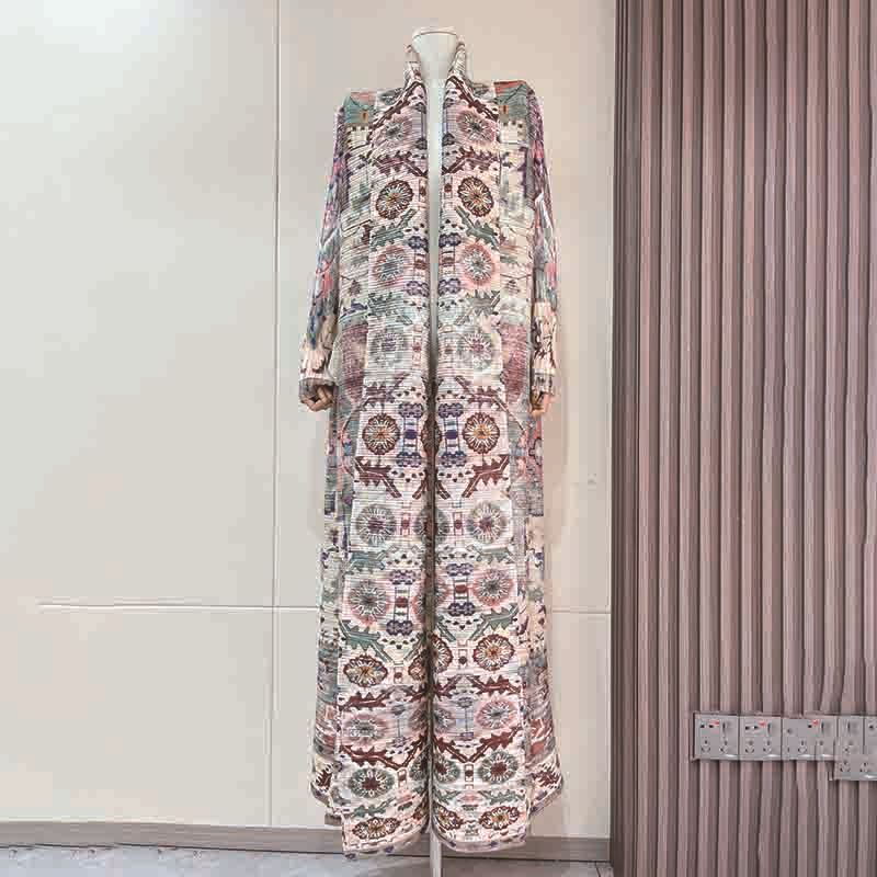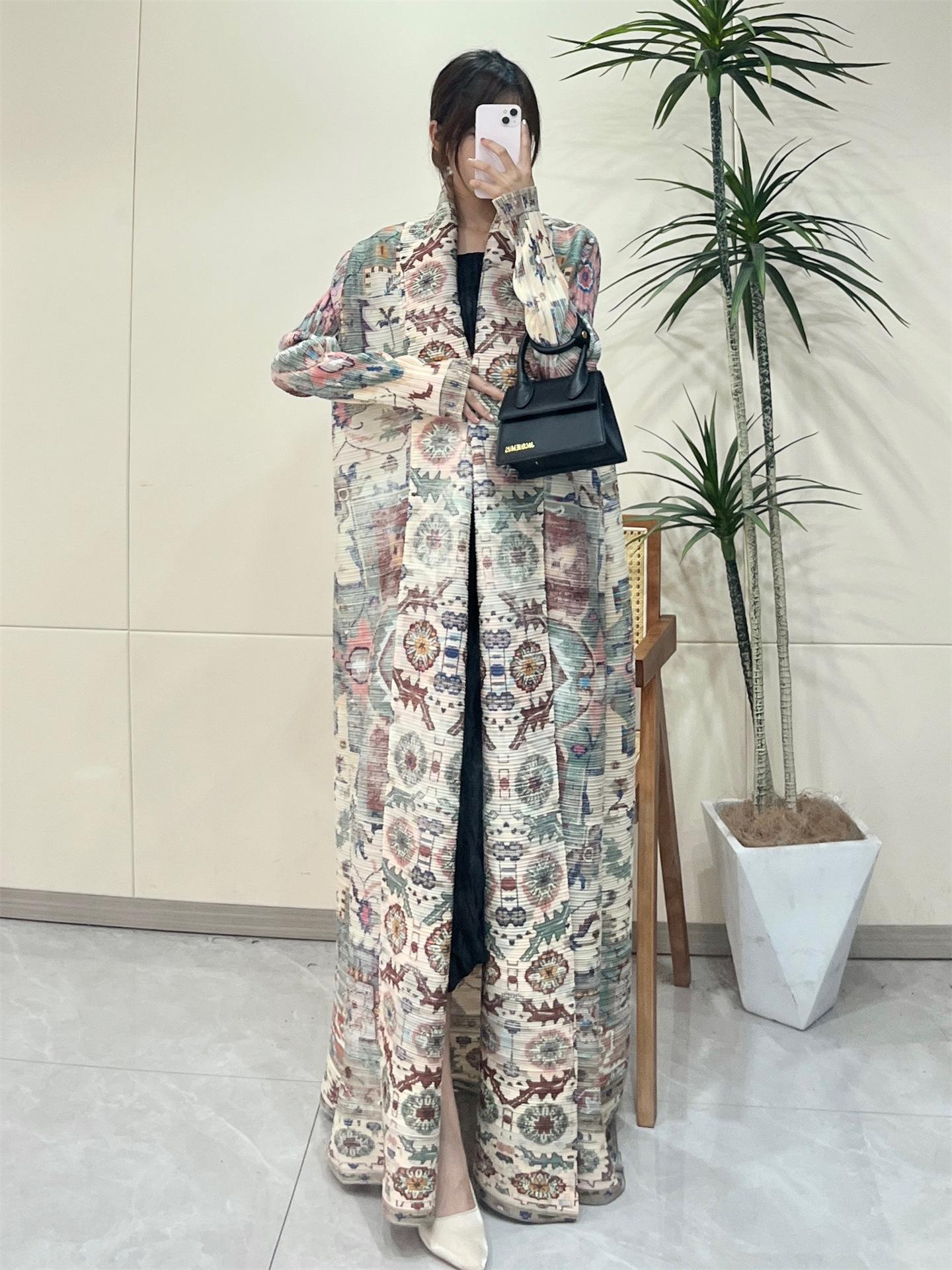 Ropa Musulmana Plisada Miyake Bata Estampada Medio Oriente Suelta Larga Moda Explosiva Bata Gabardina Estampada