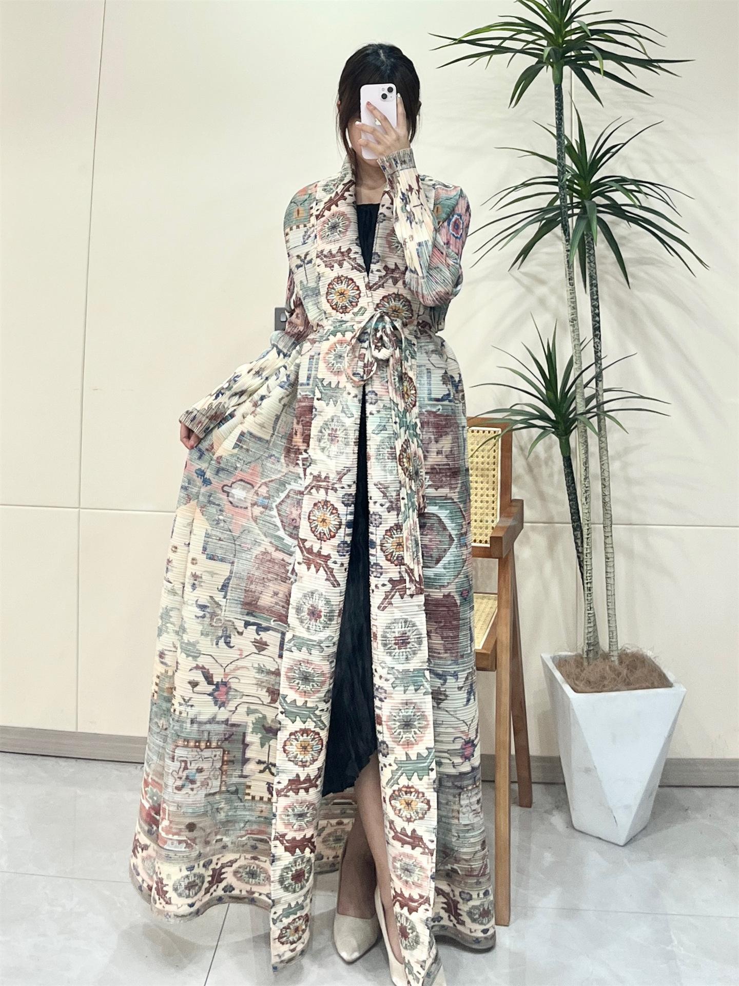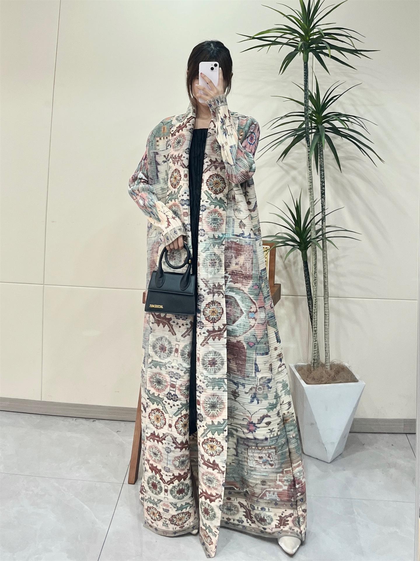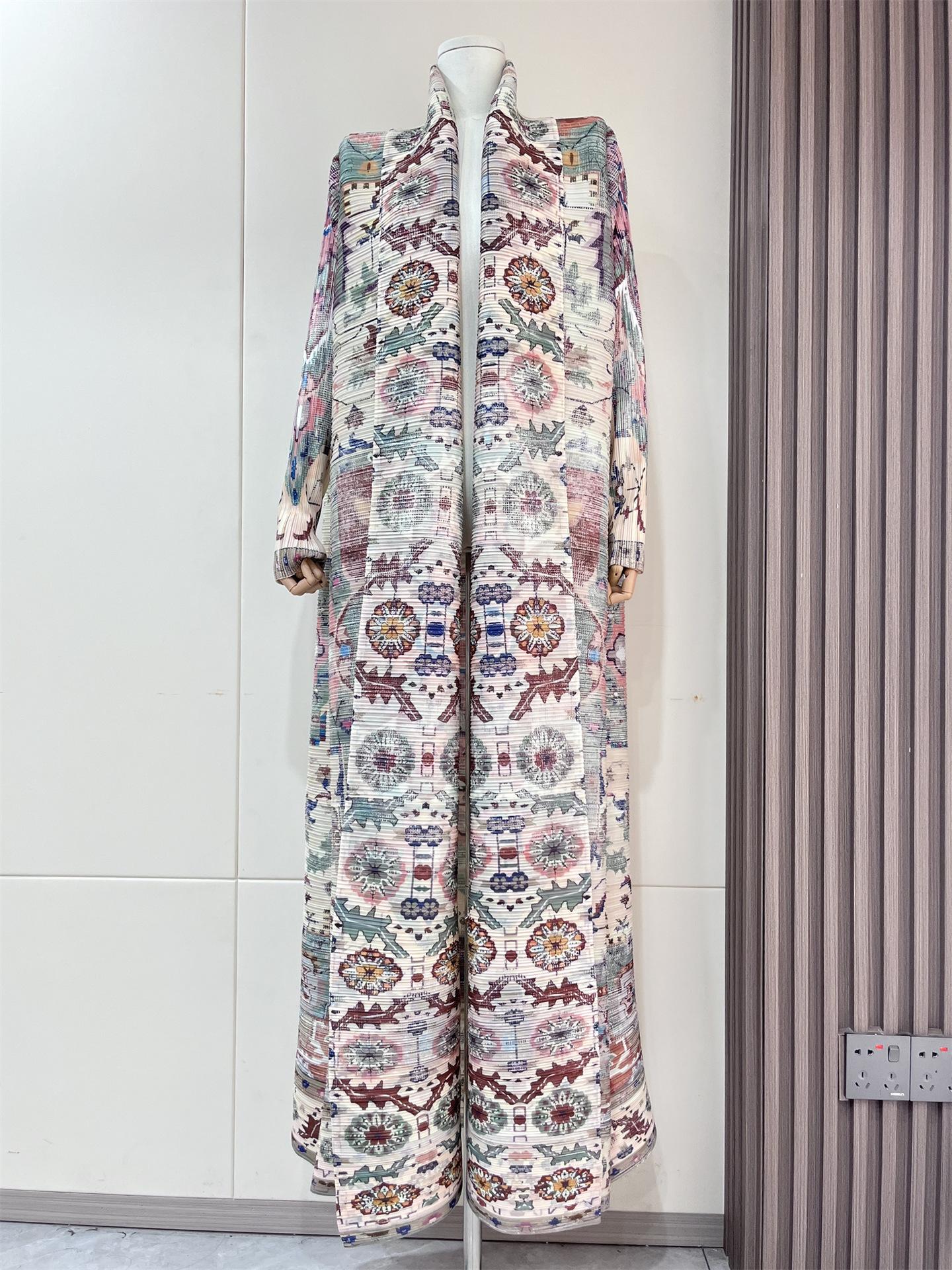 Ropa Musulmana Plisada Miyake Bata Estampada Medio Oriente Suelta Larga Moda Explosiva Bata Gabardina Estampada