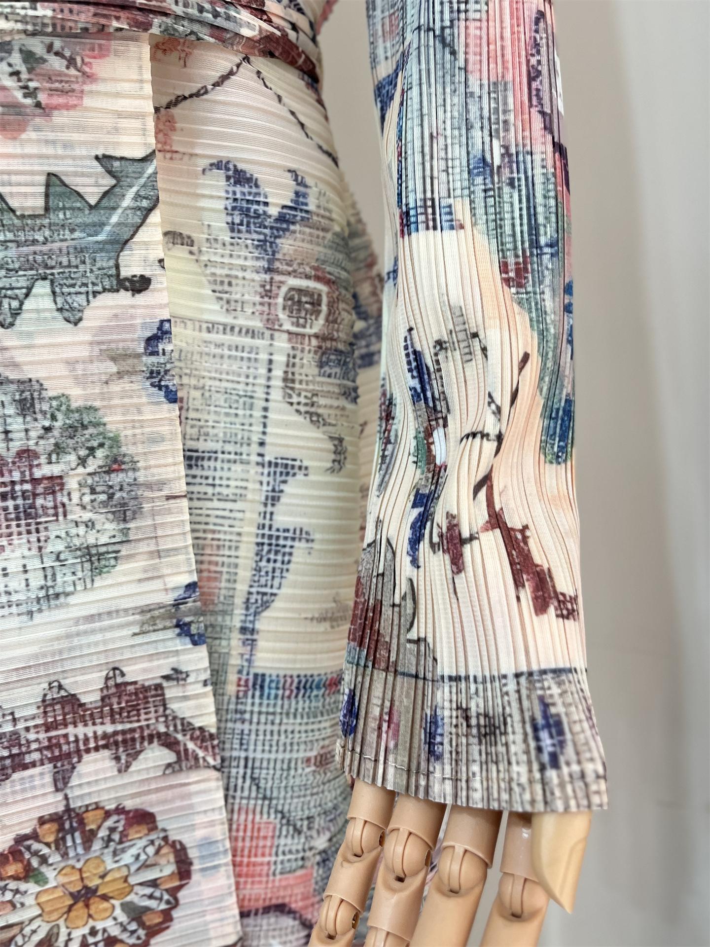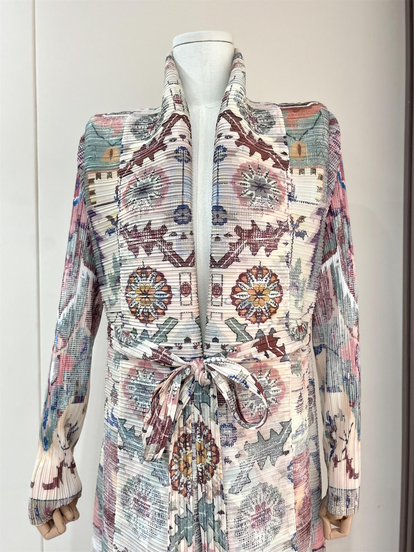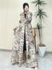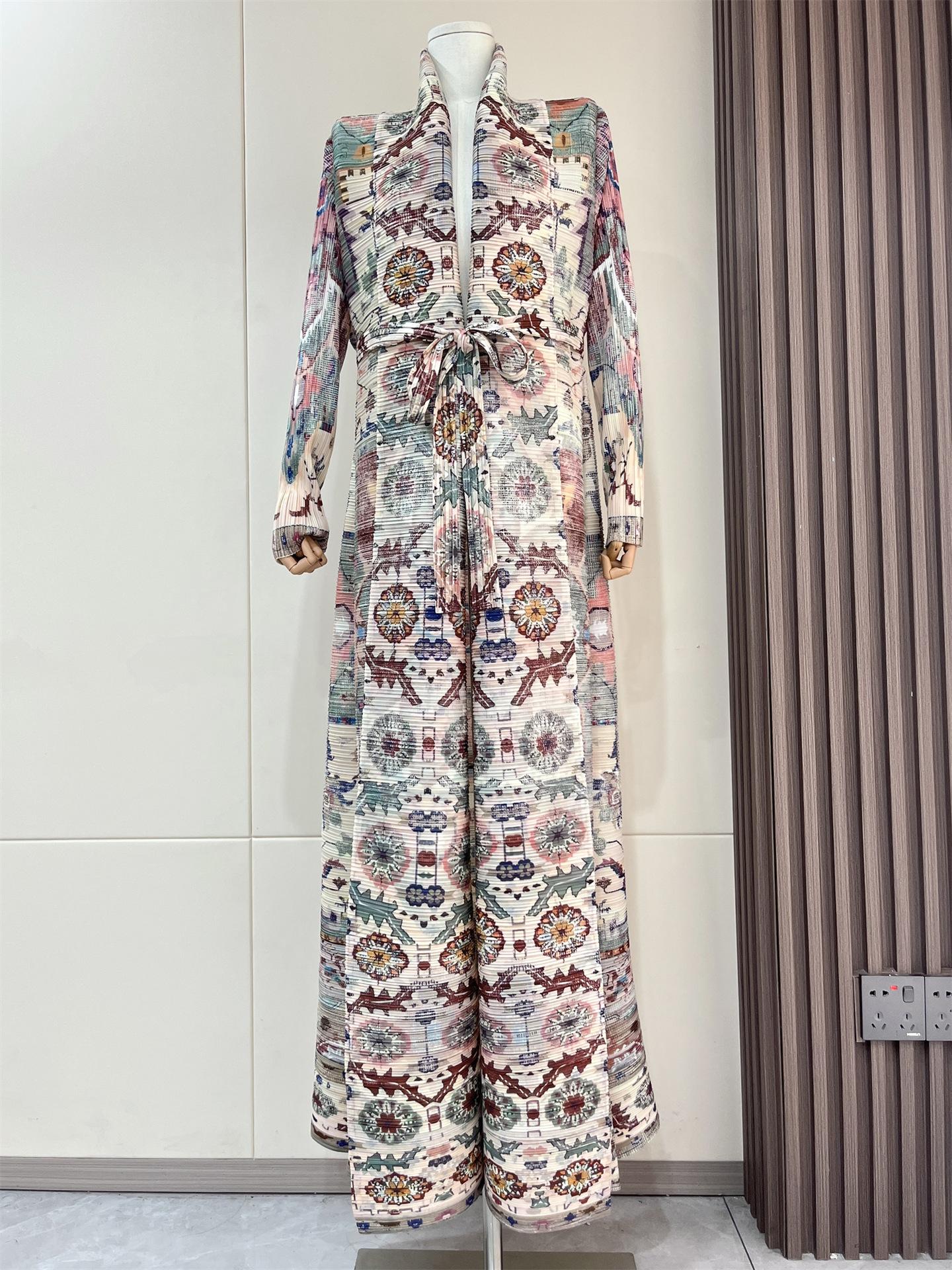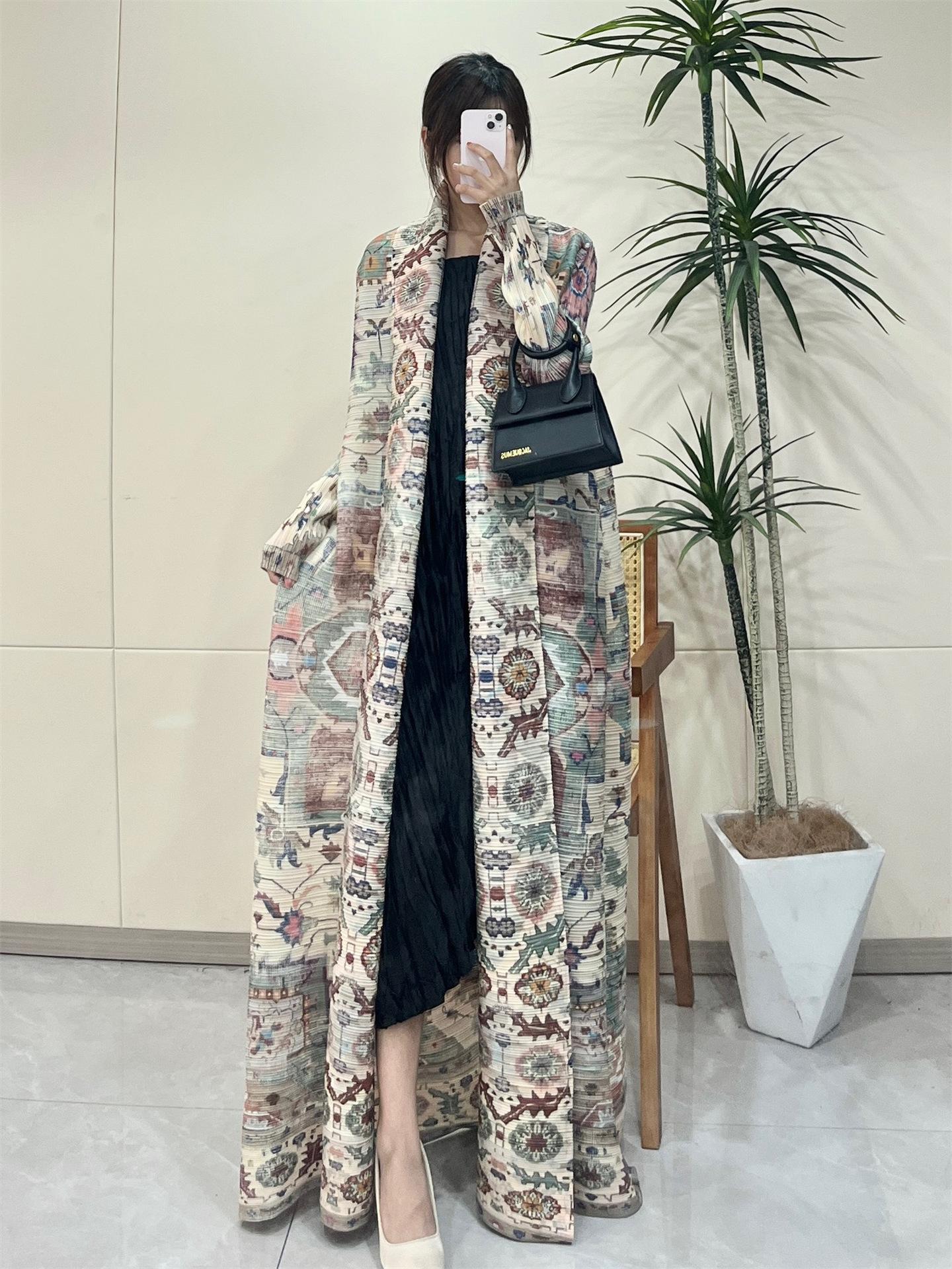 Ropa Musulmana Plisada Miyake Bata Estampada Medio Oriente Suelta Larga Moda Explosiva Bata Gabardina Estampada