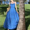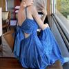Compra Vestido Francés Floral Azul sin Espalda de Tirantes Verano Nuevo Estilo Falda Larga Diseño Adelgazante de Cintura Falda al por mayor en Joom.pro