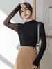 Camiseta Básica Modal Mujer 2025 Nueva Moda Otoño/Invierno Cuello Medio Alto Ajustado Ropa de Otoño Color Sólido Top de Cuello Medio