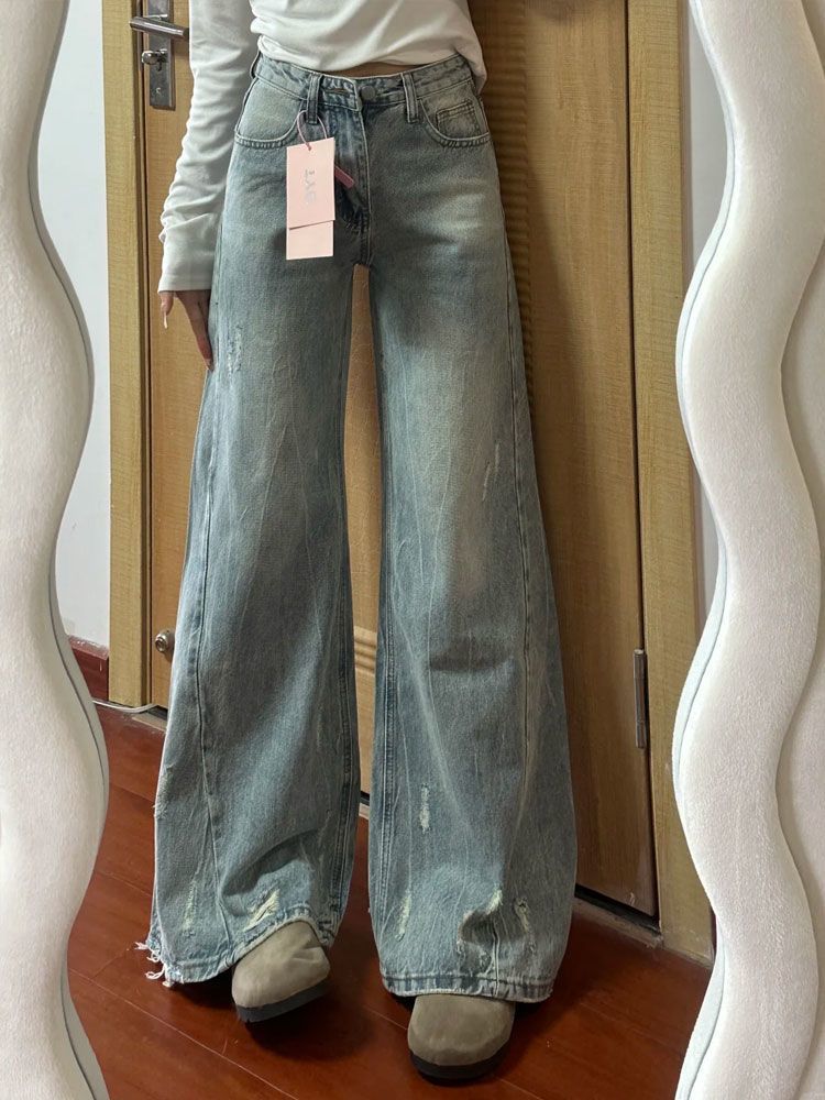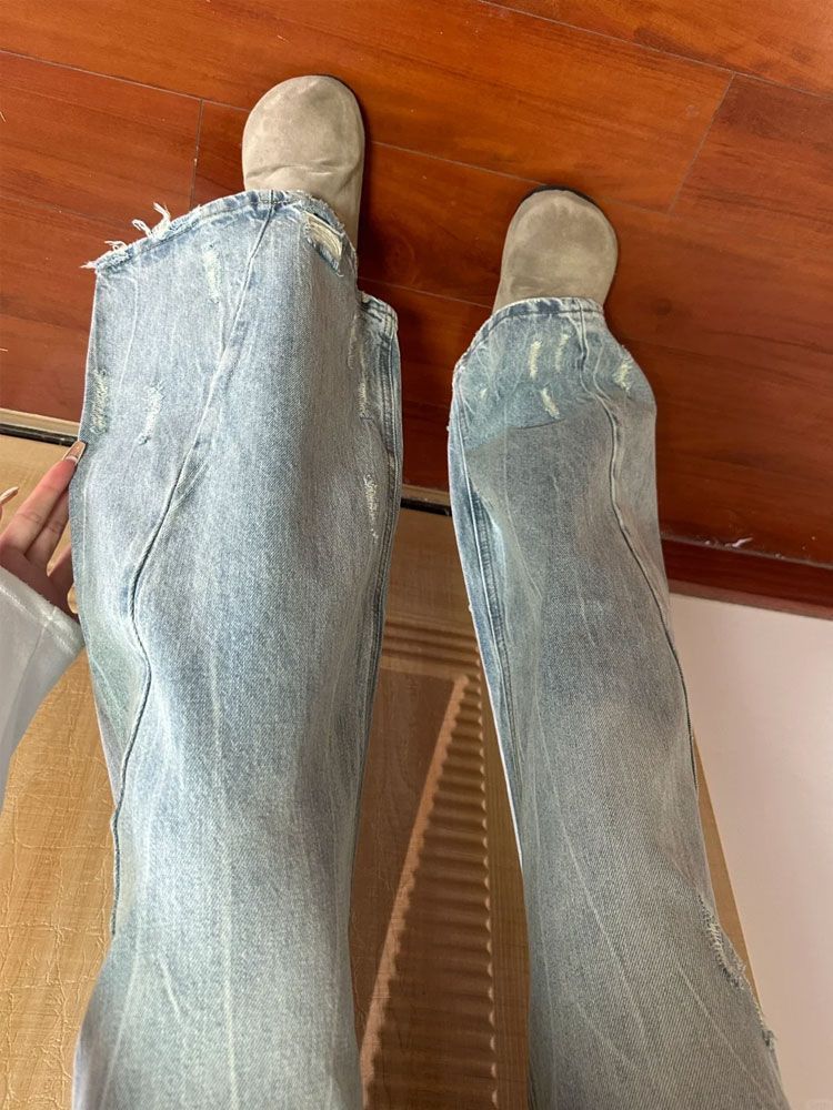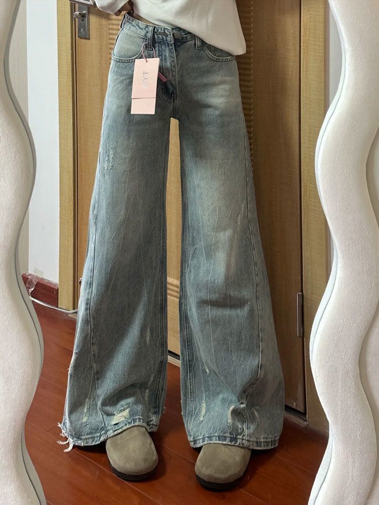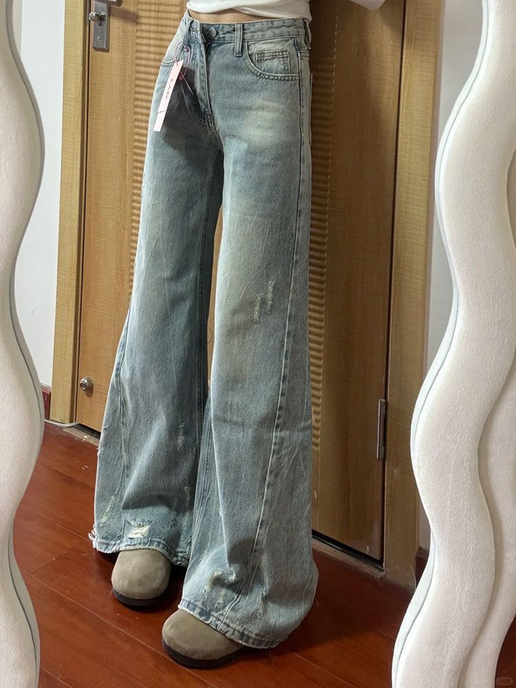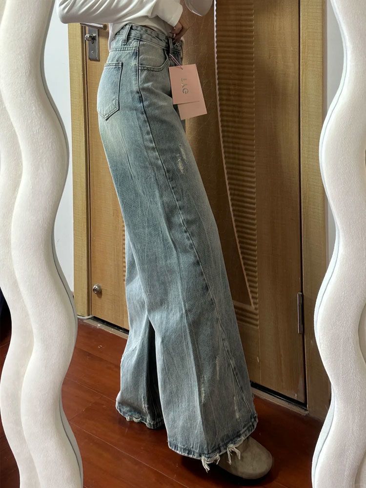 Compra Pantalones Acampanados de Mezclilla Rota Desgastada Moda Urbana Chica Caliente Mujer 2025 Dobladillo Suelto Cintura Alta Pierna Ancha Nuevo Estilo al por mayor en Joom.pro