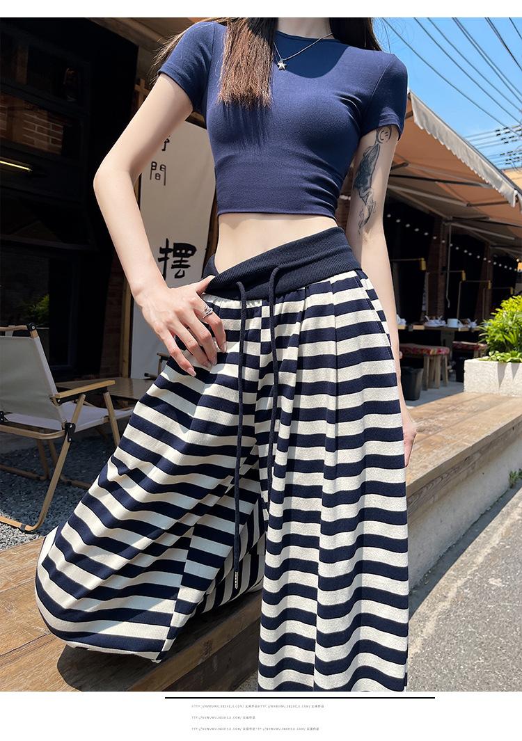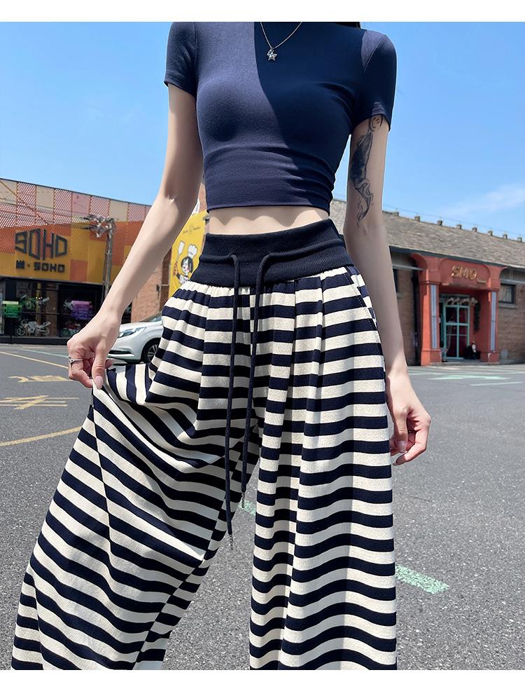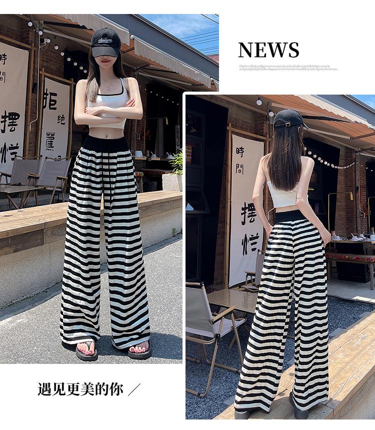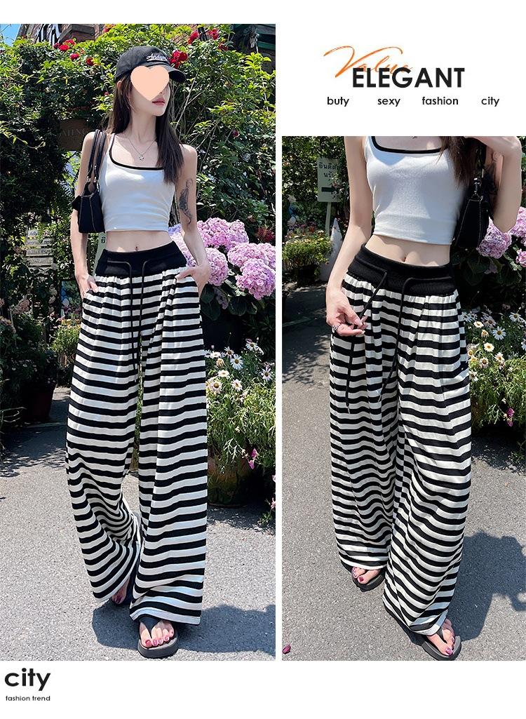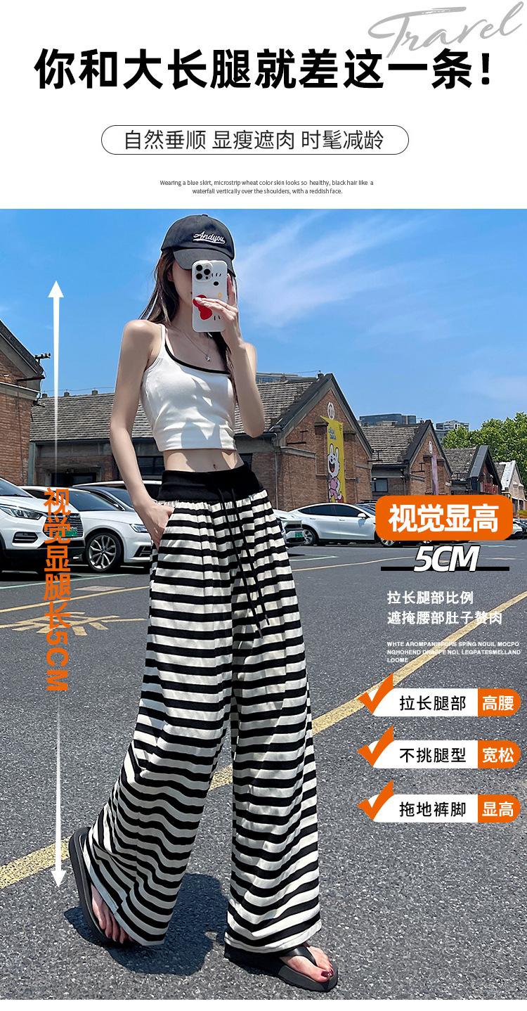 Pantalones Casuales a Rayas con Cordón de Cintura Alta para Mujer Verano Populares Pantalones de Pierna Ancha para Chica Alta 175 Pantalones Extra Largos hasta el Piso