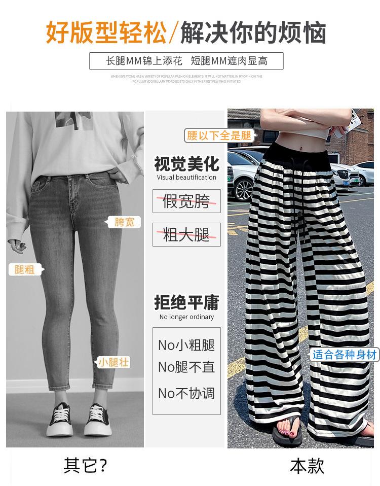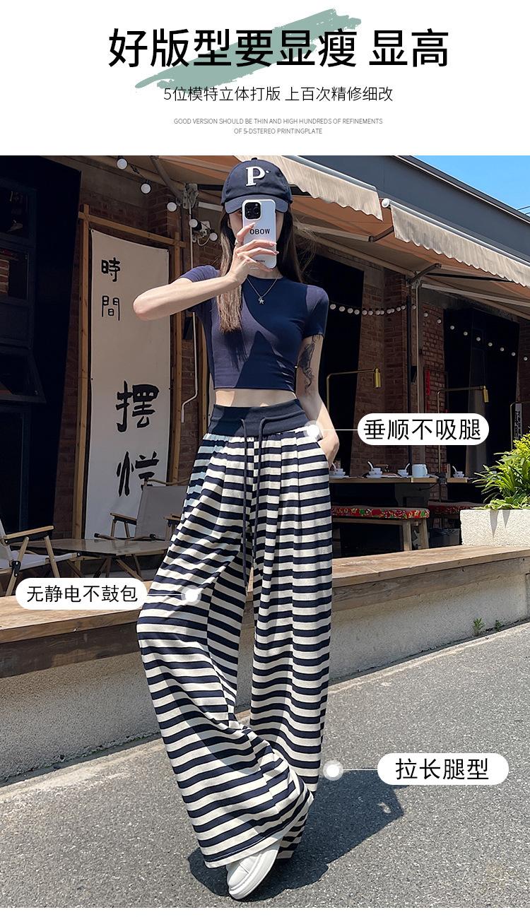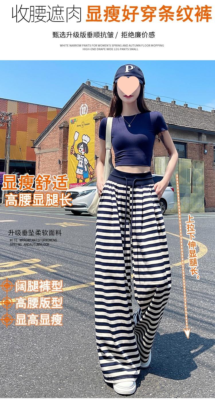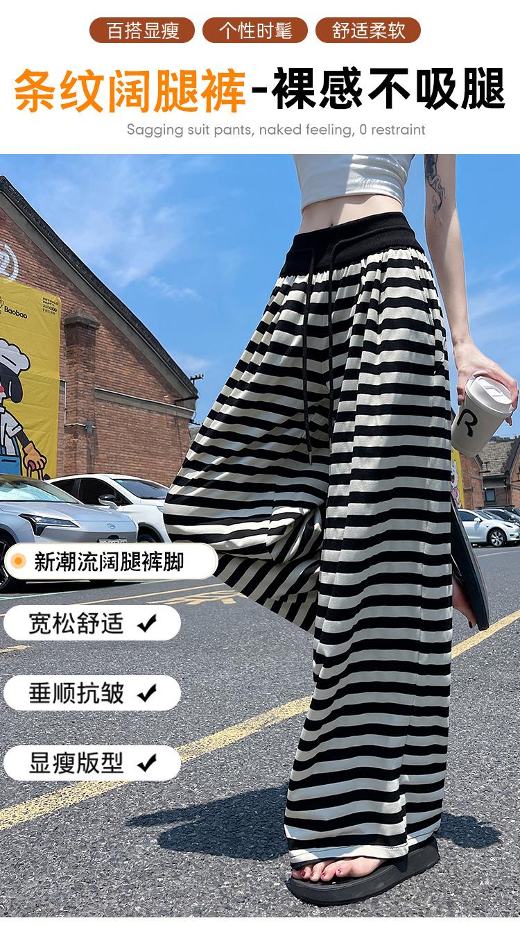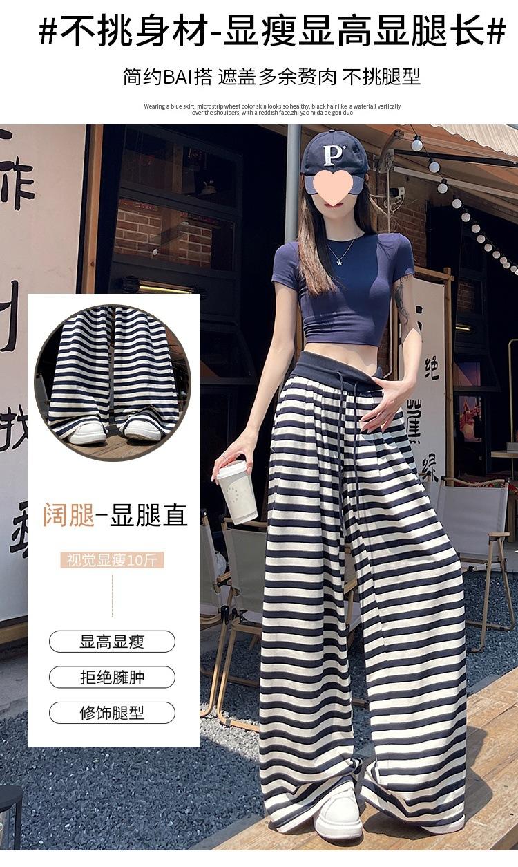 Pantalones Casuales a Rayas con Cordón de Cintura Alta para Mujer Verano Populares Pantalones de Pierna Ancha para Chica Alta 175 Pantalones Extra Largos hasta el Piso