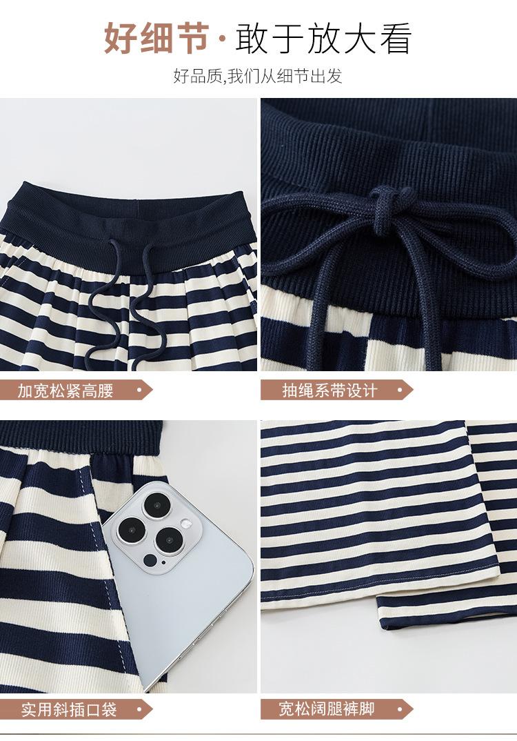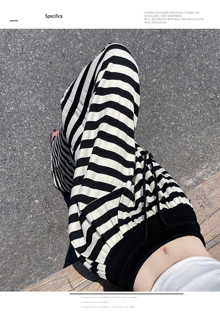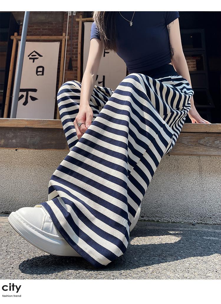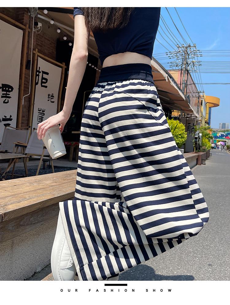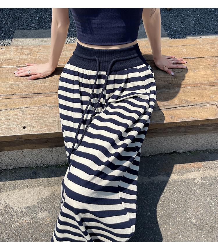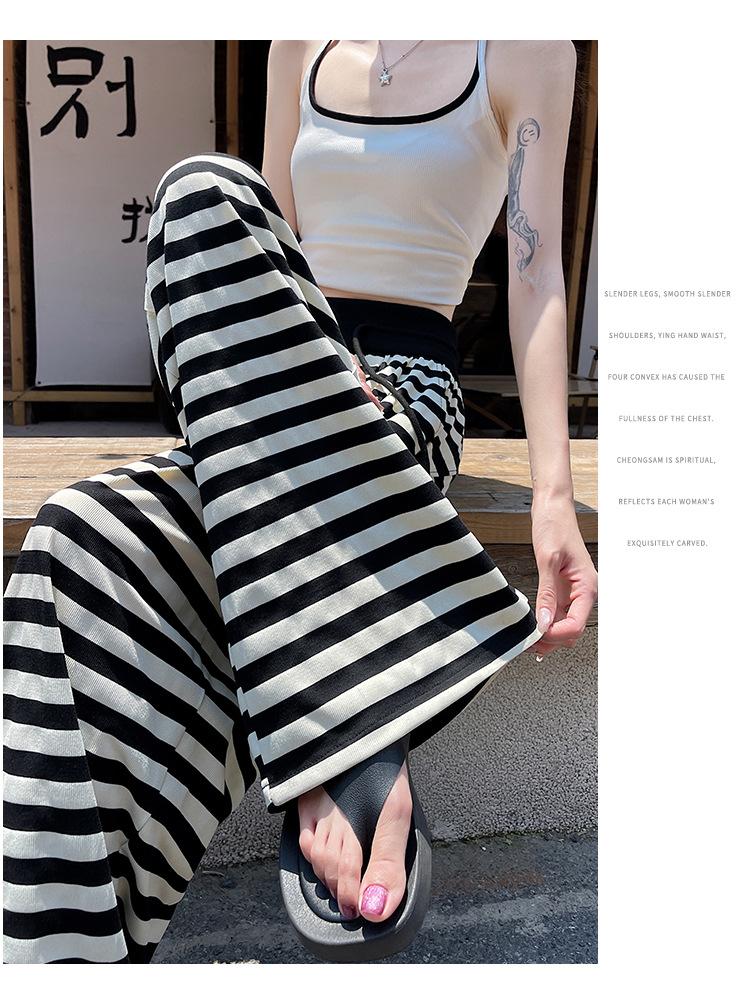 Pantalones Casuales a Rayas con Cordón de Cintura Alta para Mujer Verano Populares Pantalones de Pierna Ancha para Chica Alta 175 Pantalones Extra Largos hasta el Piso