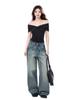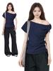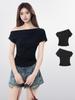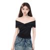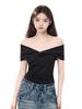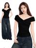 Playera Negra de Un Hombro Descubierto de Manga Corta para Mujer Diseño Verano 2025 Sexy Slim Top Corto